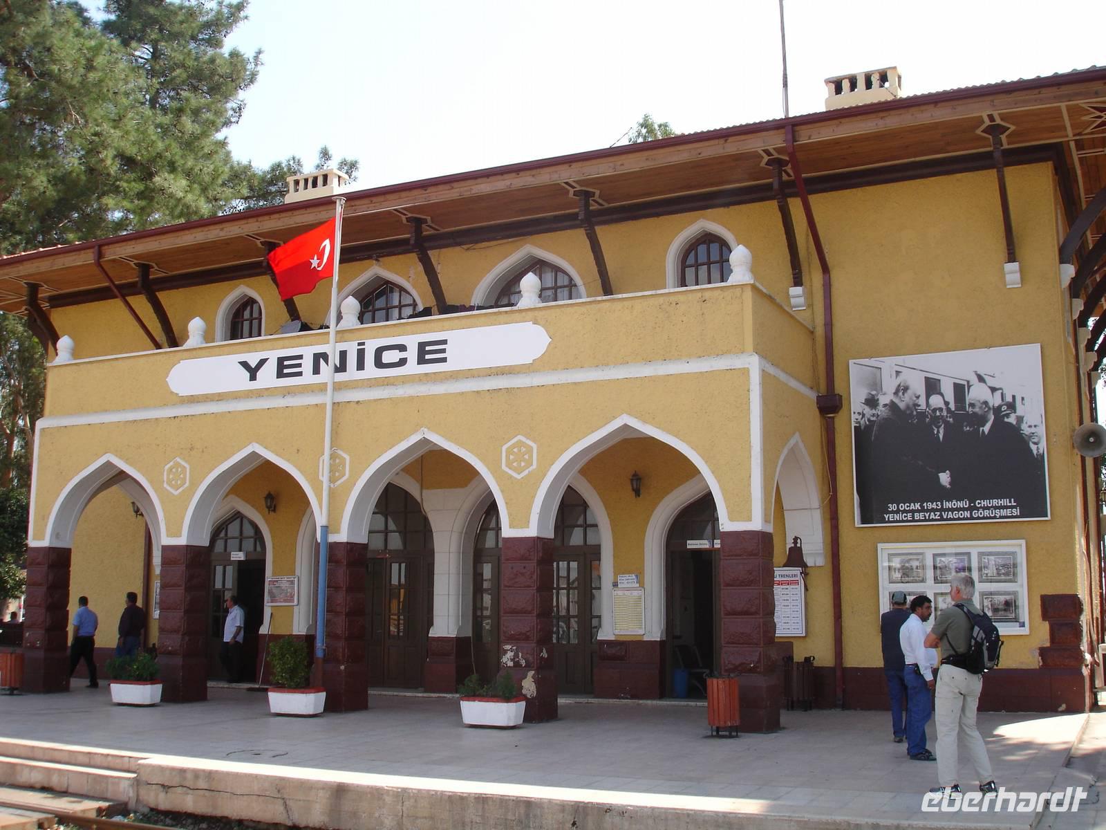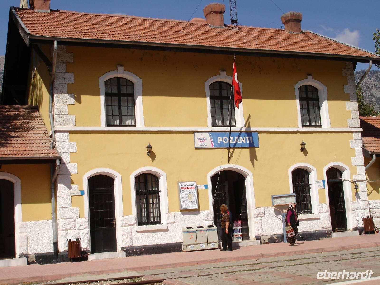 Im Mittelpunkt des heutigen Tages stand die Fahrt auf einer Teilstrecke der legendären Bagdad-Bahn. Wir starteten mit Absicht etwas früher, um den Zug in Pozanti nicht zu verpassen. So kamen wir rechtzeitig an und auch die Eisenbahn war für ihre Verhältnisse pünktlich.Auf dem Bahnsteig von Pozanti gab es für uns noch eine kleine Episode am Rande.