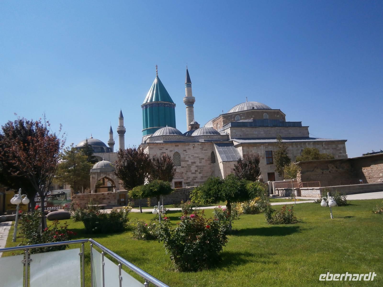 Entlang der Küste nach Manavgat verlassen wir nach ca. einer Stunde die Küstenstraße bei Kizilagac und fahren Richtung Landesinnere. Das Taurusgebirge überwinden wir über den Bademli-Pass (1390 m). Unser erstes Ziel des Tages ist Konya. Die Stadt ist Hauptstadt der gleichnamigen Provinz und hält für uns eine Besichtigung des Klosters der tanzenden Derwische bereit. Bei unserer Ankunft ist es Mittageszeit und die Sonne drückt. Im Kloster ist heute, nach Ansicht von Nazim, besonders großer Andrang. Über eine Stunde dauerte der erste Kontakt mit den lokalen Bräuchen und Sitten.