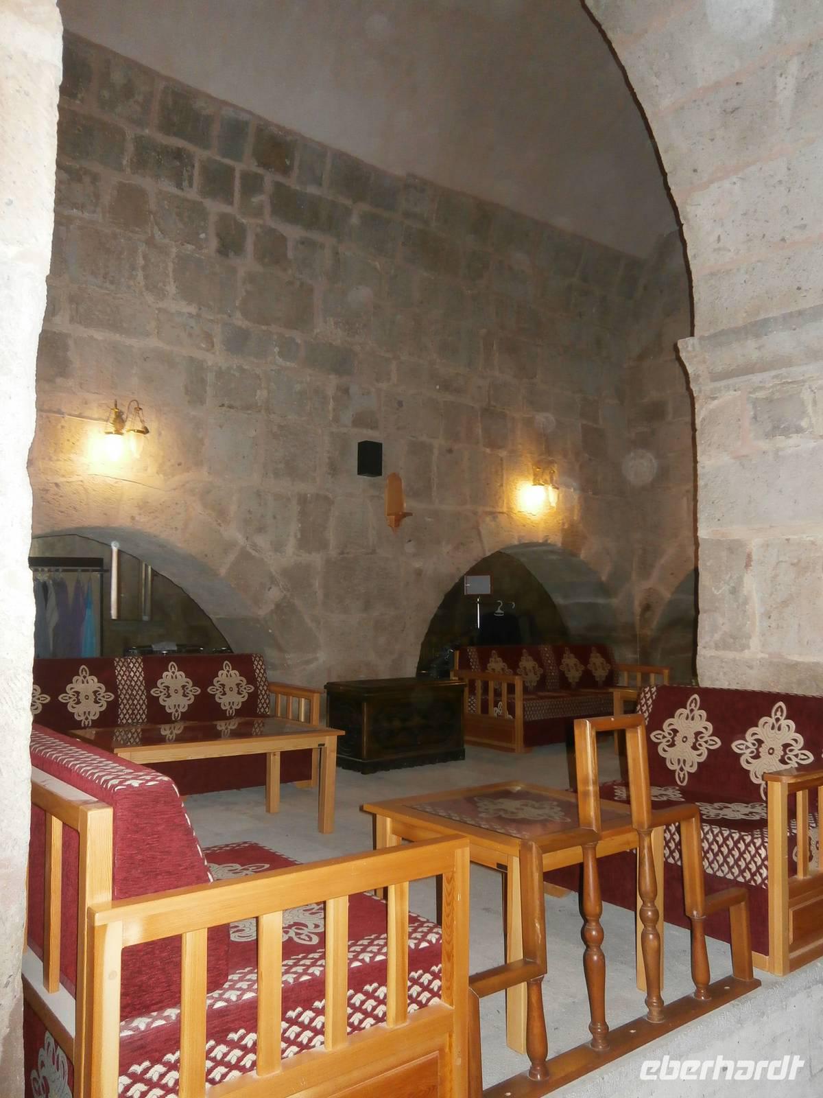 Bei unserer Weiterfahrt nach Ortahisar machen wir in Sultanhani halt. Die Ortschaft liegt auf halbem Weg zwischen Konya und Aksaray. Aufgrund ihrer zentralen Lage an der historischen Seitenstraße und am seldschukischen Karawanenweg verfügt sie über eine prächtige und ehemals lebenswichtige Karawanserei. Am frühen Abend erreichen wir unser Höhlenhotel "Dilek Kaya" in Ortahisar. Die kommenden vier Tage ist hier der Ausgangspunkt für unsere Rundreise.