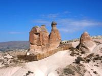 Unweit von Ürgüp liegt der erste Höhepunkt des Tages. Ein markante Felsformation, die den Namen "die drei Schönen " war der erste Programmpunkt des Tages. Sie sind der Auftakt einer Reihe besonderer geologischer Formationen und Feenkamine, die für Kappadokien so typisch sind.