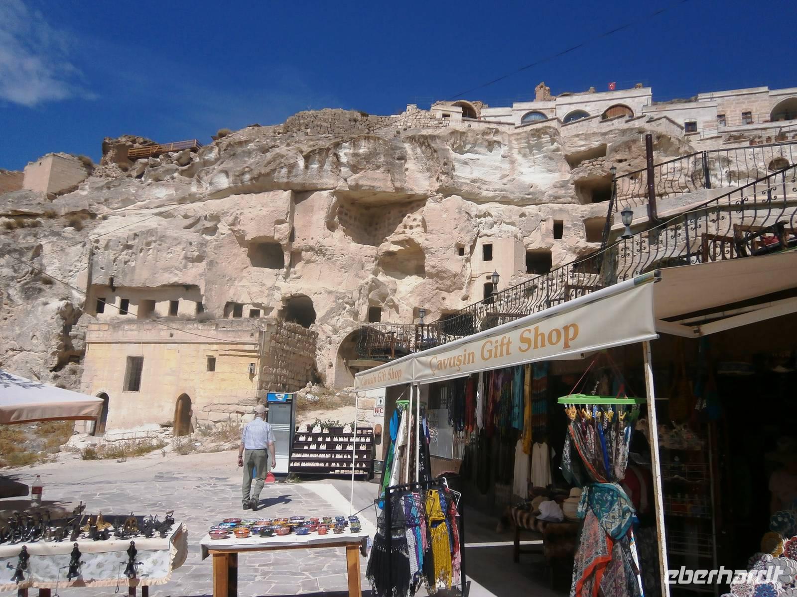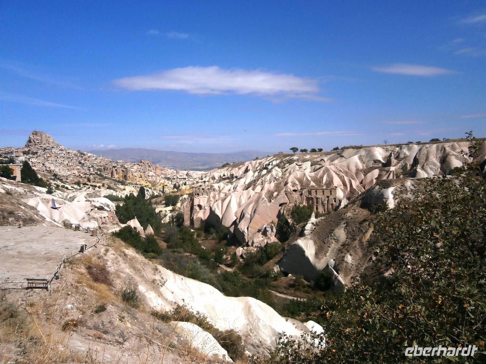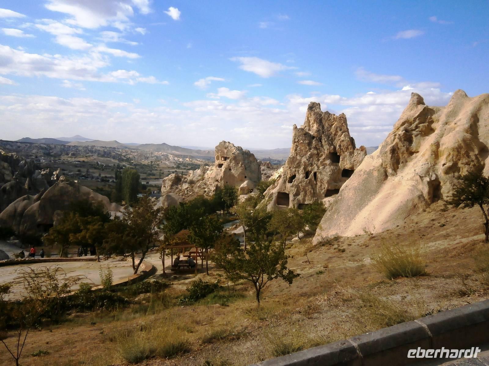 Anschließend führte uns der Weg nach Uchisar. Markant schmiegt sich die Stadt aus einem Meer von Häusern an eine Anhöhe. Der 60 Meter hohe Burgfelsen ist weithin sichtbar und Wahrzeichen der 1000 Seelen zählenden Gemeinde. Anschließend ging es weiter ins Zelve-Tal. Das Areal der gleichnamigen Stadt besteht genau genommen aus drei Tälern. Hier finden sich verlassene Höhlenwohnungen, Kirchen und Gemeinschaftsplätze.