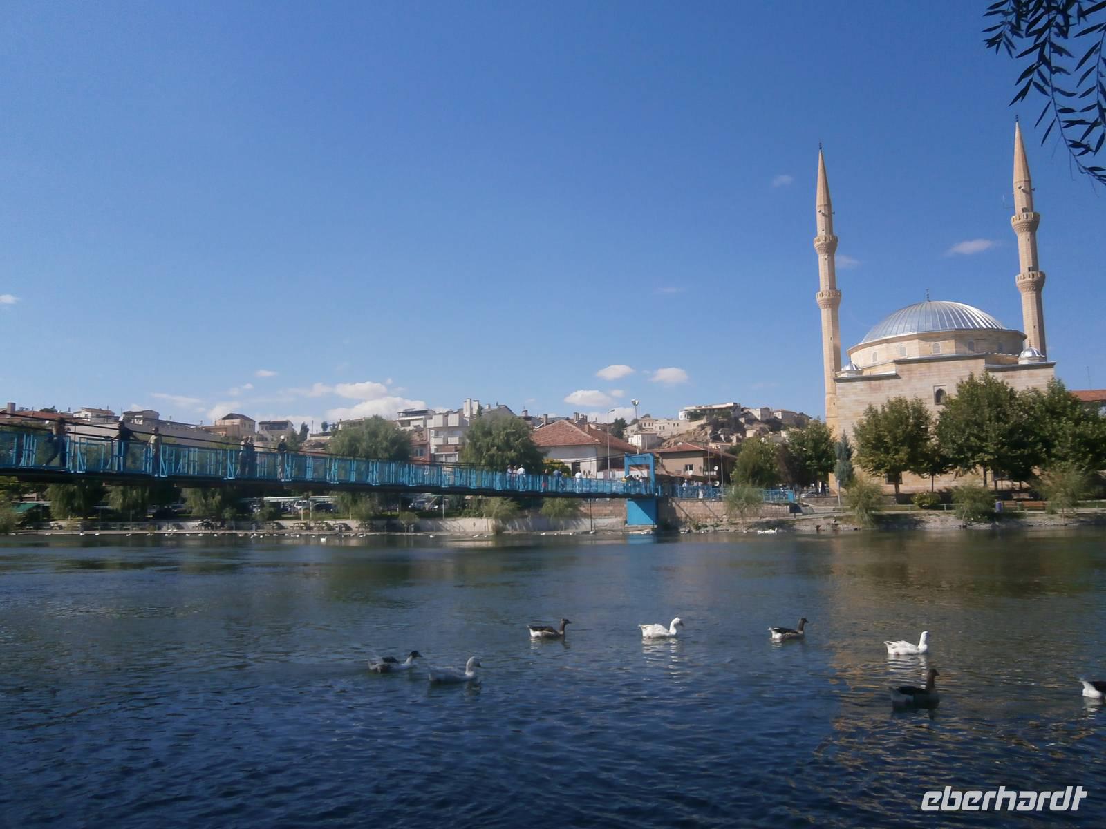 Auf dem Rückweg nach Ürgüp machten wir im Nachbarort Ortehisar einen Stopp an der Moschee. Für jeden Touristen muslimischer Länder stellen sich zahlreiche Fragen zu Religion und Brauchtum. In der Moschee steht Nazim Frage und Antwort. Es war ein gelungener Abschluss eines langen und erlebnisreichen Tages.