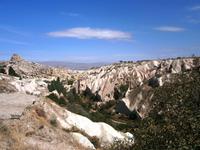 Danach ging es für uns hinab. Hinab in das Ihlara-Tal. Über 358 Stufen erreichten wir vom Parkplatz aus das idyllische Tal. Durch den Melendiz-Flug herrscht hier ein angenehm kühles Klima. Viel Grün und noch mehr Höhlenkirchen säumten unseren Weg. Am Ende der einstündigen Wanderung stand eine kleine Mittagspause am Fluss auf dem Programm. Weiter geht es nach Güzelyurt. Wörtlich übersetzt bedeutet der Ortsname "Schöne Heimat". Uns offenbarte sich ein wunderbarer Blick auf den Hasan Dagi! Über Cemil Köyü erreichten wir am Nachmittag das Soganli-Tal. Hier hieß es für uns ersteinmal Spazieren gehen. Im Tal befinden sich zahlreiche Felsenkirchen und Höhlenwohnungen, die in das weiche Tuffgestein geschlagen wurden. Wir gehen bis zur Karabas Kilisesi (wörtlich: Kirche mit den schwarzen Köpfen). Danach machen wir uns auf den Rückweg zur Kaffeepause. Die Kleinstadt Mustafapasa in der Nähe von Ürgüp versprüht Ruhe und bildet den Abschluss eines anstrengenden Tages.