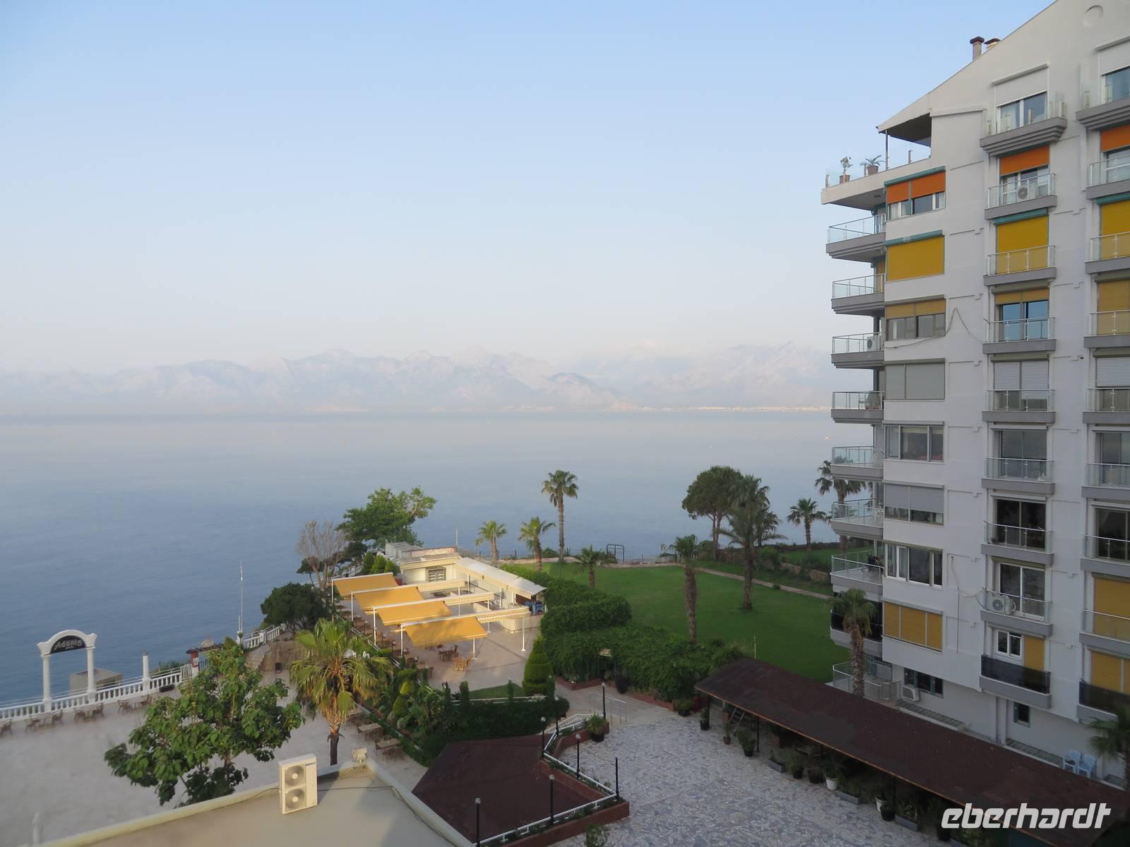 Treffpunkt - Flughafen Leipzig. Zu moderater Zeit am Vormittag trifft sich ein Teil unserer Gruppe am DB-Infopoint. Der Flughafen Leipzig ist überschaubar und die Abfertigung von Türkisch Airlines verläuft unkompliziert. Doch dann - unsere Maschine, die aus Istanbul kommt und mit uns wieder zurück fliegen soll, hat Verspätung. Das bedeutet - unsere Umsteigezeit in Istanbul verkürzt sich. Das sollte eigentlich kein Problem sein, auch unser Gepäck ist durchgecheckt, jedoch müssen wir (und unsere Mitreisenden) in Istanbul „einreisen", d.h. durch die Passkontrolle und das Terminal wechseln. Die Nervosität unter den Reisenden ist groß. An der Passkontrolle stockt es, denn, alle, die mit einem Personalausweis einreisen, müssen zusätzlich einen Zettel ausfüllen, der nicht gerade selbsterklärend ist. Nach großem Geschrei und Getöse sind trotzdem alle Passagiere irgendwann an Bord und der Flug nach Antalya kann starten. Serdar, unser Reiseleiter und Hasan, unser Busfahrer, erwarten uns. Wir fahren zum Hotel Adonis, wo wir auf fünf weitere Gäste treffen, die schon eine Woche Rundreise Westtürkei hinter sich haben und weitere vier, die vom Flughafen Düsseldorf angereist sind. Nachdem die Zimmerschlüssel verteilt sind, müssen wir uns beeilen, um noch etwas vom großartigen Buffet zu bekommen. Denn Punkt 21.00 Uhr wird alles abgeräumt. Wer noch keinen Nachtisch gebunkert hat, geht leer aus. Im Nachbarhotel tobt das türkische Leben. Offensichtlich findet hier eine große Feier statt, vielleicht eine Hochzeit? Zu sehen ist nichts, leider auch nicht das Feuerwerk. Aber zu überhören sind sie nicht. Nun, was soll´s, lassen wir uns von türkischer Lebensfreude in den Schlaf wiegen.