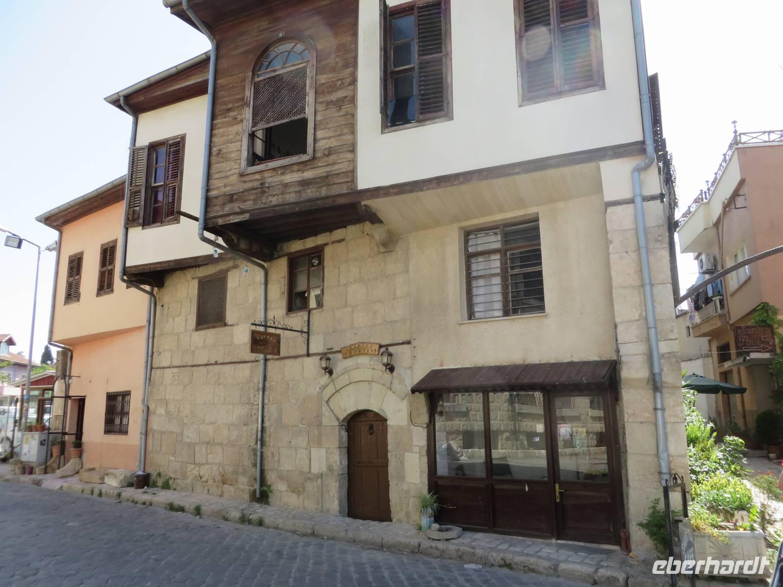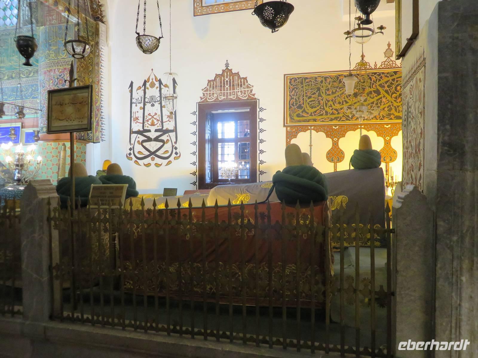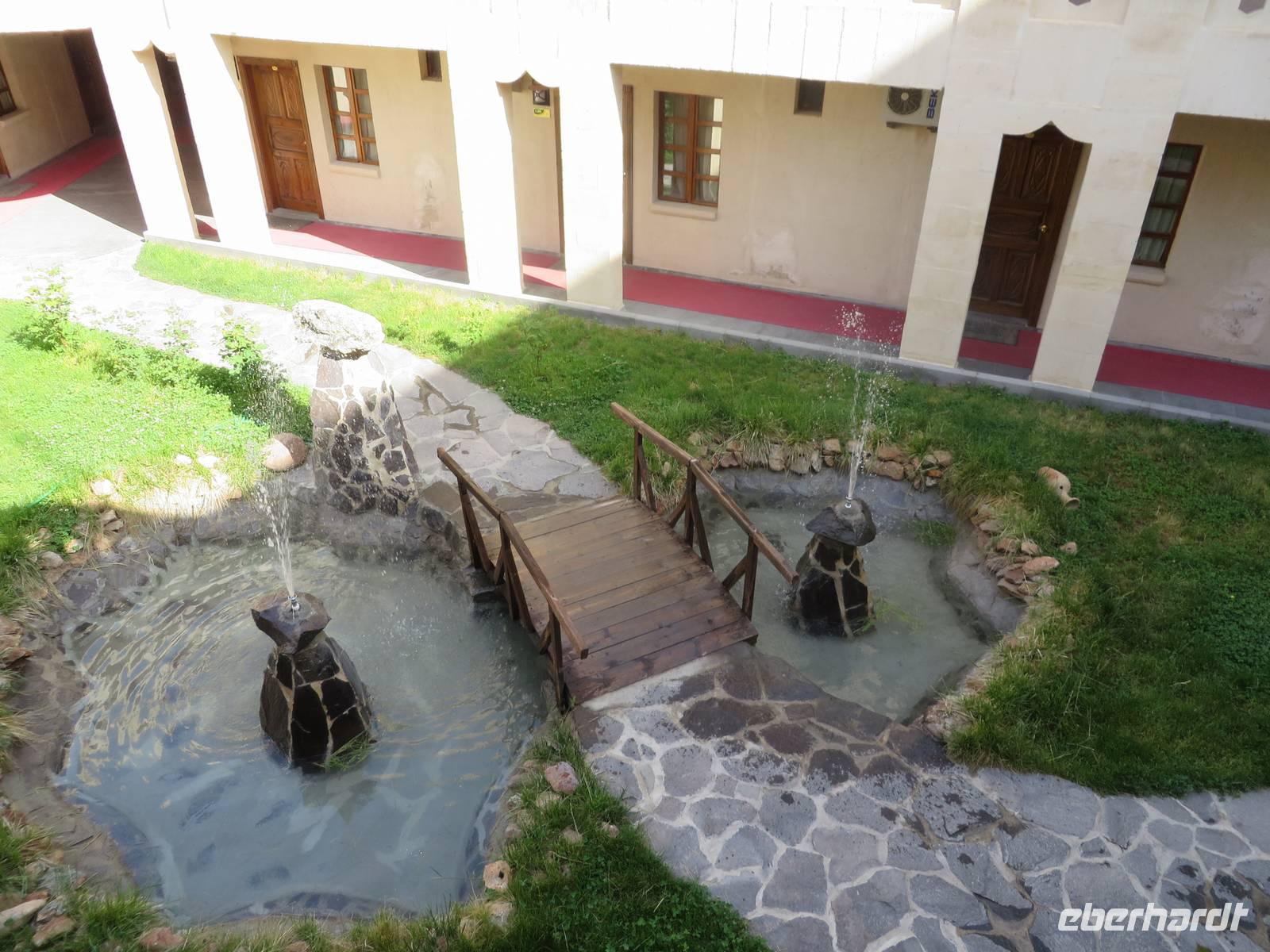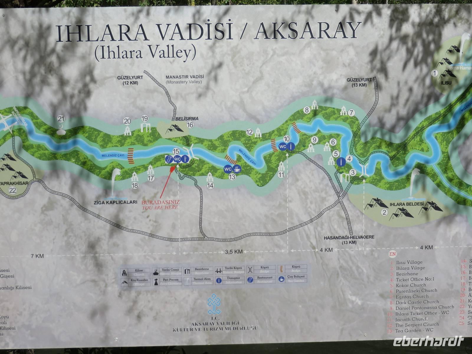 Eine lange Fahrt liegt heute vor uns. Serdar berichtet unterwegs, an welchen Orten wir vorbei fahren, die es zu besichtigen lohnt, die jedoch nicht auf unserem Programm stehen. Nach ca. 16 Kilometern streifen wir Perge. Die Besonderheit dieser Stadt liegt darin, dass sich hier in der Antike eine Hafenstadt befand und ein reger Seehandel statt fand, mitten im Land - nicht etwa an der Küste. Nach einer weiteren halben Stunde liegt Aspendos auf unserem Weg. Aspendos war einst die östlichste Stadt des Königreichs Pergamon. Zu seinen Hauptattraktionen gehört eines der am besten erhaltenen römischen Theater der Antike, bekannt auch durch „Wetten das" - die TV-Show wurde dort 2005 open Air aufgezeichnte. Leider haben wir keine Zeit, es zu besuchen. Wir legen einen Fotostopp an der Aspendosbrücke ein. So können wir wenigstens einen Hauch Geschichte atmen, denn diese einst neunbögige Brücke wurde wahrscheinlich im 4. Jahrhundert n. Chr. erbaut. In Manavgat haben wir die Möglichkeit unsere Euros in Türkische Lira zu tauschen. Den berühmten Wasserfall, von dem Serdar berichtet, bekommen wir nicht zu sehen, unser Weg ist weit, keine Zeit alle Sehenswürdigkeiten unterwegs zu besuchen. Weiter führt uns die Fahrt ins Taurus Gebirge. Gegen Mittag überqueren wir die höchste Stelle mit 1825 Metern Höhe. Im Taurus Gebirge dürfen Jäger Steinböcke und Wildschweine erlegen, die Jagd von Bären, Rehen und Hirschen dagegen ist verboten. Am Nachmittag besuchen wir das Mevlana Museum in der Nähe von Konya. Das Museum ist nach dem Sufi-Mystiker Celaleddin Rumi, der auch Mevlana genannt wurde, benannt. Dieser gründete im 13. Jahrhundert den Mevlevi-Orden, der bekannt wurde als Orden der tanzenden Derwische. Das Gelände ist gut besucht und wir haben Mühe, uns nicht zu verlieren. Über den marmorgepflasterten Hof, in dessen Mitte sich der Reinigungsbrunnen befindet, gelangen wir zunächst zum Mausoleum. Hier sind mehrere Sarkophage auf Podesten aufgestellt. Diese sind mit prachtvoll bestickten Tüchern bedeckt und gewaltige Turbane thronen auf ihnen. Weiter gibt es zwei Gebetsräume, einen für Männer und einen für Frauen. Außerdem sind Manuskripte aus verschiedenen Zeiten in Glasvitrinen ausgestellt. Das älteste ist eine Koranhandschrift auf Gazellenhaut. Im Anschluss besuchen wir die Küche. Hier mussten junge Männer, die Mönch werden wollten, eine 100tägige Probezeit absolvieren. Heute sind dort Nachbildungen des damaligen Alltags anzuschauen. Während wir die Küche besuchen, ist gerade eine Gruppe Männer anwesend, die alle ein weißes Gewand tragen und eine Art Gebetsritual vollziehen. Auf dem Innenhof ist eine weitere Männergruppe unterwegs, die alle die gleiche Kopfbedeckung tragen. Serdar spricht auf Nachfrage davon, dass es sich um sektenartige Gruppen handelt, die sich (angeblich) für etwas Besonderes halten. Um 17 Uhr erreichen wir die Karawanserei Sultanhani. Im 13. Jahrhundertbauten die Seldschuken über 100 Karawansereien, Herbergen für Kaufleute, die auf den Karawanenrouten entlang der römisch-byzantinischen Straßen unterwegs waren. Die Sultanhani wurde 1226 - 29 für Sultan Alaeddin Keykubad erbaut und gehört zu den besterhaltenen seldschukischen Karawansereien. Durch das zentrale Tor, dem einzigen Eingang in jede Karawanserei betreten wir den zentralen Hof. Dieser ist von Arkaden umgeben, wo die Kaufleute Schutz vor der Sonne fanden. An den Seiten sind Räume zu besichtigen, die einst als Unterkünfte dienten. Auch ein Hamam durfte natürlich nicht fehlen, in dem die erschöpften Reisenden Erholung fanden. Große Lagerhallen boten viel Platz für die Lagerung der mitgebrachten Waren, zu denen Seide und Gewürze gehörten und auch Sklaven, die als wichtige Handelsware galten. Serdar besichtigt mit uns im Anschluss noch eine weitere Karawanserei, die aber bei weitem nicht so gut erhalten ist wie Sultanhani. Am späten Abend erreichen wir unser Hotel Dilek Kaya in Ortahisar, das uns für die nächsten vier Tage als Quartier dient.