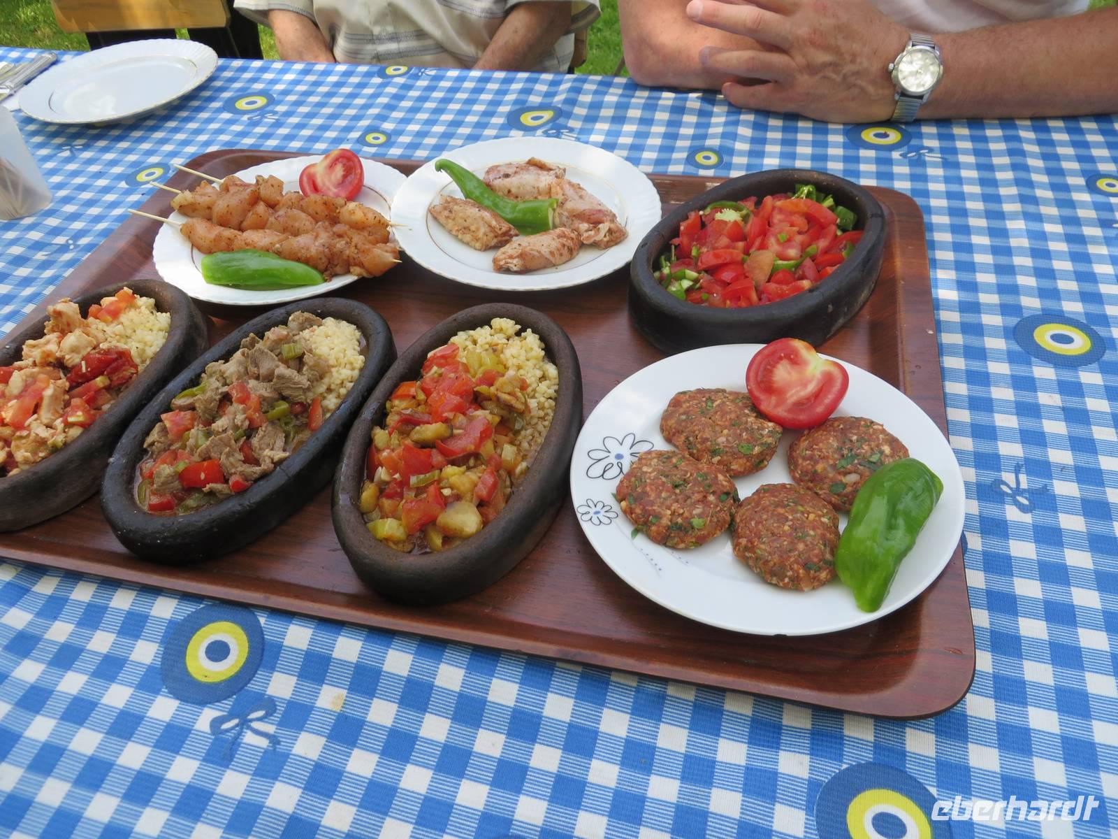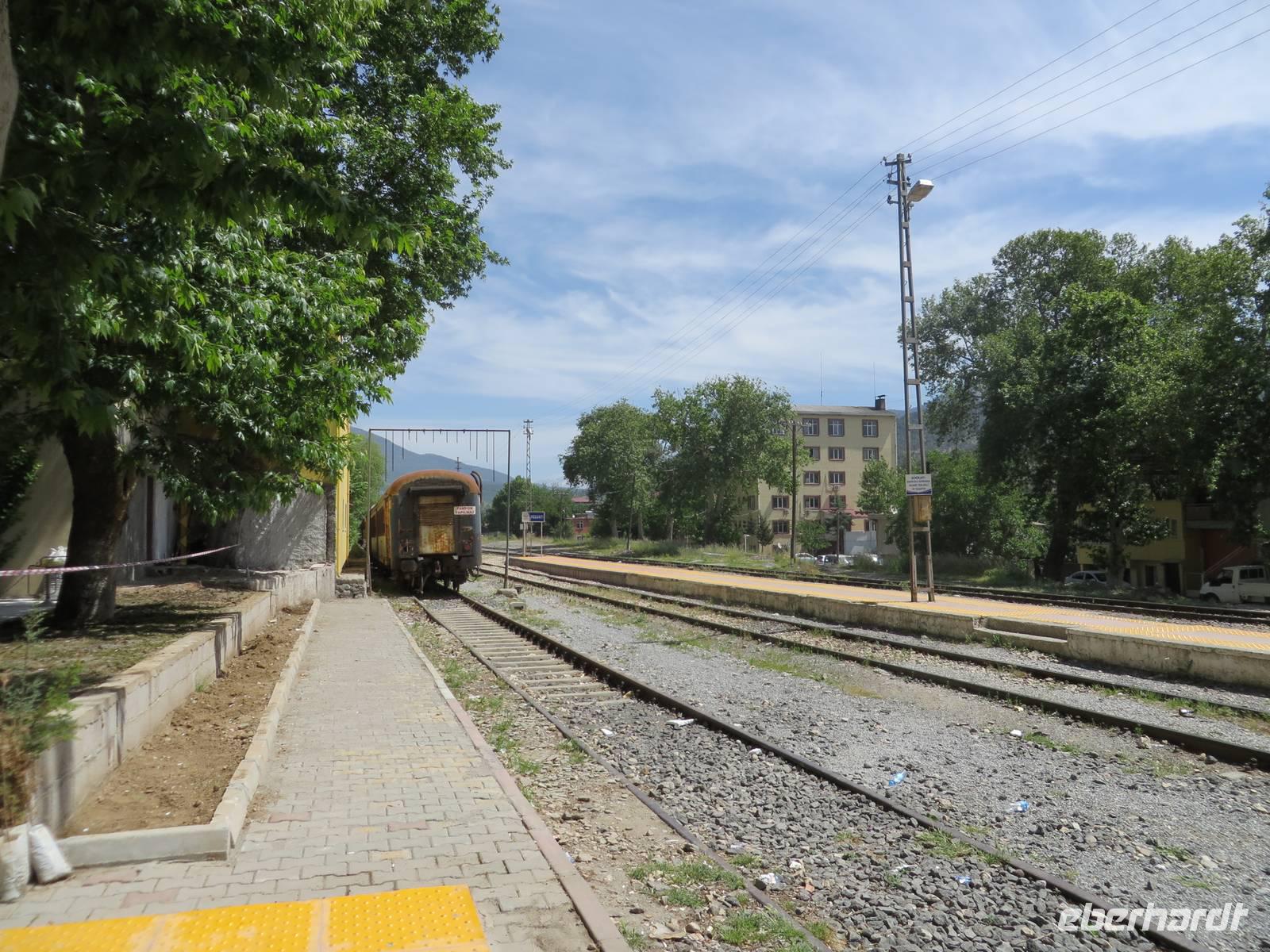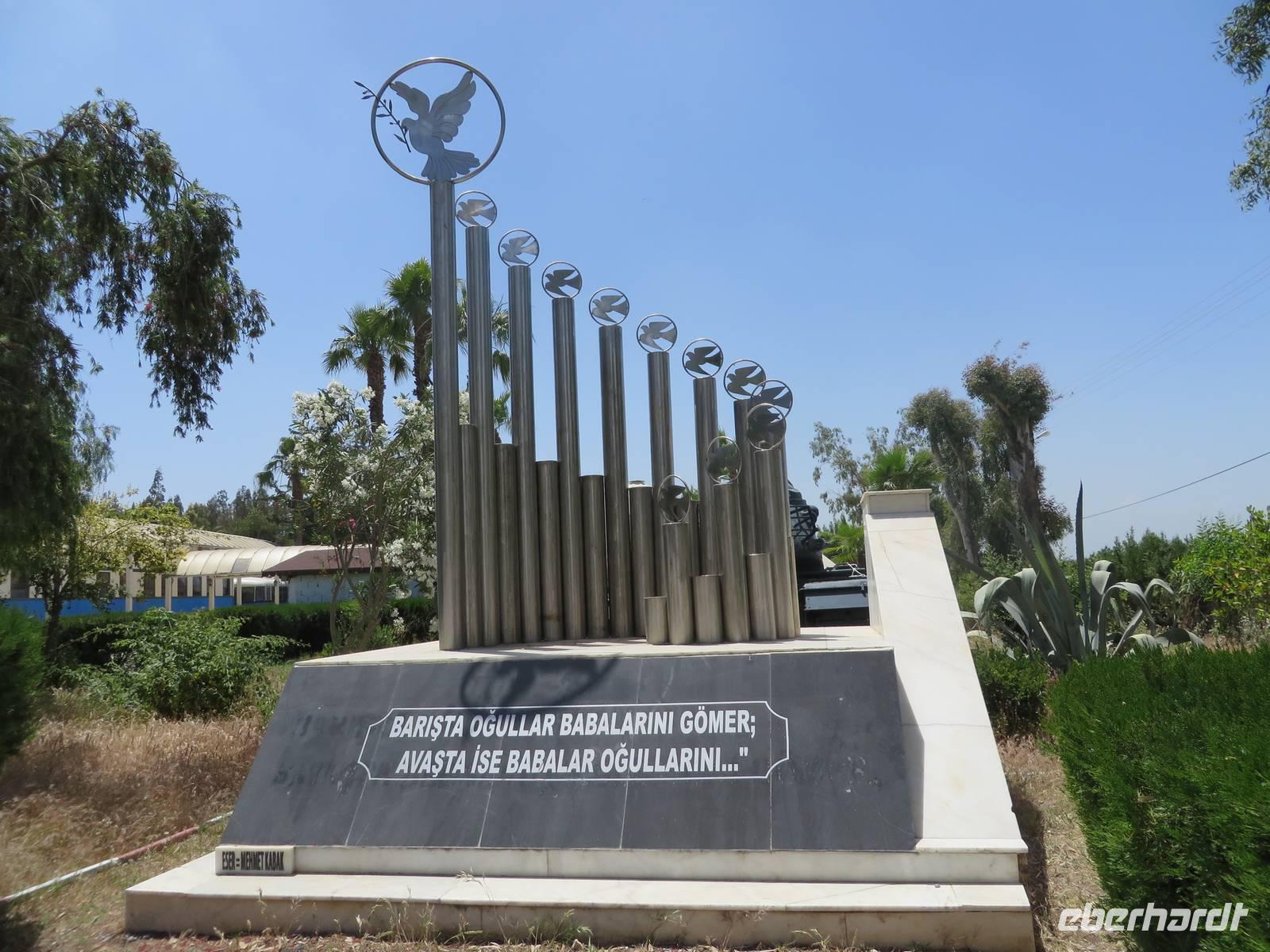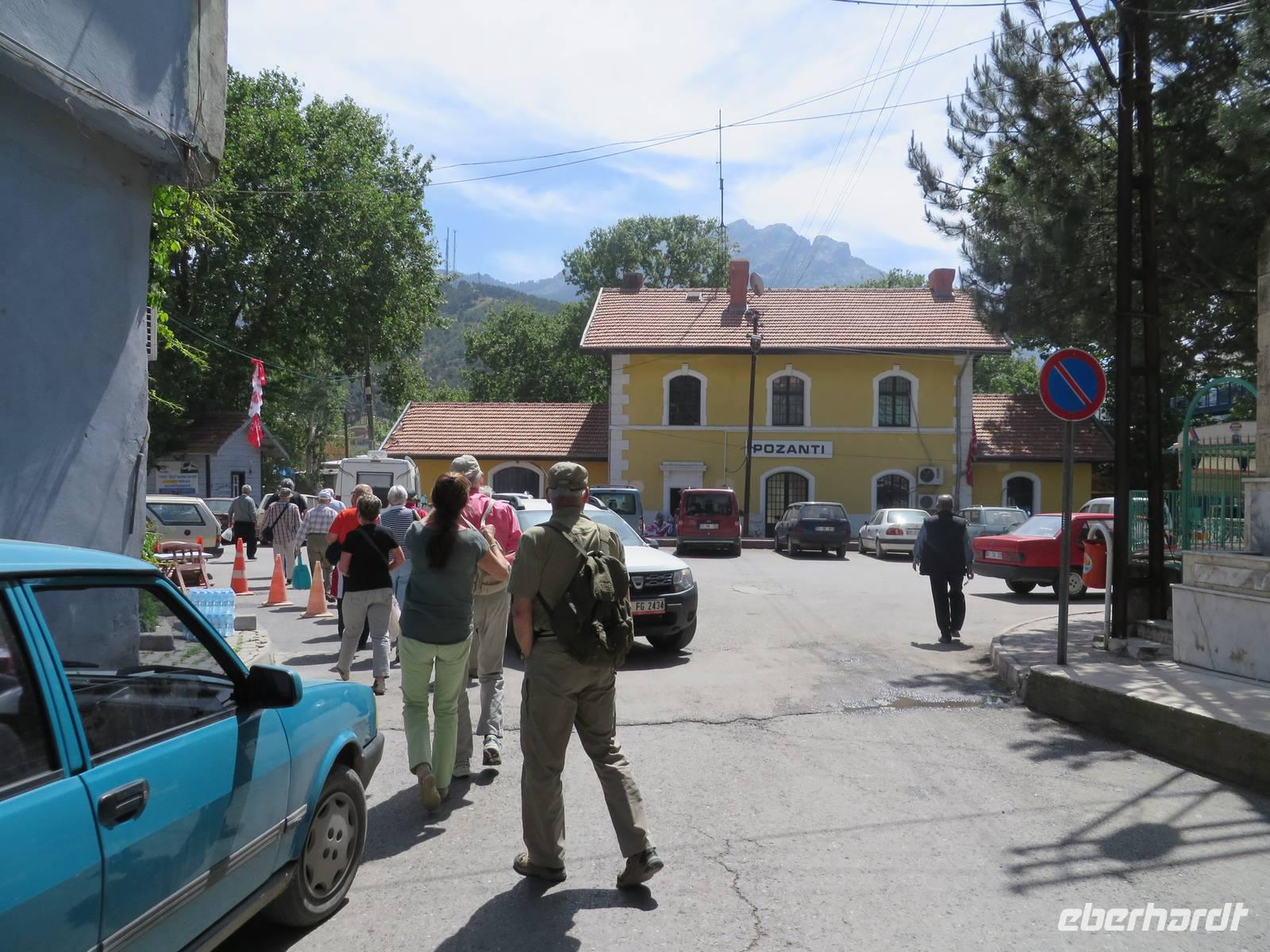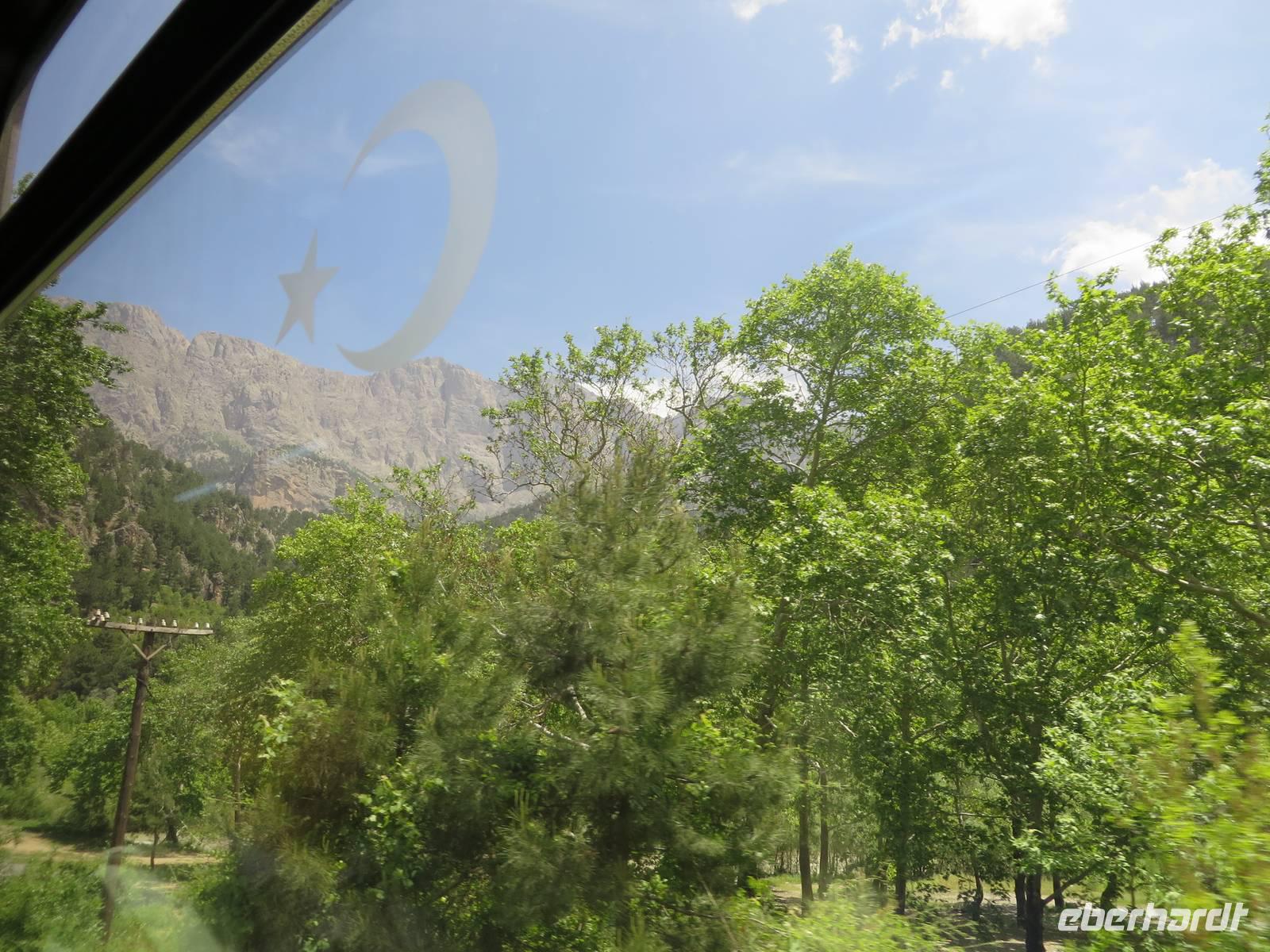 Mit gepackten Koffern verabschieden wir uns von Kappadokien. Wir fahren Richtung Westen. Wie wir bereits aus Berichten von anderen Reisenden wissen, ist mit der Pünktlichkeit der Bagdadbahn nicht zu rechnen. Und so kommt es auch, mit einer halben Stunde Verspätung startet unsere Fahrt. Wir sind uns jedoch darüber einig, dass wir in Anbetracht der Bahnsituation in Deutschland, nichts zu Meckern haben. Der Zug ist modern und sehr sauber. Rechts in Fahrtrichtung sind jeweils 2 Sitze nebeneinander, links Einzelplätze. Die Aussicht ist spektakulär. Zunächst. Später fahren wir durch viele Tunnel und es gibt nichts zu sehen. Als wir die Tunnel hinter uns gelassen haben, verändert sich die Landschaft. Plötzlich flaches Land. Felder, Wiesen, Obstplantagen. Nach eineinhalb Stunden haben wir unser Ziel erreicht. In Yenice steigen wir aus. Zum Mittagessen probieren wir heute eine Kebab-Spezialität mit Fladenbrot. Wir besuchen das Churchill-Museum - ein Wagon, in dem sich 1943 der damalige britische Premierminister Winston Churchill mit dem türkischen Staatspräsidenten Ismet Inönü traf, um diesen dazu zu bewegen, in den Krieg gegen Deutschland einzutreten, was ihm jedoch nicht gelang. Wir besichtigen den Wagon und ein kleines Museum mit vielen Fotos und Bildern aus dieser Zeit. Unser nächster Stopp erfolgt in Tarsus. Hier besichtigen wir den Paulusbrunnen, der seit über tausend Jahren nie versiegt ist und aus dem auch für uns ein Eimer heiliges Wasser geschöpft wird. Wir besichtigen die Reste der römischen Straße auf eigene Faust und spazieren durch die kleinen verwinkelten Gassen. Am Kleopatrator wird ein Fotostopp eingelegt. Möglicherweise hat hier die ägyptische Königin Kleopatra zum ersten Mal den römischen General Marcus Antonius 41 v. Chr. getroffen, um ihn um Hilfe zu bitten. Noch kurz halten wir am Kriegsdenkmal für die bei den Dardanellen gefallenen Soldaten, am ehemaligen Kriegsschiff TCG Nusret. Den Besuch der Korykischen Grotten verschieben wir auf Grund der fortgeschrittenen Zeit auf morgen und fahren zum Hotel Olbios Marina Resort in Mersin.