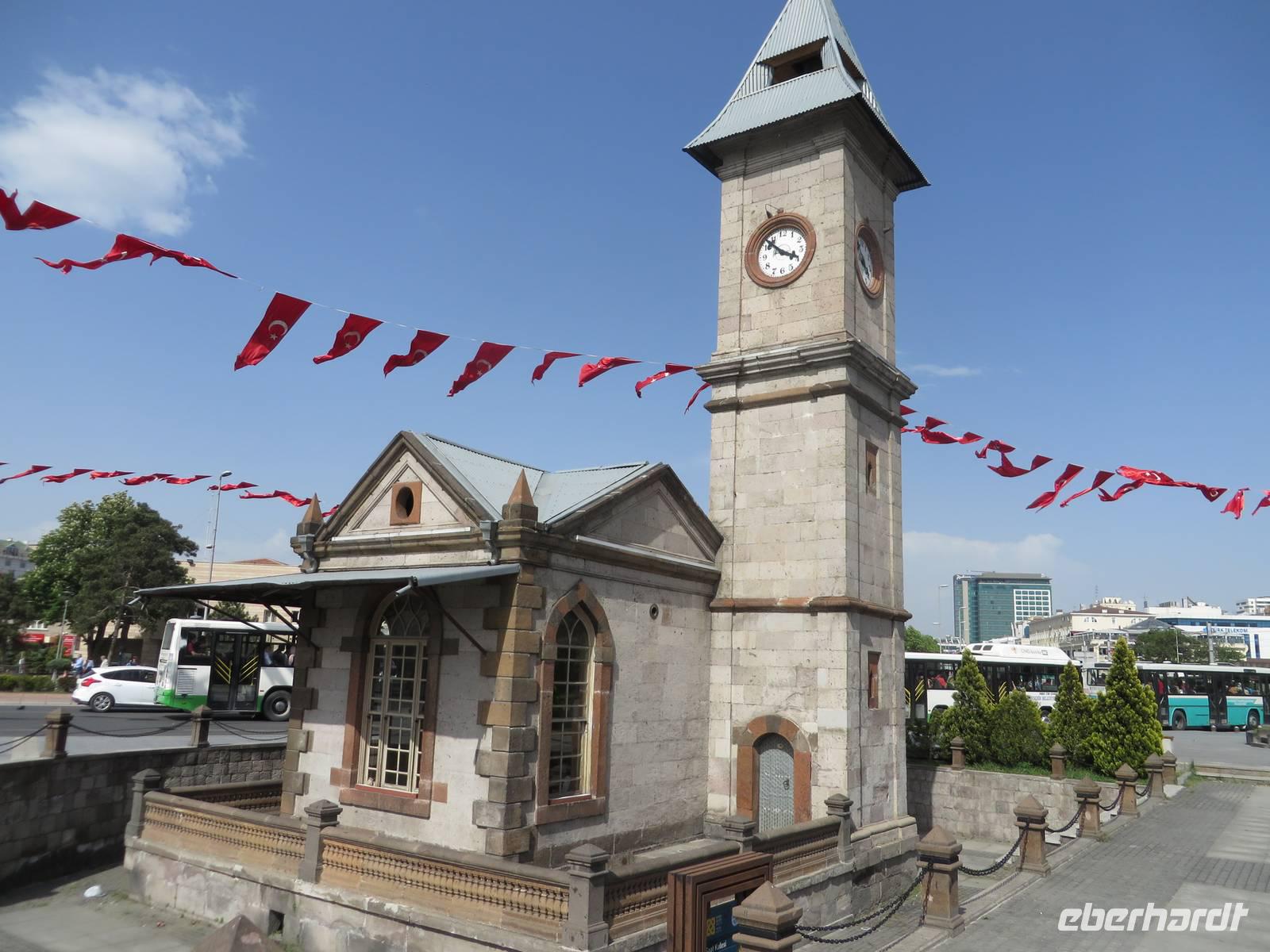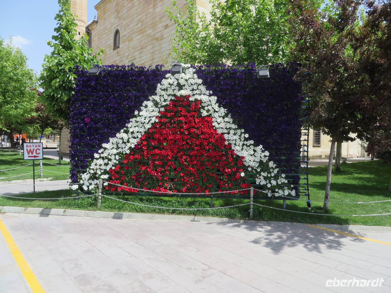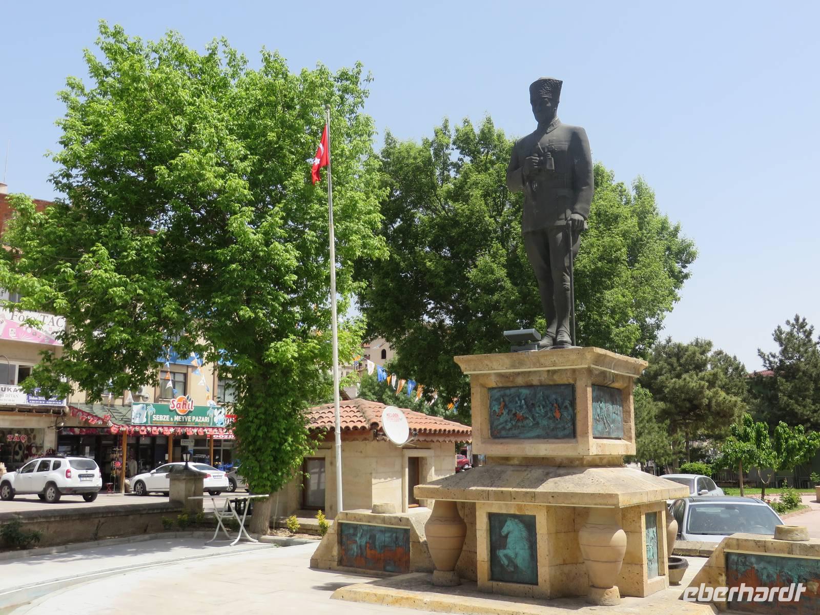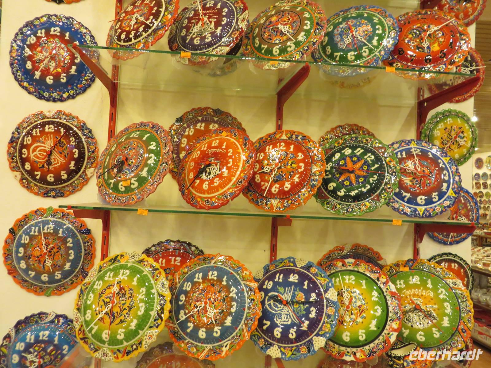 Den Vormittag verbringen wir heute damit, türkisches Handwerk kennen zu lernen. Wir beginnen mit dem Besuch einer Teppichmanufaktur. Hier werden in Handarbeit kostbare Teppiche geknüpft. Wir erfahren, dass der Staat die Manufakturen finanziell fördert, um einerseits zu verhindern, dass diese Tradition ausstirbt, denn moderne türkische Mädchen wollen nicht mehr mit der Hand Teppiche knüpfen und andererseits die Landflucht zu stoppen, also Menschen, die in den Dörfern wohnen, eine sinnvolle Arbeit zu verschaffen, auf die sie stolz sein können und mit der sie ihr Geld verdienen. Zunächst zeigt uns eine junge Frau, wie aus den Puppen der Seidenraupe die feinen Fäden gewonnen werden. Im nächsten Raum sitzen die Knüpferinnen. Wer möchte, kann es selbst einmal ausprobieren - es ist nicht so einfach. Eine Ausbildung dauert zwei Jahre, zur Meisterin wird man in vier Jahren. Nun werden wir im Kreis platziert, Tee oder Kaffee, auf Wunsch auch mit Raki, wird serviert. Jetzt werden vor uns die schönsten Teppiche ausgebreitet. Es ist nicht zu leugnen, dass es sich um Kunstwerke handelt - schön sind sie ja. Nach der Präsentation besteht die Möglichkeit, sich individuell beraten zu lassen. Eine ganze Stunde harren wir höflich aus und lassen die Händler gewähren. Trotzdem sind wir irgendwie froh, als die Prozedur vorbei ist. Auf dem Weg nach Cavusin legen wir einen Stopp in Avanos ein. Heute können wir die Hängebrücke trocken überqueren, das Atatürkdenkmal und die Moschee fotografieren. In Cavusin besuchen wir eine Töpferei. Eine kleine Schale oder Vase oder was auch immer, kann man sich schon eher leisten als ein mehrere tausend Euro kostenden Teppich. In der Keramikwerkstatt erfahren wir zunächst etwas über die Herstellung der Waren und warum die hier hergestellten Produkte viel wertvoller sind, als ähnliche auf dem Markt. Wir schauen dabei zu, wie ein Arbeiter aus einem Klumpen Lehm eine Dose zaubert. Auch hier besteht die Möglichkeit, dass es jemand ausprobiert. Na so was, warum will denn keiner? So bleibt mir nichts weiter übrig, als mich in mein Schicksal zu ergeben. Ich muss eine überdimensionale Arbeitshose anziehen und werden an der Drehscheibe platziert. Hände nass machen und immer schön den Tonklumpen formen. Die Lacher sind nicht zu überhören. Was in der Phantasie meiner Gäste vor sich geht, erwähne ich an dieser Stelle lieber nicht. Aber irgendwann bin ich entlassen und freue mich, dass sich meine Gäste so prächtig amüsiert haben. Im Shop haben wir ausreichend Zeit, ein paar Kleinigkeiten einzukaufen. Mittags sind wir zurück im Hotel. Nach einer kurzen Pause geht es bereits weiter. Wir fahren nach Kayseri. Aus Kayseri kommt die beste sucuk (Salami) der Türkei und pastirma (Räucherwurst) ist eine regionale Spezialität. So ist es auch nicht verwunderlich, dass wir unsere Mittagspause im Schinkenpark einlegen und dort die Spezialitäten kosten können. In Kayseri besuchen wir die Moschee und den überdachten Basar. Serdar und ich kaufen in einem Feinkostgeschäft für Süßigkeiten türkischen Honig, den unsere Gäste auf dem Rückweg verkosten dürfen. Nach ausgiebiger Freizeit fahren wir zurück.