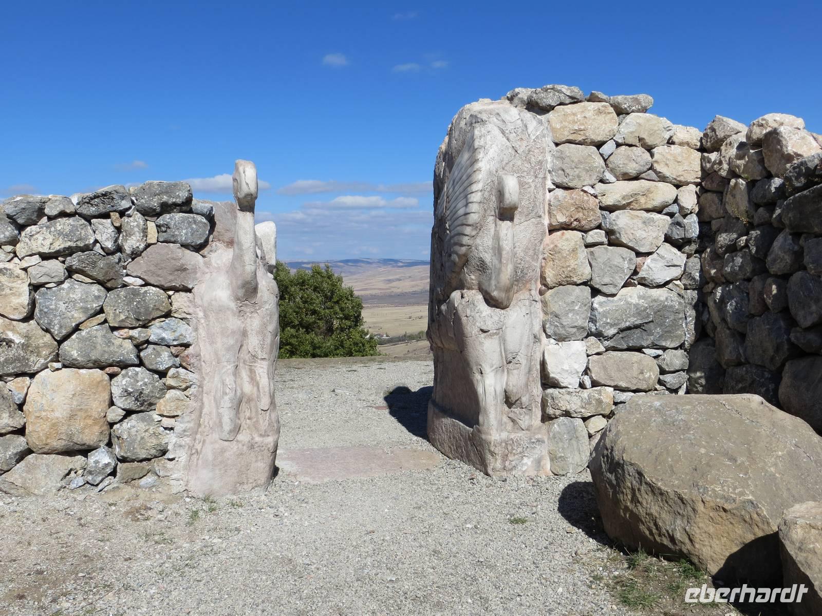 Restgeldtausch und dann in wenigen Busminuten bis zum Museum. Das Museum der Anatolischen Zivilisation umfasst eigentlich derart viele Zeitzeugnisse, vorrangig der hethitischen Epoche, dass es fast schwer fällt, alles richtig einzuordnen. Da aber drei der fünf Säle überarbeitet werden, war dies in diesem Jahr nicht so schwierig. Einige Originalstandorte der Reliefs, Fresken und anderen Fundstücke werden wir in den kommenden Tagen original sehen. Anschließend bummelten wir durch schmale Gassen auf die alte Festung von Ankara und genossen einen ersten Blick auf die stark wachsende Stadt. Kaum vorstellbar, dass die Stadt vor 90 Jahren nur 30.000 Einwohner hatte und ohne die Entscheidung Atatürks für Ankara zur Hauptstadt, diese Stadt wohl heute noch ein großes Dorf wäre. Atatürk - der Name und seine Abbildungen werden uns nun immer wieder begegnen. Also fuhren wir zu seinem Mausoleum, das inmitten einer Parkanlage auf einem Plateau liegt. Ein gewaltiger Ehrenkomplex eröffnet sich, ein wenig 30er Jahre Baustil zwischen Reichshauptstadt und stalinistischer Hauptstadt des Weltproletariats, aber eben in Ankara. Interessant dann das Atatürk-Museum, das Ausdruck der Bedeutung des Vaters aller Türken für die heutige Türkei ist. Canakale - wer kennt in Deutschland dieses Schlachtort des ersten Weltkrieges, der von der Opferzahl fast mit Verdun vergleichbar ist? - auch davon berichtet das Museum in pathetischen Wandbildern.Nach dem Abendessen unternahmen wir mit dem Bus noch einen Ausflug durch das abendliche Ankara, hinauf auf den südlichen Hügelring und blickten auf das Erbe Atatürks:: eine moderne Großstadt mit fast fünf Millionen Einwohnern.