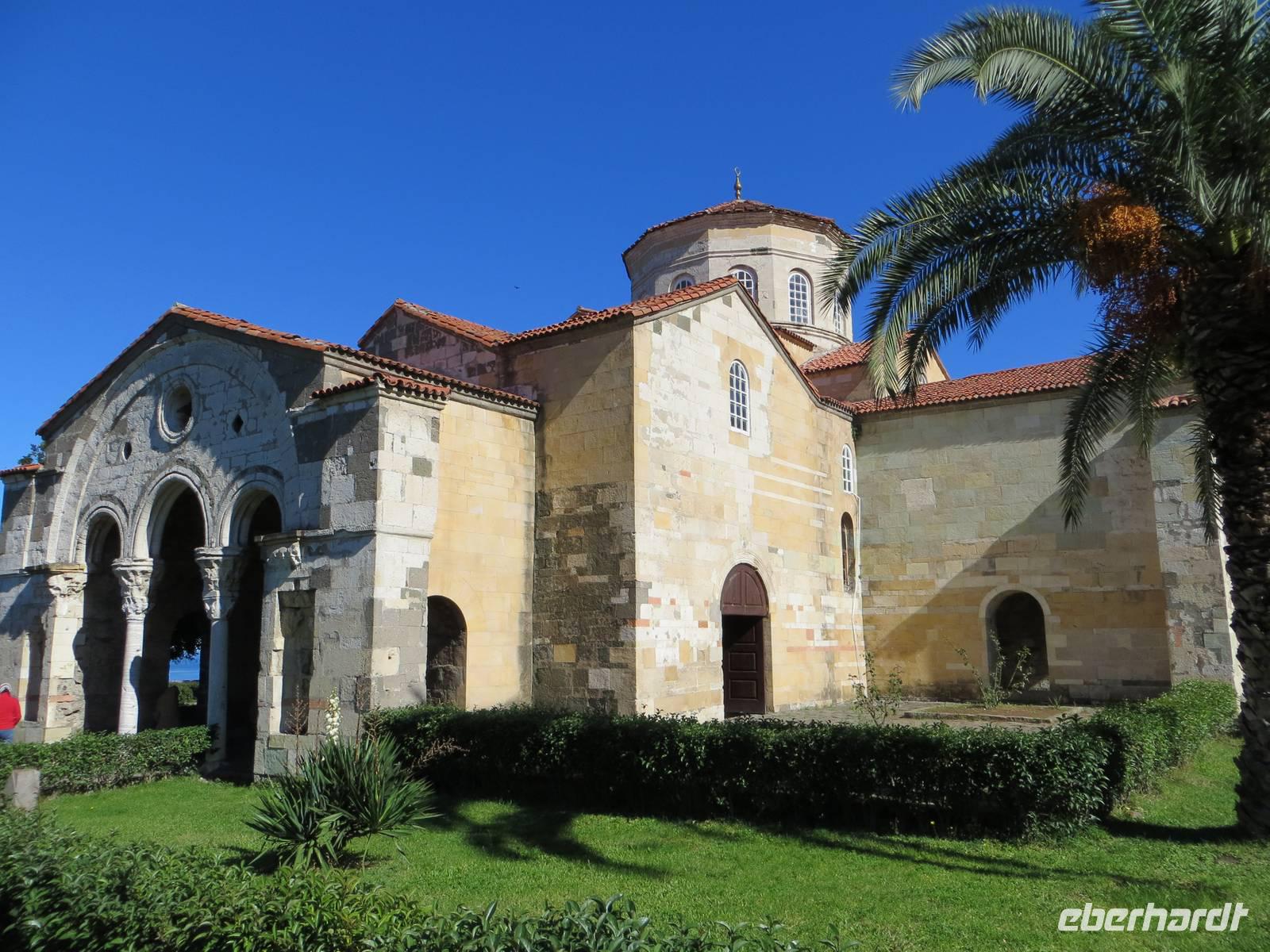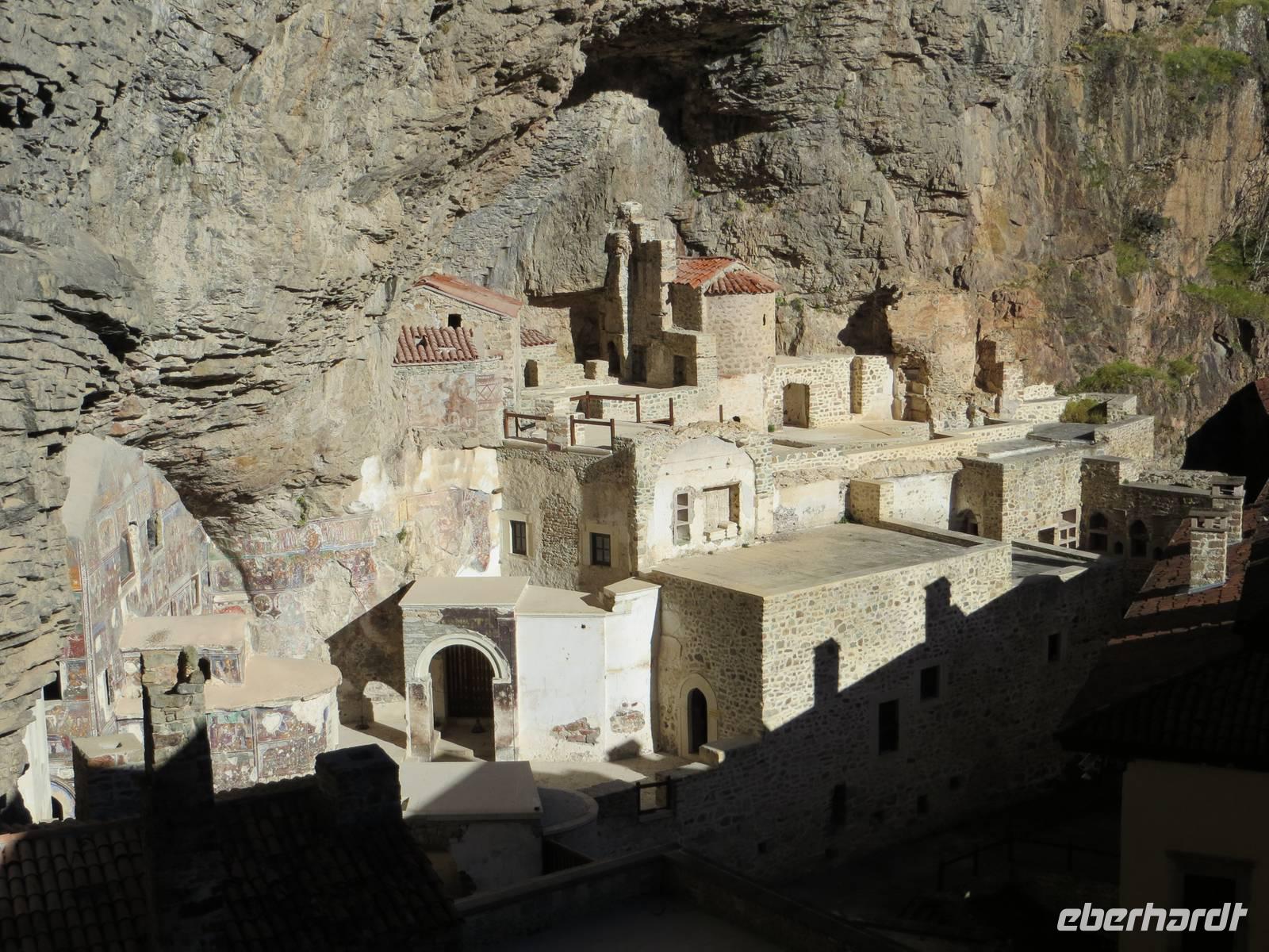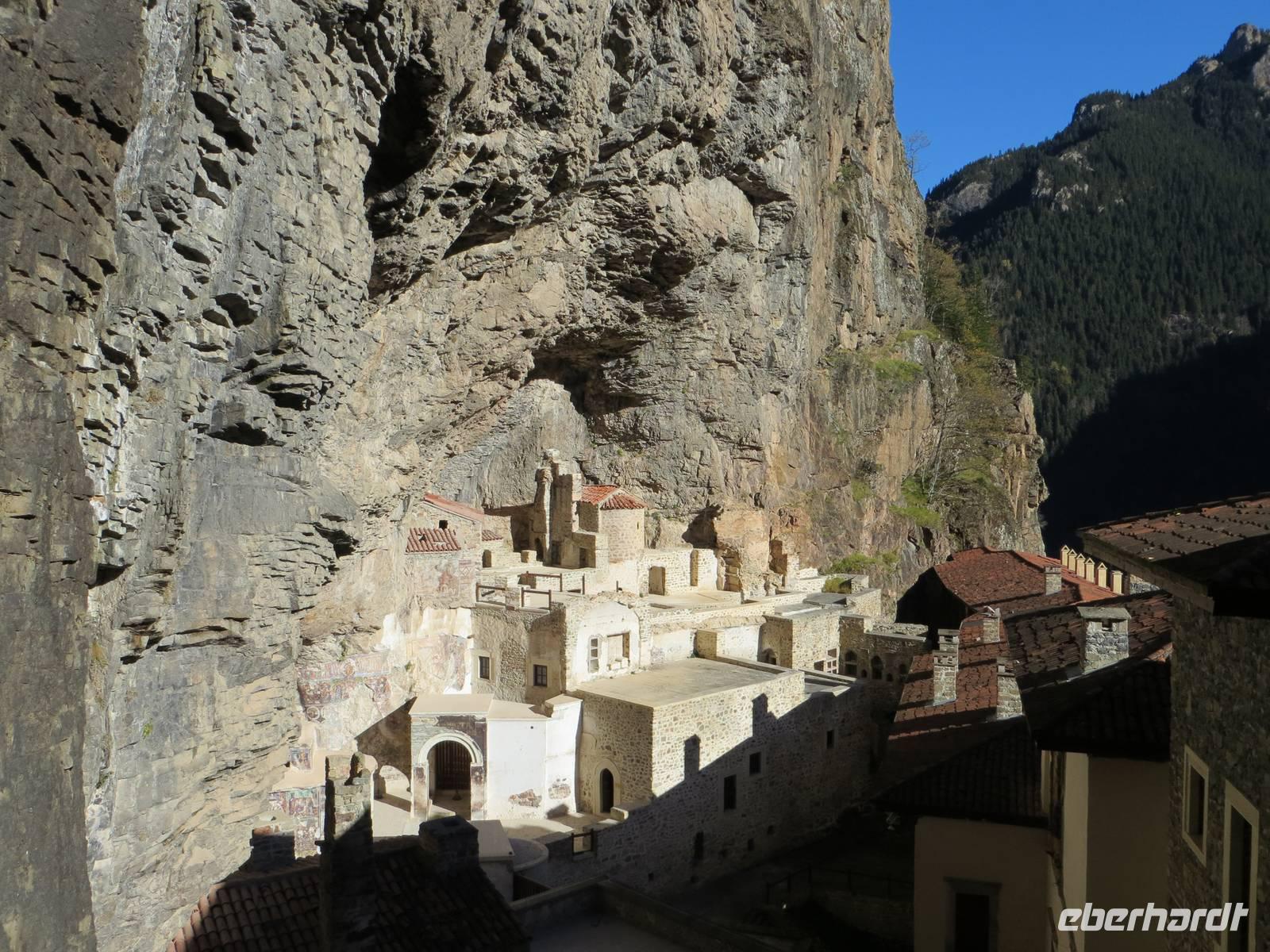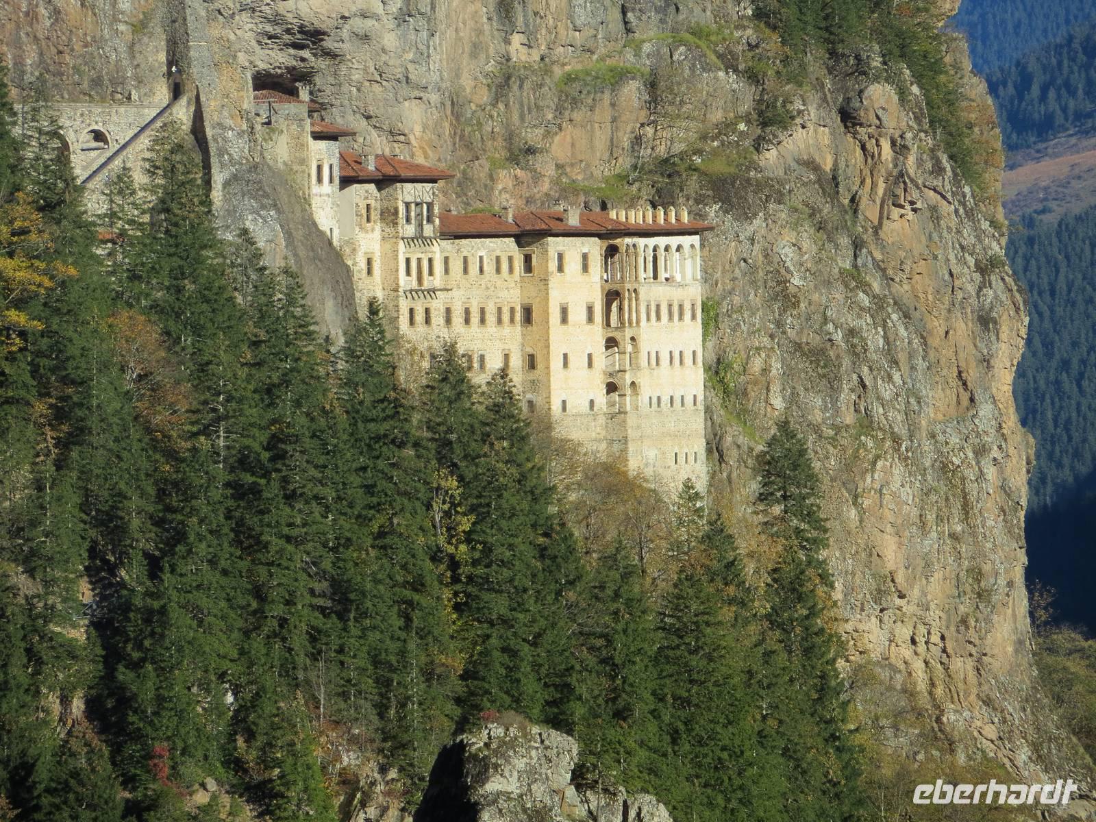 Das Klima an der Schwarzmeerküste ist oft feucht und trüb: wir hatten Glück, es wurde ein Sonnentag. Bereits bei unserer frühzeitigen Ankunft im Talkessel unterhalb des Sumela-Klosters konnten wir das Klostergebäude hoch oben in der Wand in den Sonnenstrahlen erkennen. Nach einigen Minuten waren auch die Kleinbusse zur Weiterfahrt bereit. Das Sumala-Kloster ist einer der bedeutendsten Orte der orthodoxen Kirche in Anatolien und einer der ältesten Sakralbauten der Schwarzmeerregion. Besonders beindruckend war die Grottenkapelle mit reichverzierten Fresken. Die Lage am Endpunkt einer Handelsstraße verschaffte Trabzon, der drittgrößten Stadt der Schwarzmeerküste in der Antike große Bedeutung. In Trabzon besichtigten wir, die Hagia-Sophia-Kirche, eine byzantinische Kirche mit bunten Fresken in drei Längsschiffen und einem Querschiff, die von einer Kuppel gekrönt werden. Im Kampf der Religionen siegte vor zwei Monaten erneut der Islam, so dass aus der Museumskirche wieder eine Moschee wurde. Der Kuppelbau mit jahrhundertealter christlicher Malerei nun verhangen durch Tuch - nicht viel anders als Bilderstreit und „Malerei geschützt durch eine Kalkschicht". Ich weiß jetzt, warum die jungen Menschen der Türkei im Frühsommer des Jahres auf die Straße gegangen sind