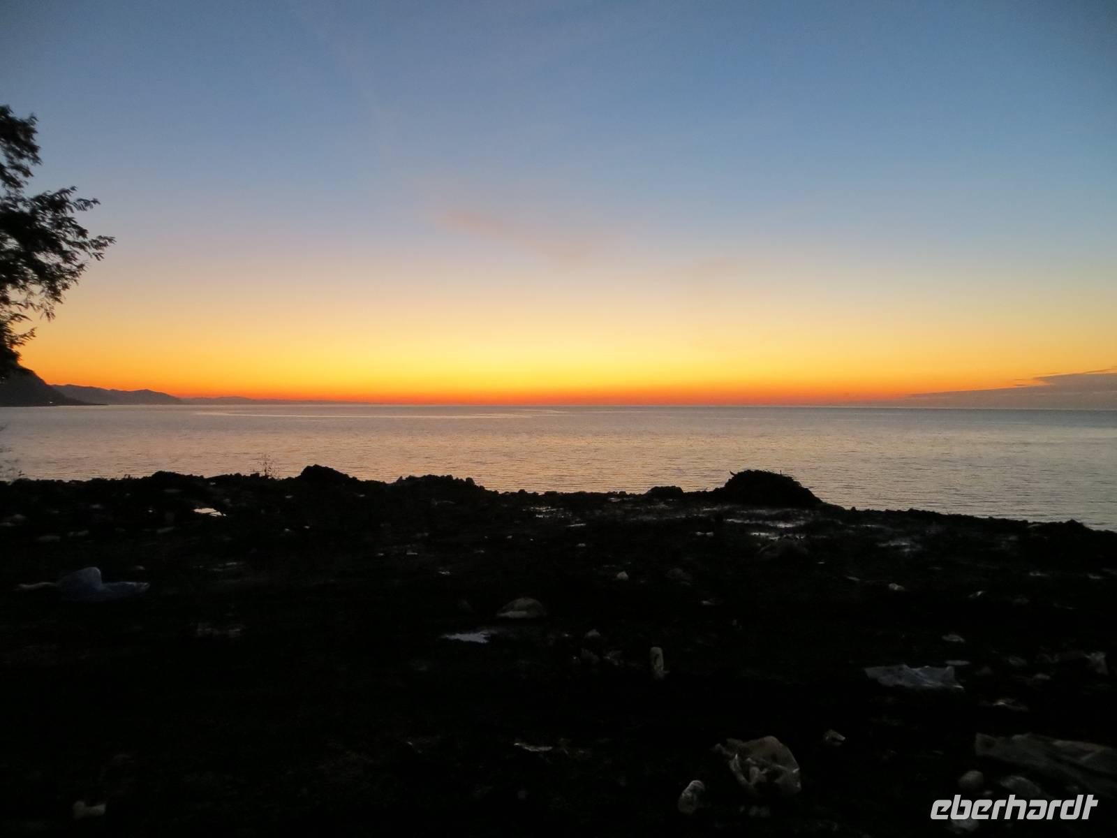 Entlang des Schwarzmeerufers fuhren wir weiter über Rize Richtung Hopa-Artvin. Als wir einige Teesträucher entdeckten, wurden wir durch den Besitzer der Teeverarbeitungsfabrik Karali zur Besichtigung seines Anwesens und natürlich zum Tee eingeladen: beste türkische Gastfreundschaft. Bevor wir am Hotel in Hopa hielten, fuhren wir bis an den Grenzübergang nach Georgien. In dem Gewühl hatten wir doch etwas Bedenken, so dass wir uns zum Fotostopp bei noch rotem Himmel über dem Meer nahe der Grenze entschieden. Dann ging es zurück nach Hopa (Postanschrift Hopa-Artvin) , wo wir im Hotel Paluri unsere Zimmer bezogen.