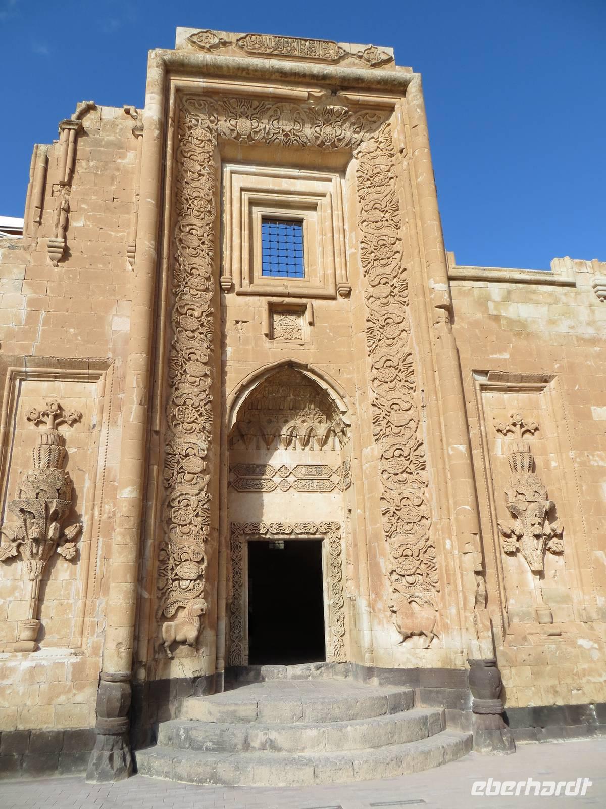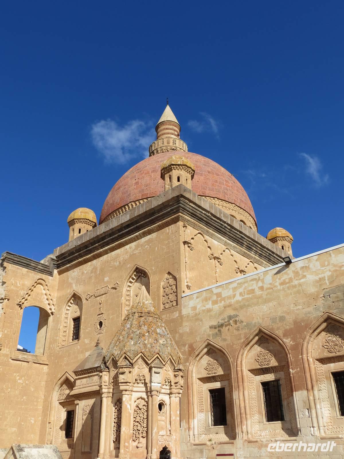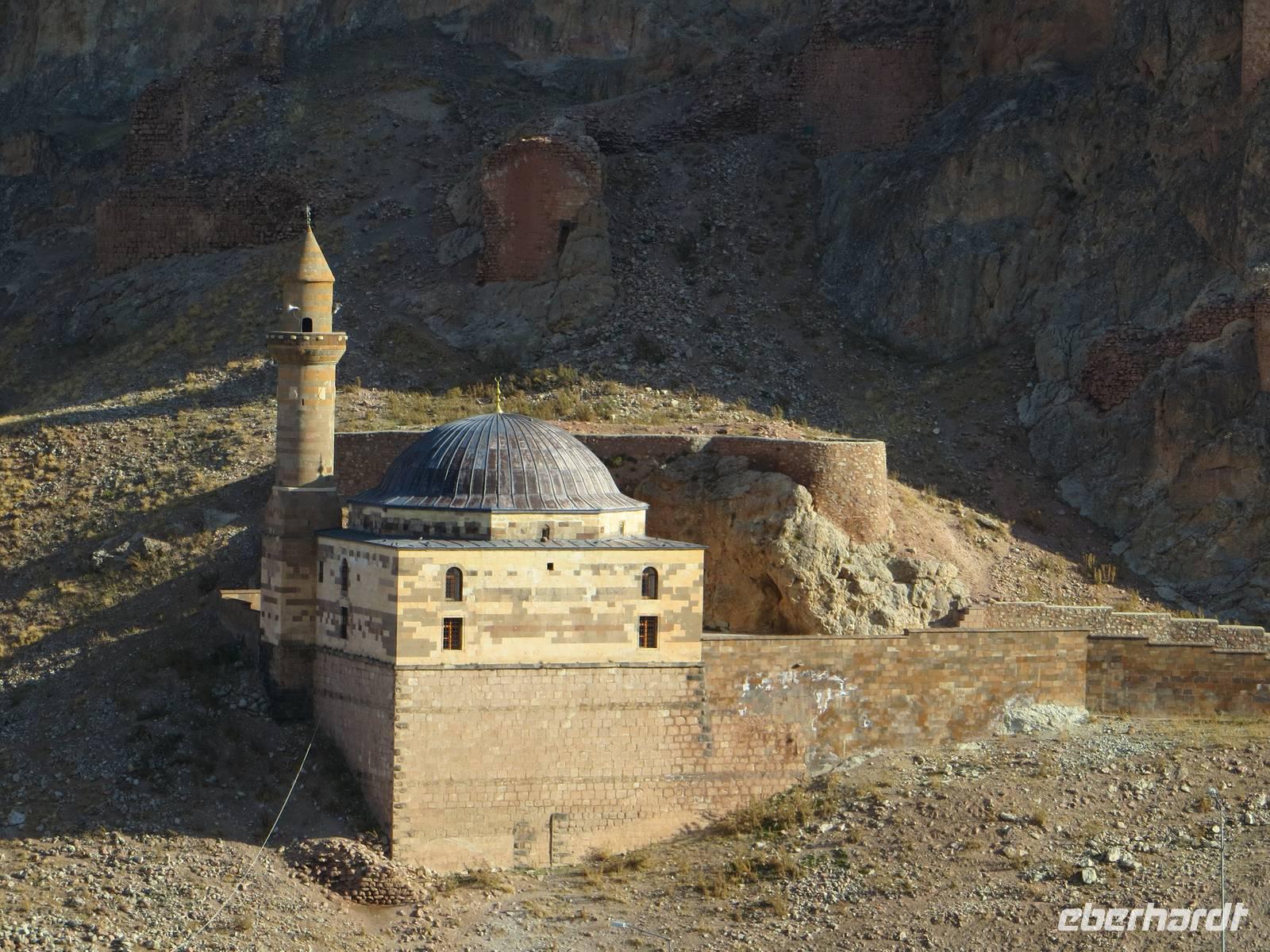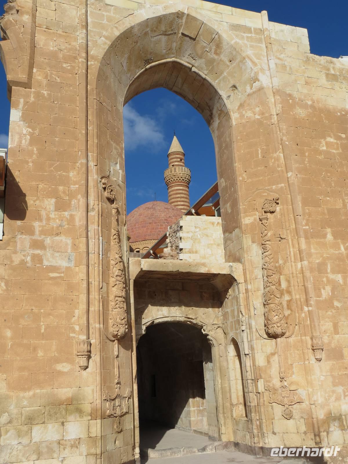 Zunächst frühmorgendliche Auffahrt vom Schwarzen Meer in die Berge an Artvin vorbei. Eine atemberaubende Fahrt führte uns durch das Coruh Tal gen Süden. Noch 2011 fuhren wir unmittelbar neben dem Fluss; das Tal sollte seinerzeit noch durch einen Staudamm abgeriegelt werden. Nun war dies mittlerweile geschehen, eine 250 Meter hohe Staumauer blockierte den Strom. Irgendwann soll der Staudamm auch Energie und Wasser für Ostanatolien liefern. Mit unserem kleinen Bus unternahmen wir einen Abstecher zur, in den Bergen, auf 1100 Meter Höhe, gelegenen georgischen Kirche Ishan. Einerseits freuten wir uns, dass dieses Kleinod rekonstruiert wird, andererseits waren wir natürlich traurig, dass wir nicht in die Kirche konnten. Ein traditionelles Picknick mit Köfte, Ziegenkäsecreme und verschiedenen Gemüsen sowie georgischem Rotwein krönte den Ausflug in die Gebirgswelt. Leider war uns auch die Zufahrt zur georgischen Kirche von Ösk verwehrt, weil Straßenbauarbeiten erfolgten. Nach langer Fahrt aus dem Gebirge heraus in die Ebene erhoben sich dann die schneebedeckten Berge hinter Erzurum. Erzurum ist seldschukisch geprägt mit Medresen und alten Moscheen. Die Cifte - Moschee war auch hier in einer Erneuerungsphase, aber ein kleiner Stadtbummel blieb uns am zeitigen Abend.