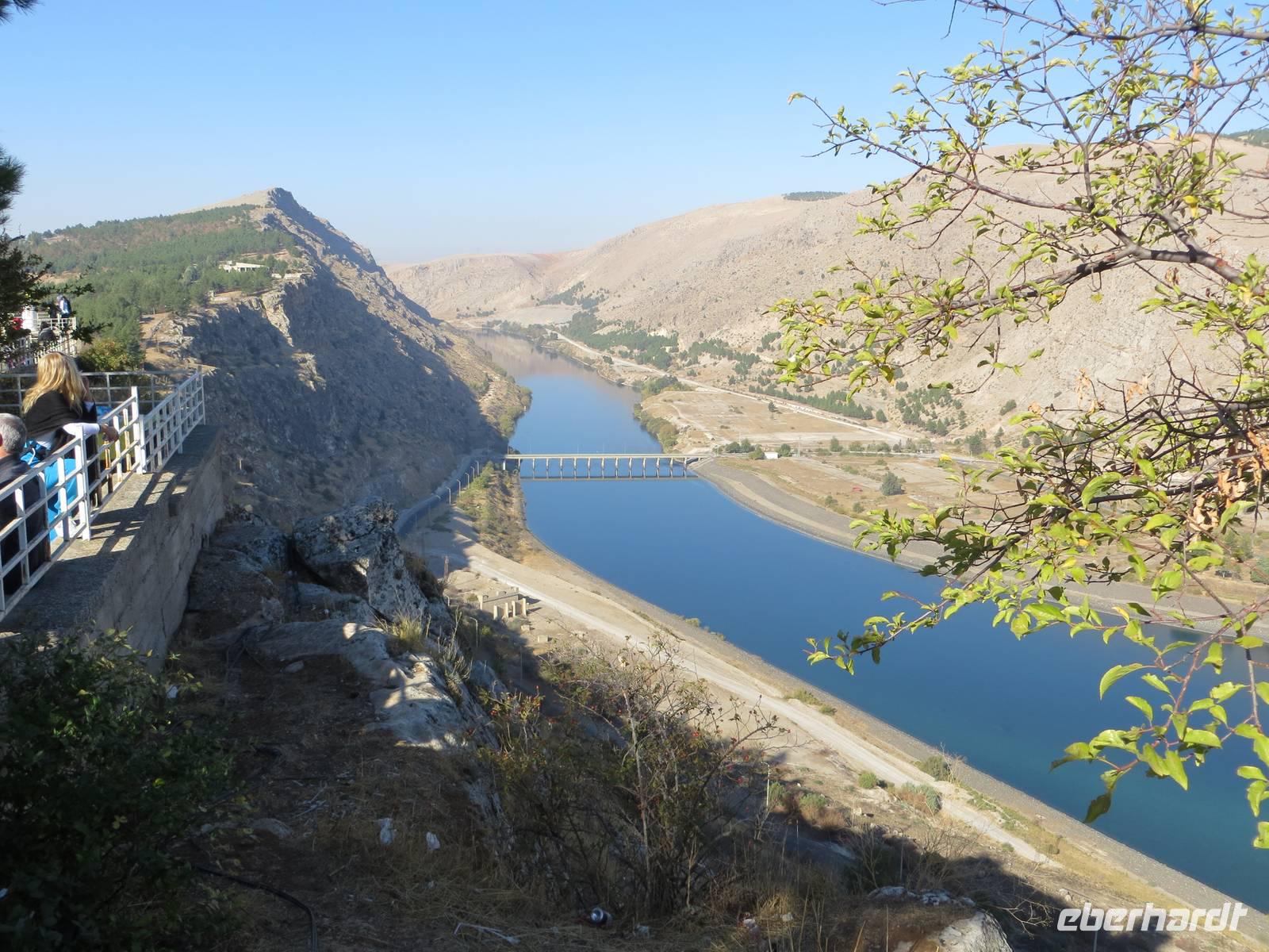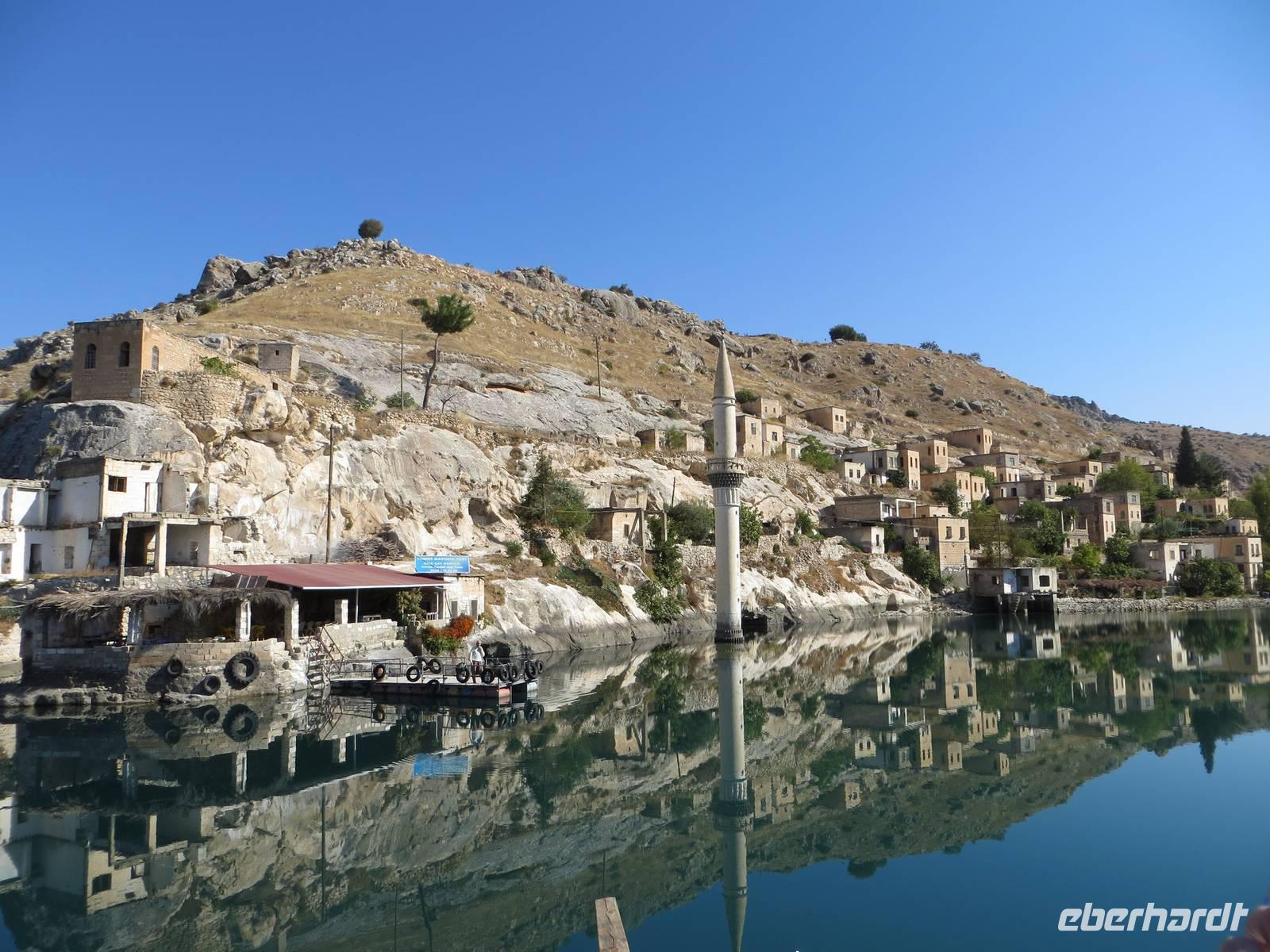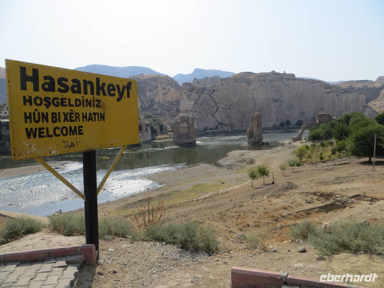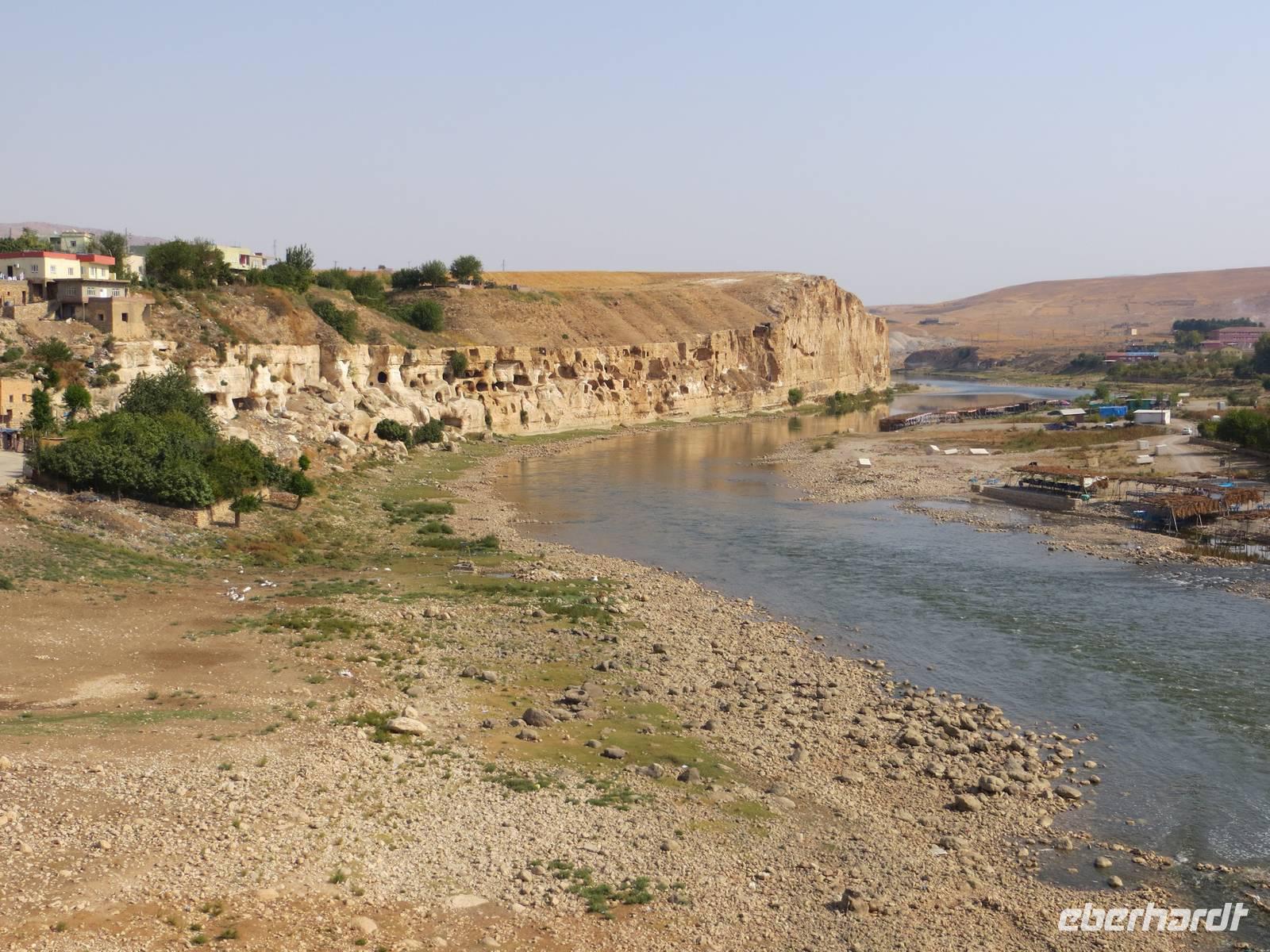 Am Vormittag erreichten wir den Tigris - Traum manches eifrigen Schülers im deutschen Geschichtsunterricht. Von der Brücke konnten wir die üblichen Touristenfotos auf die gewaltigen Brückenreste, den Burgberg und das schiefe Minarett von Hasankeyf schießen.