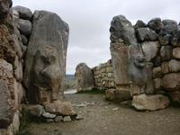 Hattuschas Besiedlung begann vor ungefähr 5000 Jahren, um 1900 v. Chr. ließen sich auch assyrische Händler nieder, um 1800 v. Chr. wurde die Stadt zerstört, danach wieder aufgebaut. Mit dem Niedergang des hethitischen Reiches gegen 1200 v. Chr. verlor auch die Stadt ihre Bedeutung. Das weiträumige Gelände, UNSECO-Weltkulturerbe, liegt auf einer hügeligen Hochfläche, zwischen den einzelnen Grabungsstätten kann man mit dem Bus fahren. Zunächst haben wir uns die Unterstadt mit ihren weitläufigen, fast zyklopenartig erhaltenen Resten der Umfassungsmauern von Tempeln und anderen Gebäuden angesehen, danach fuhren wir zu den Toren der Stadtmauer sowie dem künstlichen Wall, von dort aus ging es zu den Hieroglyphen-Steinen, der Südburg und anschließend auf die Akropolis. Die Mächtigkeit der Anlage sowie die ausgefeilte Bautechnik beeindruckten uns alle.