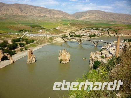 Nach der Übernachtung in Tatvan erreichten wir am Vormittag die Stadt 0415/623 Hasankeyf am Tigris, die wahrscheinlich in den nächsten Jahren einem Staudammprojekt weichen wird. Auf der Festung, die wir unmittelbar nach der Ankunft bestiegen, eröffnete sich uns ein beeindruckender Rundblick über die Stadt, das Flussbett des Tigris und die umliegenden Höhen. Einige Türben und eine alte Moschee konnten besichtigt werden. Der Ort, ursprünglich als römischer Grenzposten (Cephe) gegen die Perser errichtet, wurde später byzantinischer Bischofssitz. Kurzzeitig befand er sich unter ortokidischer Herrschaft (12.Jahrh.).