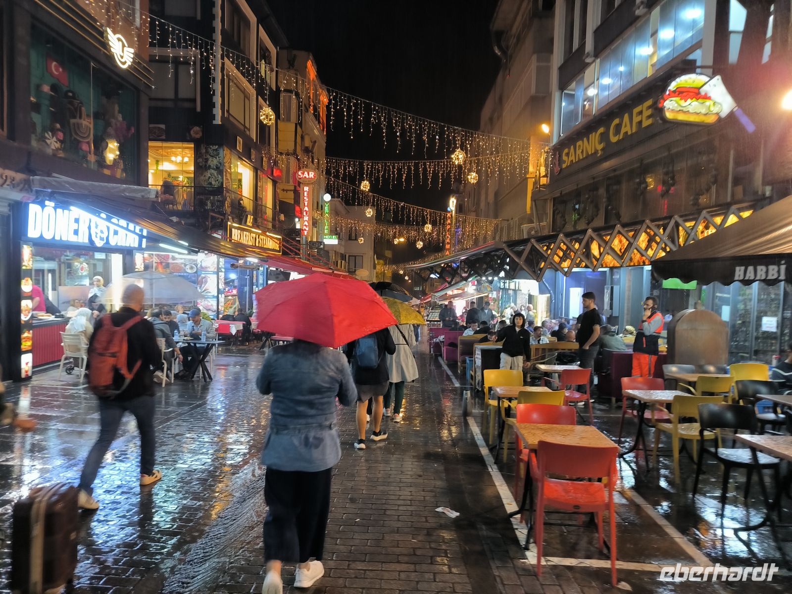 In der Nähe befindet sich auch das Restaurant Ficcin mit anatolischer Küche, wo wir unser Abendessen á la Carte einnehmen. Den Rückweg zum Hotel bewältigen wir im Regen mit der Tünel-Standseilbahn und der Straßenbahn.