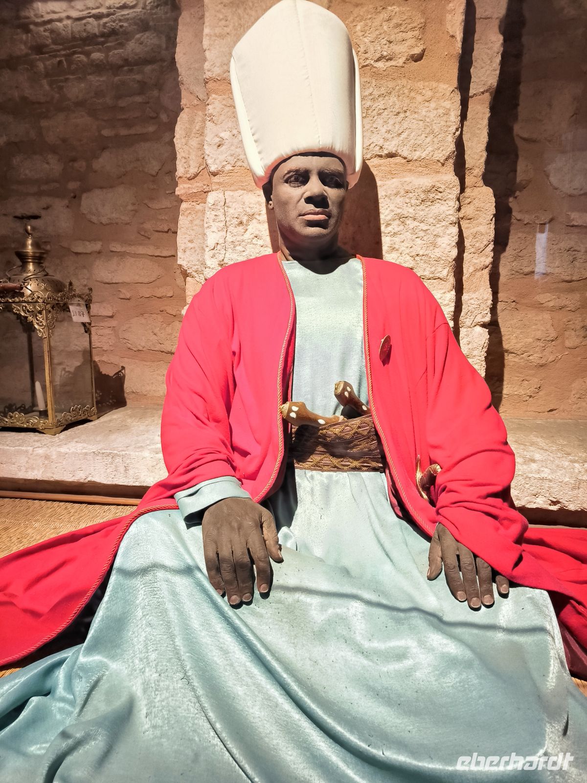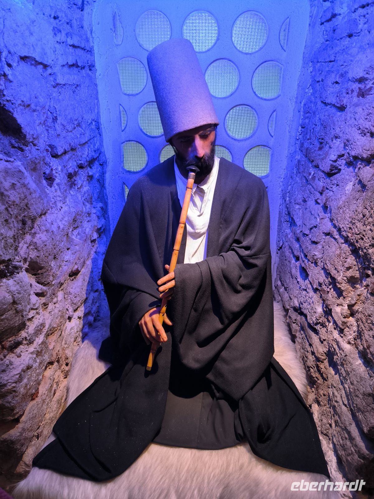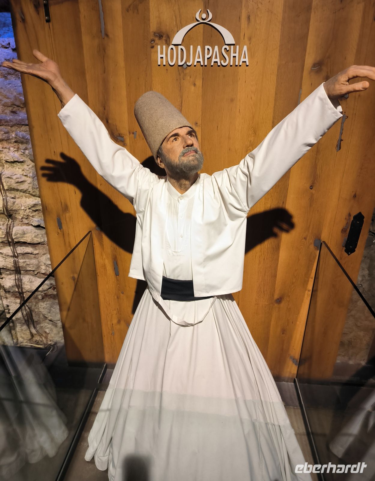Durch die belebte Innenstadt laufen wir zu unserem nächsten Ziel. Es bleibt noch Zeit für eine kurze Pause, bevor wir in einem ehemaligen Hamam eine sehr besondere traditionelle, spirituelle Darbietung erleben. Der Tanz der Derwische ist eine Form des Sufismus, die eine mystische Suche nach Gott und Erleuchtung symbolisiert. Die Derwische tragen hohe, kegelförmige Hüte, die Grabsteine symbolisieren, und weiße Gewänder, die Leichentücher darstellen. Der Wirbeltanz ist eine Form der Meditation und des Gebets. Die Derwische wirbeln im Uhrzeigersinn und halten ihre Arme geöffnet, um die kosmische Reise der Seele zur Erleuchtung und Einheit mit dem Göttlichen darzustellen. Die Zeremonie wird von traditioneller Musik, Gesängen und Poesie begleitet, um eine meditative Atmosphäre zu schaffen und die spirituelle Reise zu untermalen.