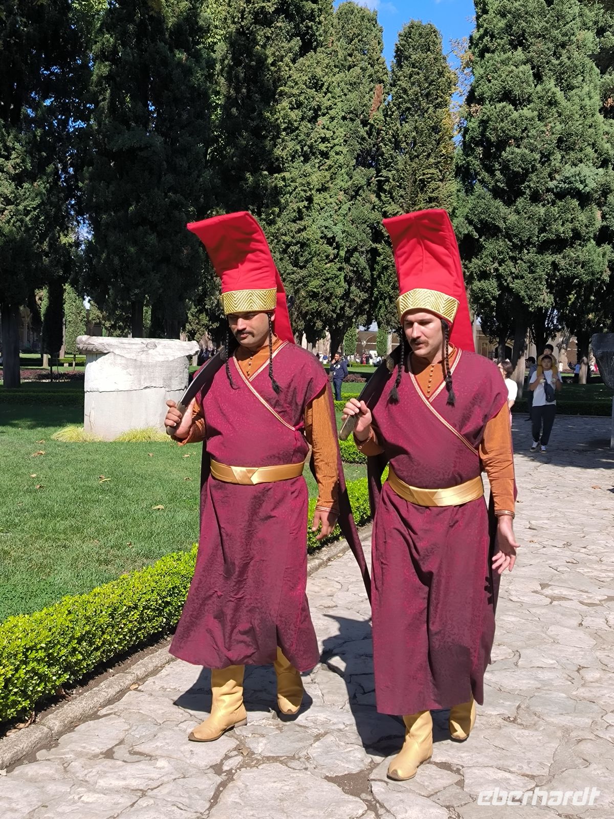 Zur türkischen Kultur gehört auch, dass sie uns Ihre Bräuche und Produkte näherbringen wollen und so sind wir bei der bekannten Teppich-Knüpfer-Familie Nakkas eingeladen. Bei einem Glas Tee werden uns Teppiche präsentiert. Kleine und große, alte und neue. Traditionelle Muster ebenso wie moderne Designs. Wir schauen zu, wie die geschickten Finger der Knüpferin die Muster aus Seide und Wolle entstehen lassen. Und ja, zwei von uns sind spontan so begeistert, dass sie je einen wunderschönen Teppich mit Lieferung frei Haus erwerben.