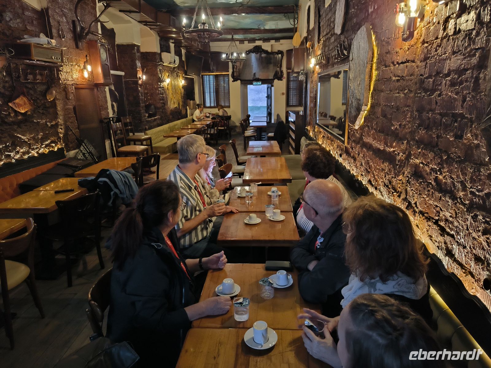 Auch für uns Nichtgläubige ist es eine Erfahrung, die uns beseelt diesen Ort verlassen lässt. Wir fahren zwei Stationen mit der Straßenbahn, um das Restaurant für unser Abendessen zu erreichen. Das Rooftop-Restaurant Utopia bietet uns einen großartigen Blick auf die Stadt und die Gebäude, die wir an diesem Tag besucht haben. Eigentlich ist es auch nicht weit von unserem Hotel entfernt und die meisten entschließen sich, zu Fuß zu gehen. Nur eine Minute später öffnet sich der dunkle Himmel abermals, um uns mit Regen zu überschütten. Danach haben wir uns einen Raki in der Hotelbar aber wirklich verdient.