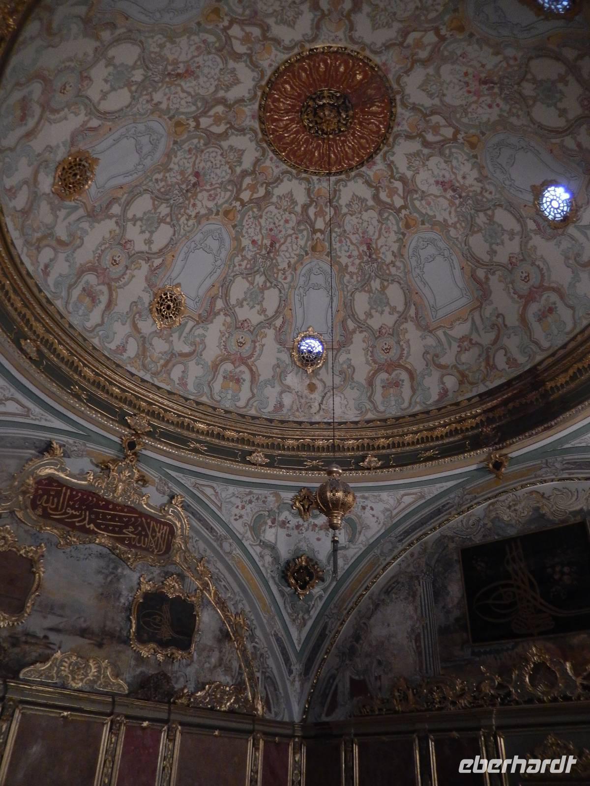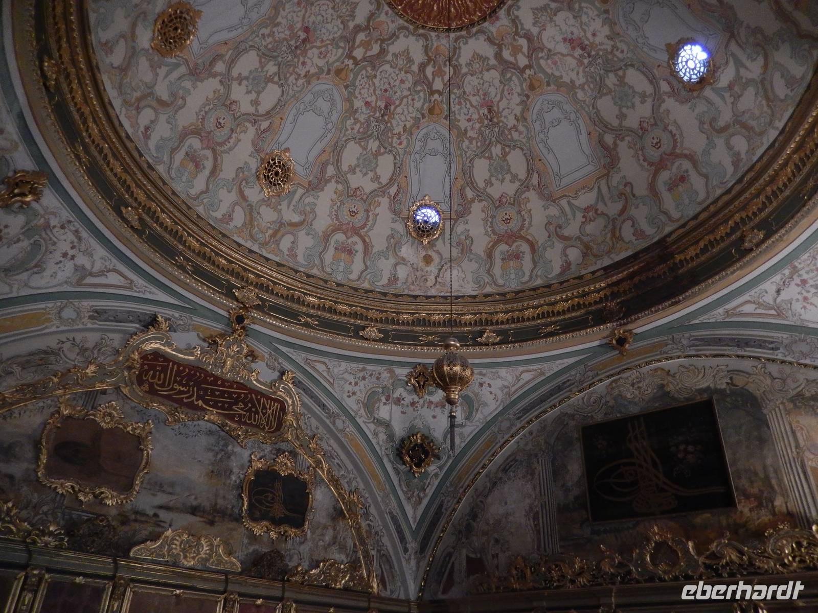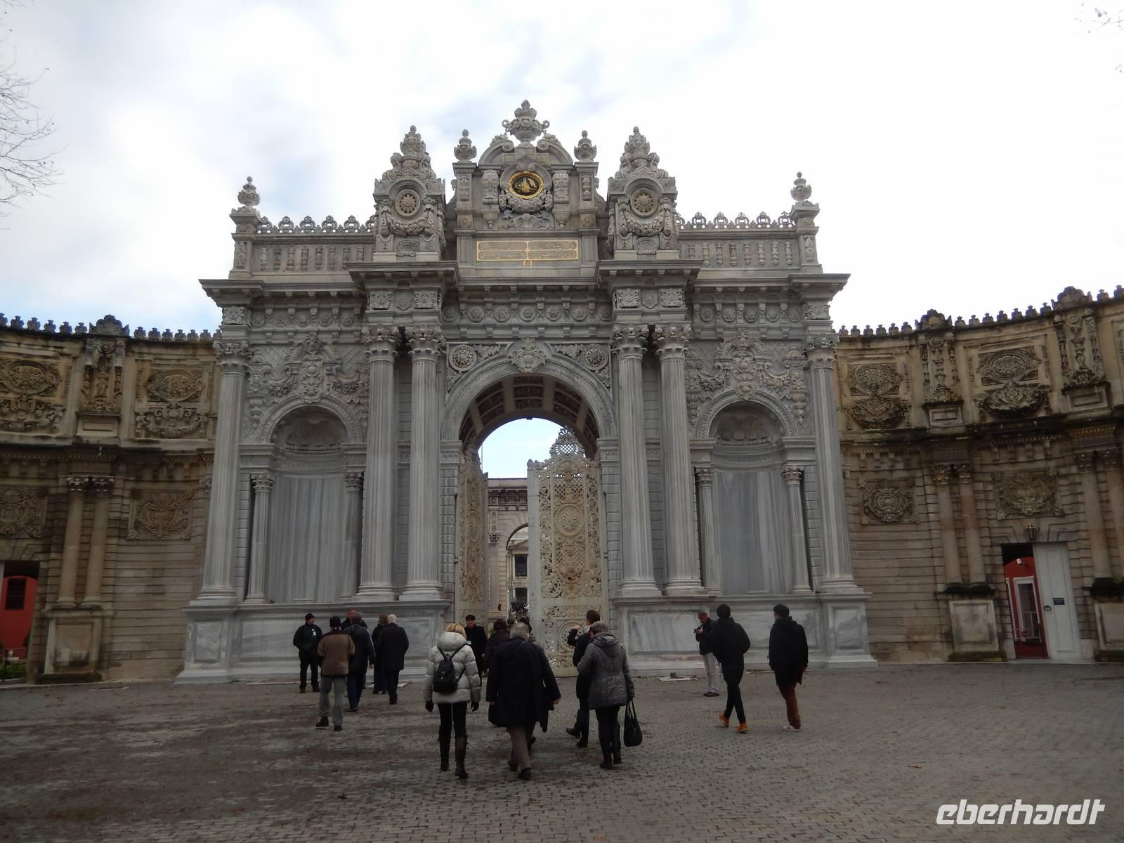 Serdar erzählt uns etwas zur geschichte des Palastes und führt uns dann durch die 4 Höfe. Wir passieren den Harem und den Hof der Palastgarde. In der Freizeit hat jeder von uns die Zeit die er individuell benötigt zur Besichtigung des Waffenraumes, der Uhrenausstellung mit interessanten Stücken aus aller Welt. Außerdem befindet sich hier ein Ausstellungsraum mit Sultanbildern, eine Porzellanausstellung und eine Schatzkammer. Im Museumskaffee können wir uns stärken und auswärmen und schöne Souvenire kaufen.