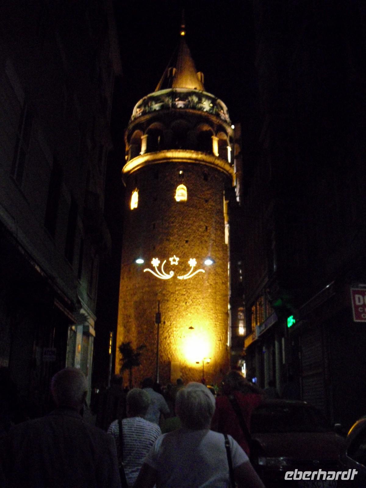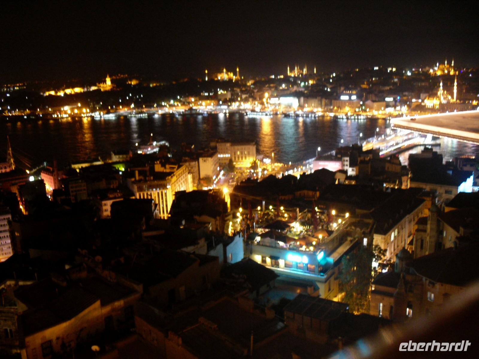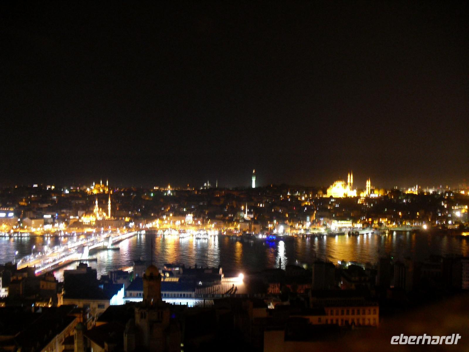 Nach kurzer Regeneration im Hotel ging es zum Galata-Turm. Istanbul bei Nacht und von oben hieß es für uns zu bestaunen. Ich weiß nicht wie oft ich jetzt schon auf dem Turm die Atmosphäre der Stadt genossen habe. Aber ich weiß, dass ich es jedes Mal aufs Neue unglaublich schön finde, wenn jede einzelne Moschee beleuchtet wird. Die Silhouette der Stadt lässt sich genau erkennen und identifizieren um sagen zu können, welche Moschee man eigentlich gerade vorm dem Kameraobjektiv hat. Doch das besondere und beeindruckenste für mich ist die Verbindung zwischen Asien und Europa. die Bosporus-(Europa-)brücke erstrahlt in tollen Farben und hat ein Wechselspiel der Lichter. Nach dem Essen gab es noch ein imposantes Programm mit Bauchtänzern und Tänzern, welche die verschiedensten Gebiete Anatoliens mit Tänzen auf die Bühne brachten.