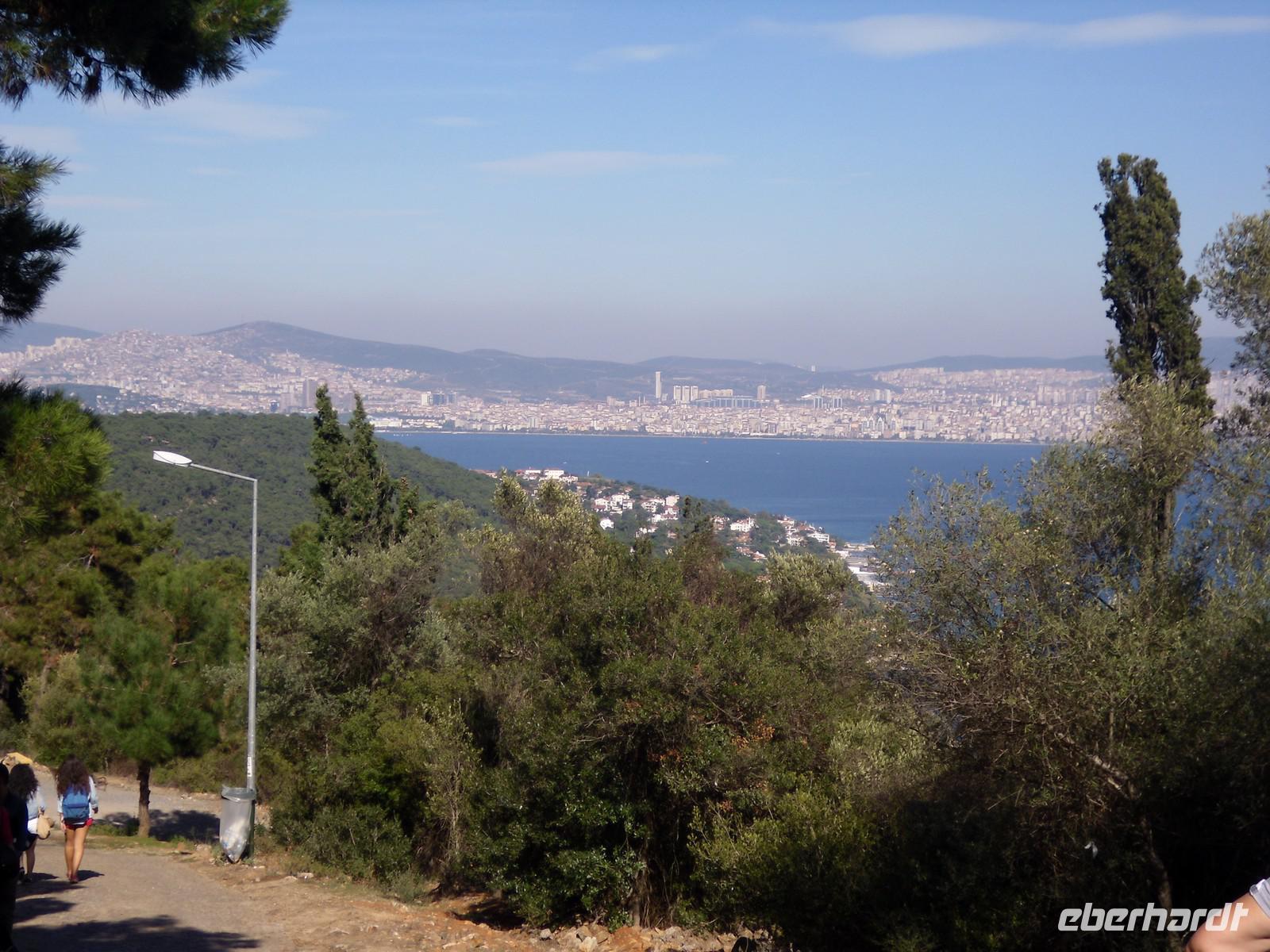 „Man muss viele Frösche küssen, bevor man einen Prinzen findet." Nein, Frösche haben wir heute nicht geküsst und auch keinen Prinzen gefunden. Aber wir begaben uns auf die Prinzeninseln, welche sich im Marmarameer befinden und zu Istanbul zählen. Doch bevor uns auf die Spuren der Prinzen begaben haben wir mit dem Bus Europa verlassen und begrüßten Asien. Entlang der Baghdad Straße, welche das Gegenstück zur Istiklal Straße auf der europäischen Seite der Stadt ist, fuhren wir mit dem Bus und schauten uns die Topläden zwischen Cafés und Restaurants an. Orhan erzählte uns über das Mikrofon mit welchen Beträgen an Miete in diesem Viertel rechnen kann. Nicht immer trauten wir unseren Ohren, weil hinter der Zahl doch manchmal viele Nullen folgten. Aber wir waren eben im High Society Viertel. Weiter ging unser Weg mit dem Schiff nach Büyükada, welche die größte der 9 Inseln ist. Zu ihrem Namen kamen die Inseln übrigens um Streitigkeiten um den Thron zu vermeiden. Viele Herrscher stellten ihre jüngeren Brüder unter Arrest, aus Angst ermordet zu werden, damit sie Thronfolger werden. Ab Ahmed I. wurden potentielle Nachfolger aber in den "Prinzenkäfig", ein Teil des Serails untergebracht, später wurden schließlich auf die Prinzeninseln verbannt. Als wir in Büyükada ankamen, glaubten wir erst gar nicht, dass wir hier in einem Teil der Metropole am Bosporus waren. Im Vergleich zur Stadt, welche sich über Europa und Asien streckt, herrschte hier auf der autofreien Insel eine himmlische Ruhe. Kein Wunder, dass viele Familien im Sommer hierher kamen um sich zu erholen von dem Trubel der Stadt. Mit Pferdekutschen setzten wir unseren Weg fort, um die Insel genauer zu erkunden. Rechts und links des Weges sahen wir bereits wunderschöne Appartements, Häuser und Hotels. Mit einer etwas anspruchsvolleren Wanderung erreichten wir in 203 Meter, den höchsten Punkt der Insel. Hier befindet sich die griechisch-orthodoxe Kirche, genannt St. George. Auf unserem Fußmarsch nach oben konnten wir nicht nur die alte Klosteranlage besichtigen, sondern hatten auch einen fabelhaften Blick über Istanbul. Jetzt endlich konnten wir von 120 Kilometer verstehen. Welche Zahl das ist? Die Zahl verrät die Ausdehnung Istanbul in ihrer Ost-West-Richtung. Eine unglaubliche Zahl, die man ohne selbst gesehen zu haben kaum glauben mag. Zum zeitigen Abend erreichten wir wieder den europäischen Teil mit dem Schiff. Durch den dichten Wochenendverkehr erreichten wir schließlich wieder unser Hotel.