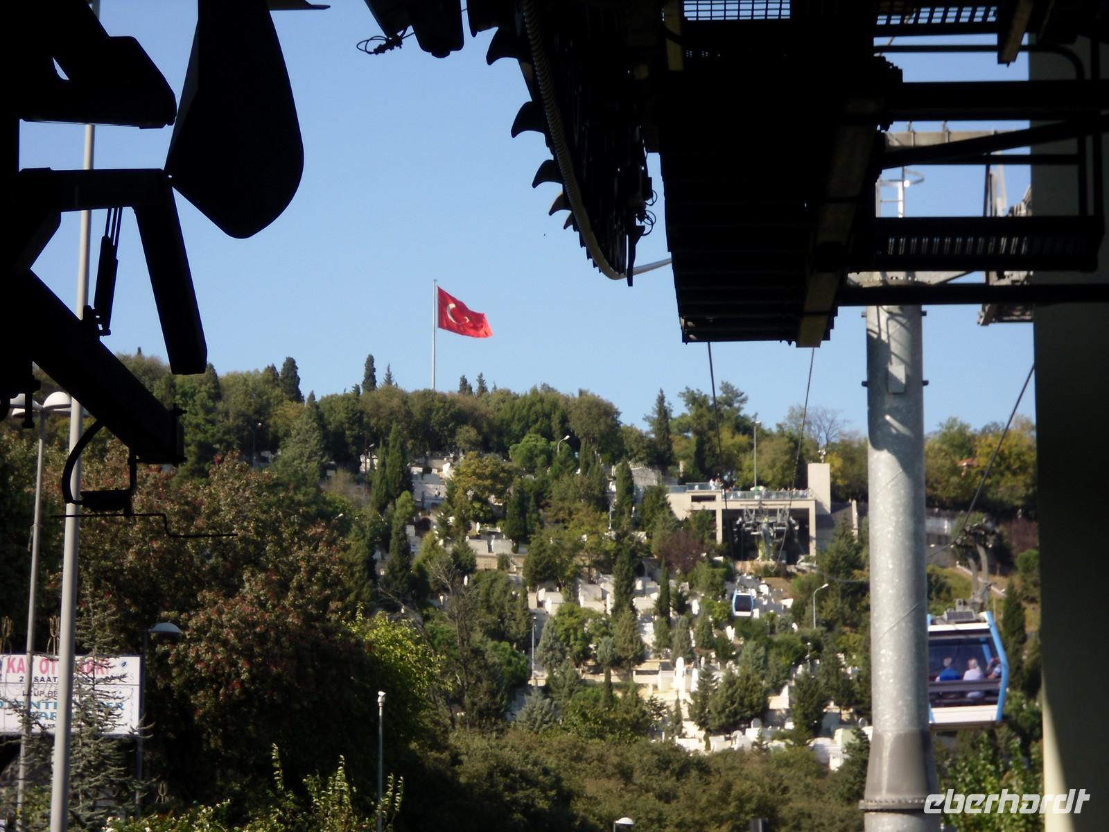 Den Nachmittag ließen wir bei einer leckeren Tasse Tee oder Türk Kahvesi ausklingen. Mit der einzigen Seilbahn Istanbul erreichten wir das Café „Pierre Loti". Das kleine und gemütliche Café ein wenig oberhalb der Stadt bietet seinen Besuchern einen traumhaften Blick auf das Ende des Goldenen Horns und die Stadt. Den Namen bekam es vom bekannten französischen Schriftsteller Pierre Loti. Als der Marineoffizier Loti das erste Mal in die Türkei kommt, verliebt er sich in eine osmanische Frau. Er trifft sich mit ihr und hält seine Erinnerungen in einem Tagebuch fest. Nachdem er Istanbul verlassen hat, schreibt er seine Erlebnisse in einem gleichnamigen Buch nieder.