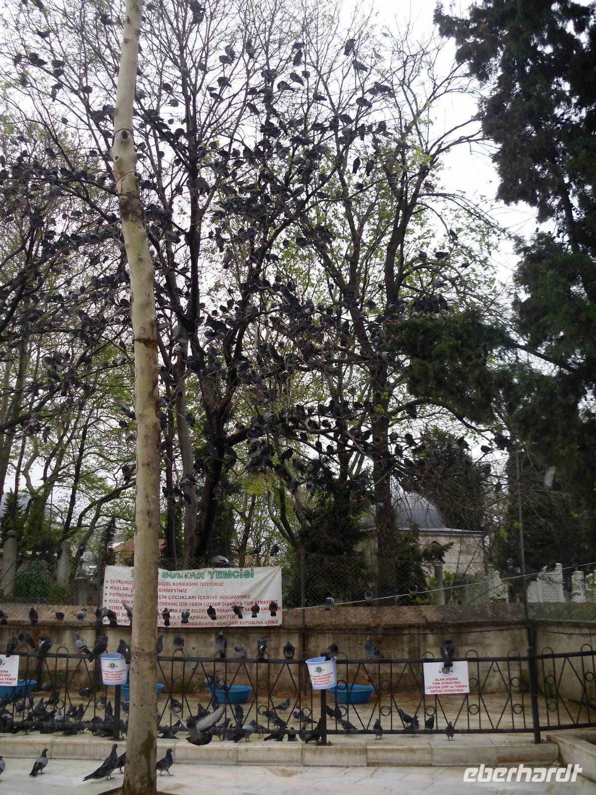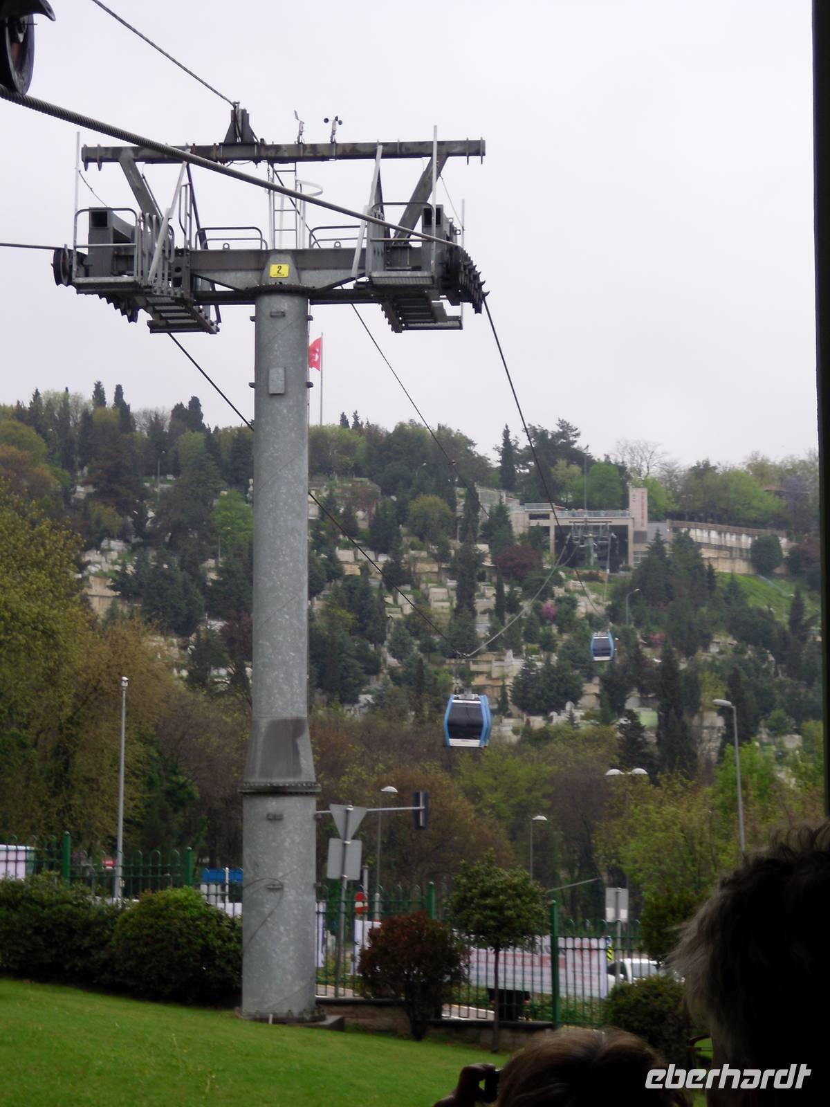 Unseren Tag setzten wir mit einer kleinen Busfahrt bis zur einzigen Seilbahn in Istanbul fort. Mit der Seilbahn gelangen wir zum Café „Pierre Loti", welches nach dem französischen Schriftsteller benannt. Von dem Kaffeehaus hatten wir einen beeindruckenden Blick über Istanbul und wir konnten uns schon ansehen was wir nach dem Spaziergang über den moslemischen Friedhof sahen. Die Eyüp Moschee war nämlich ein weiteres Highlight während unserer Reise. Die Moschee erreichten wir zur Mittagszeit als der Muezzin zum Mittagsgebet aufrief. Dennoch konnten wir die Moschee besichtigen und konnten uns einmal ansehen wie es ist, wenn die Menschen zum Beten kommen.