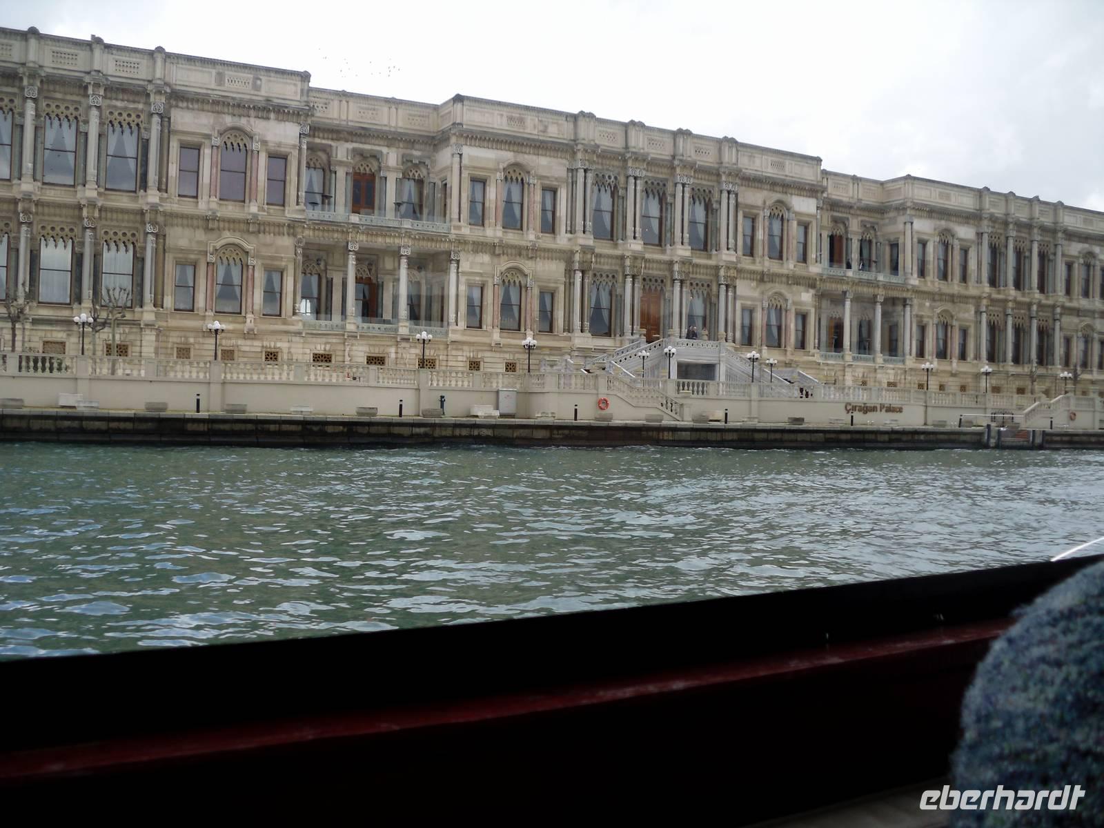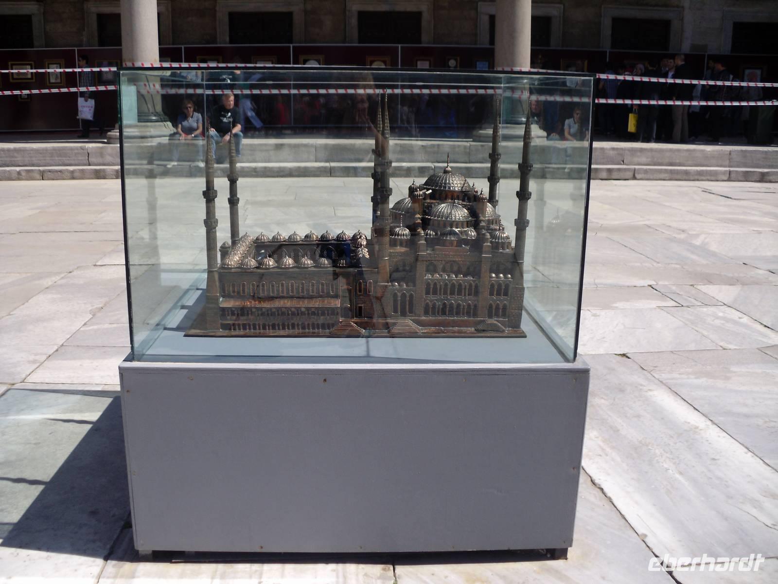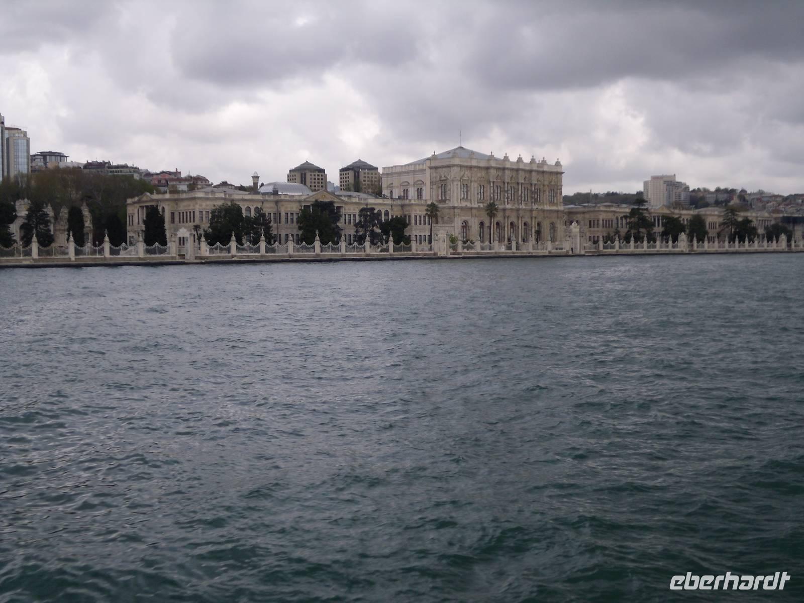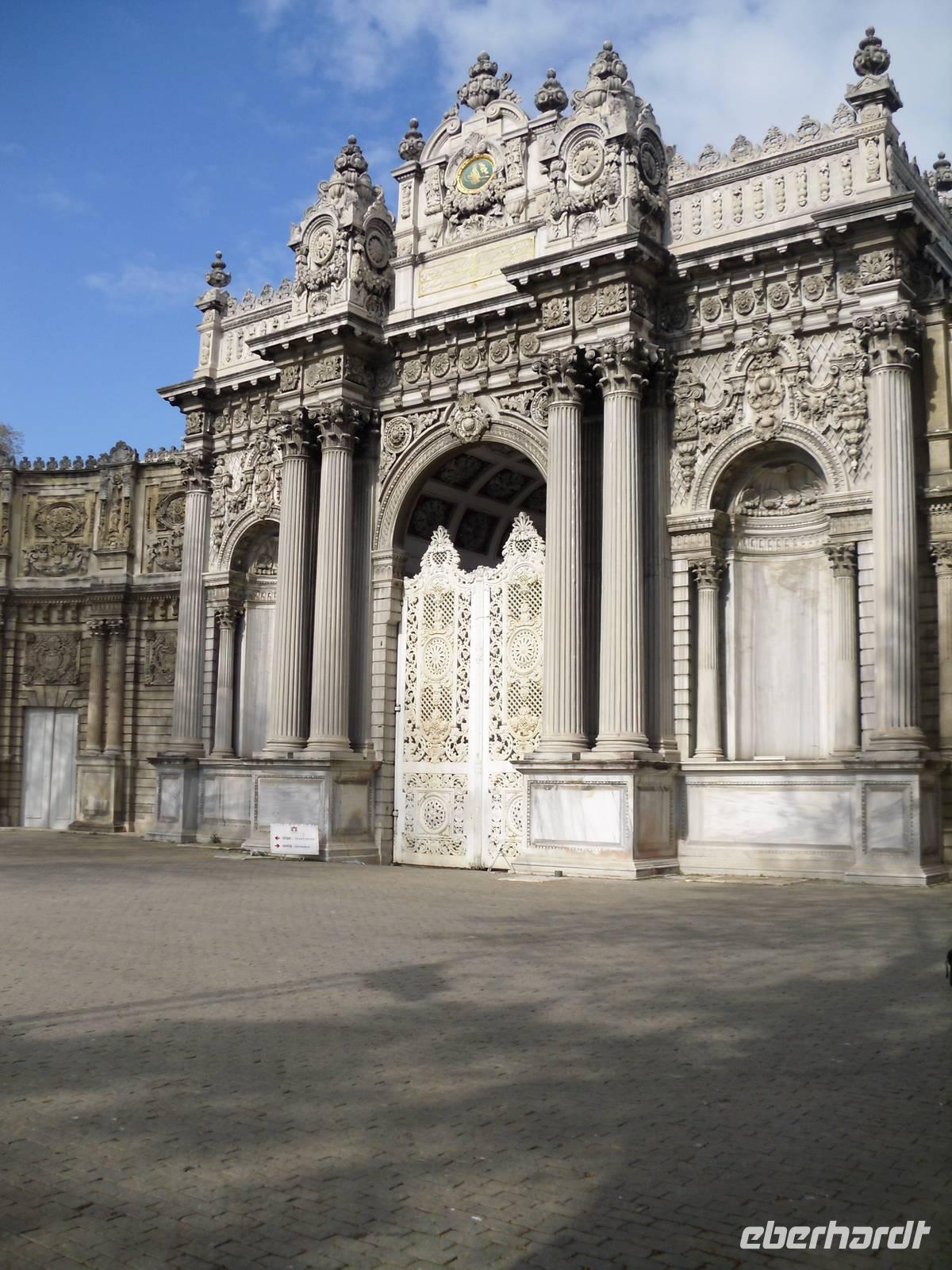 Den Tag starteten wir mit dem Topkapi-Palast, was wörtlich übersetzt Kanonenpalast bedeutet. Erbaut wurde der Palast vom Mehmed II. nach der Eroberung von dem damaligen Konstantinopel im Jahre 1432, durch Renovierungen und Erweiterungen bis zum 18.Jahrhundert entstand das heutige Aussehen dieser Anlage. Der Bau besitzt vier Höfe, welche alle ihre ganz eigene Bedeutung haben und auch nur für einzelne Personen zugänglich waren. Der erste Hof war für die Soldaten vorgesehen, der zweite für Staats- und Verwaltungsräume. Der dritte Hof durfte nur mit einer ausdrücklichen Erlaubnis durch das Tor der Glückseligkeit betreten werden. Hier befand sich der Thronsaal in dem Empfänge höchster Staatsbediensteter und ausländischer Gäste abgehalten worden sind. Im vierten und letzten Hof befanden sich Park und Gartenanlagen, von denen man heute einen herrlichen Blick über den Bosporus bekommt.