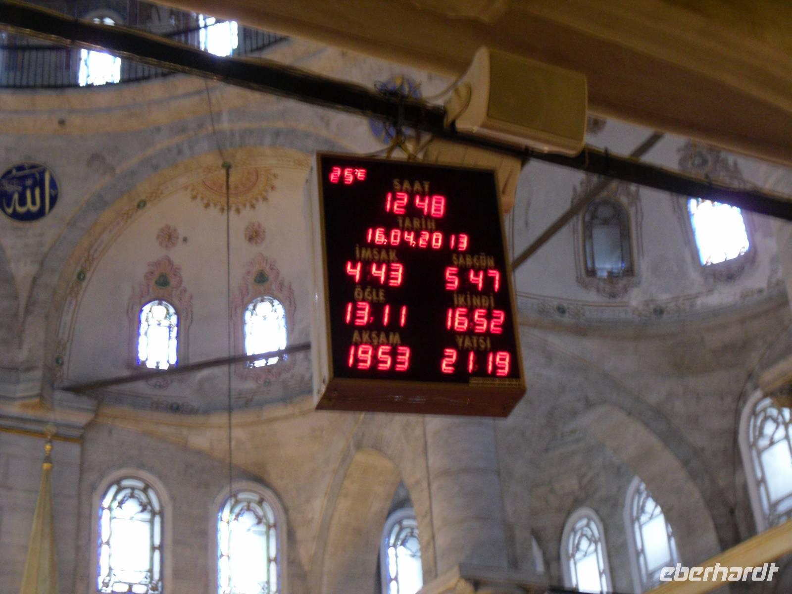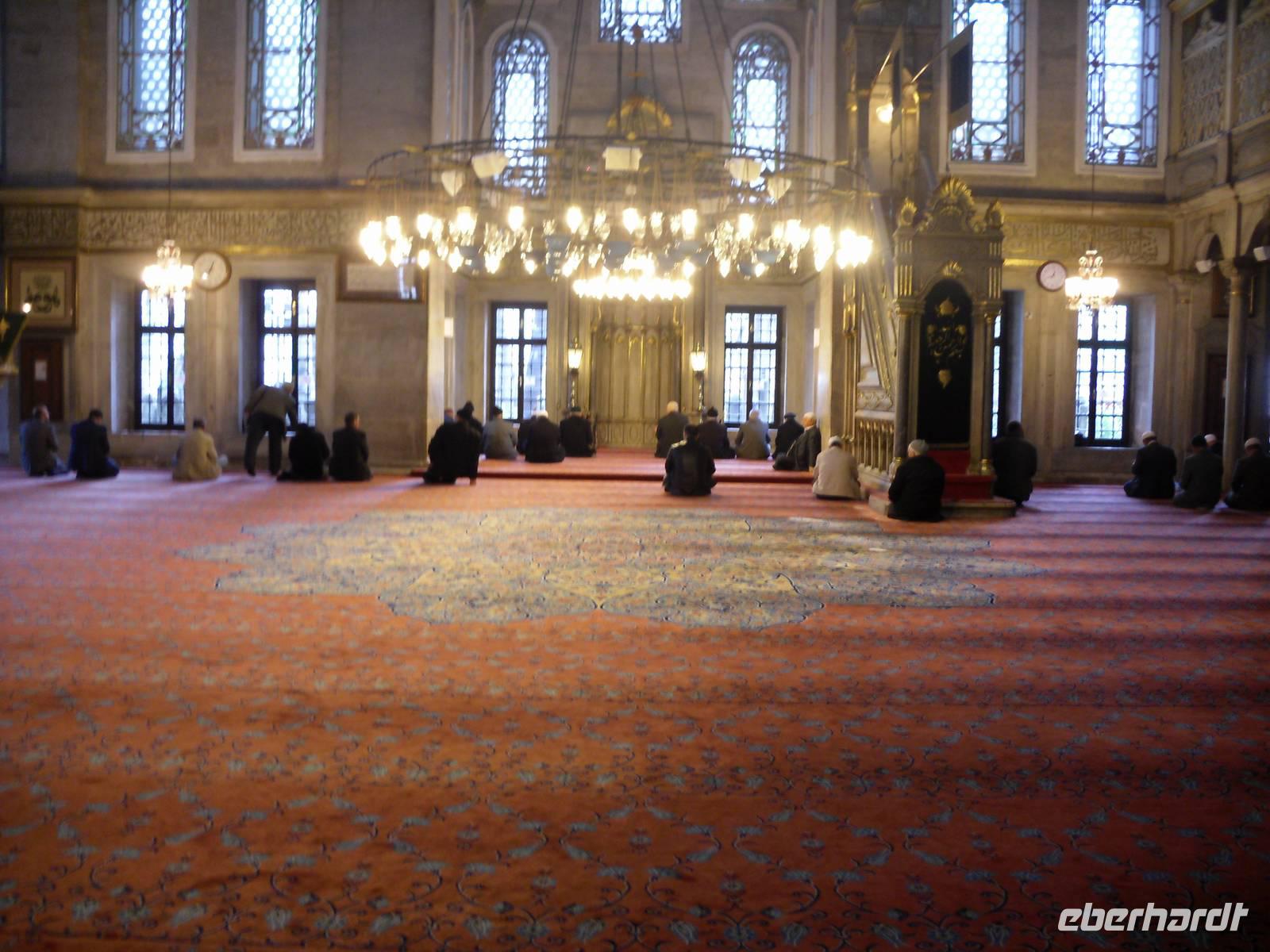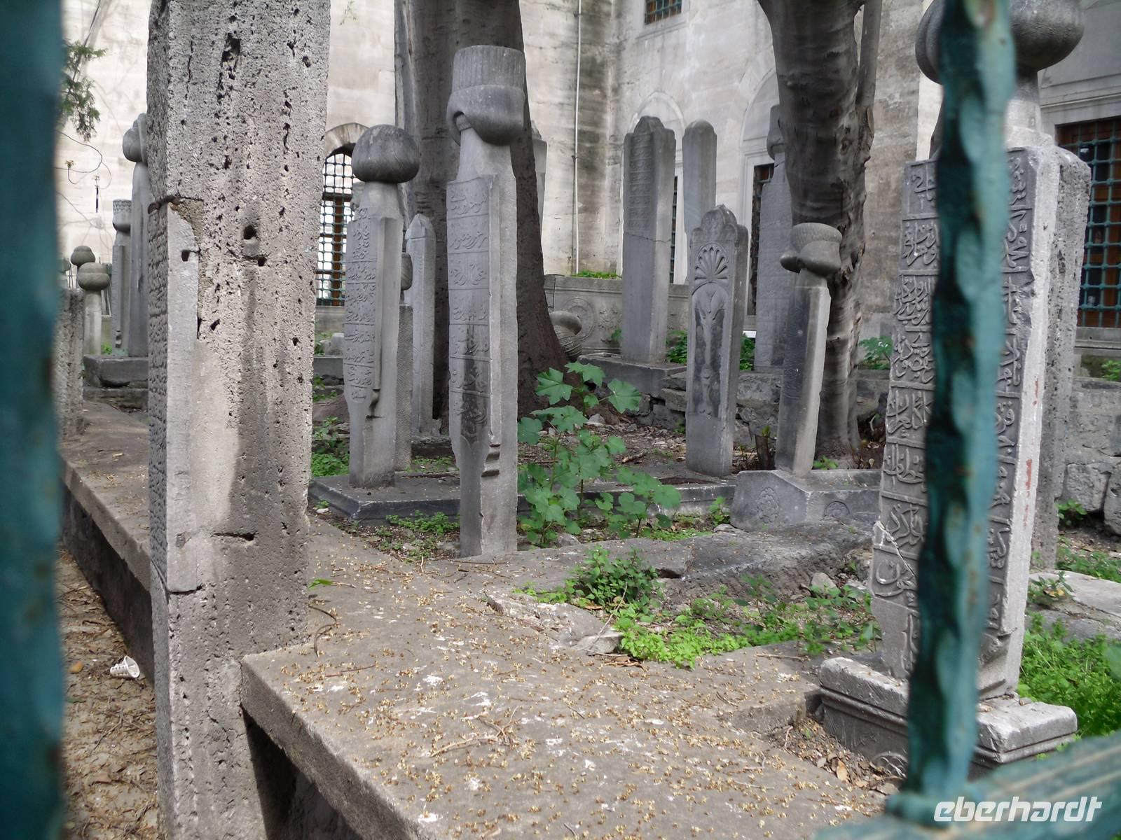 Auf Wunsch von mir, begaben sich meine Gäste und ich uns zu einer der mächtigsten Moscheen Istanbuls. Die Süleymaniye-Moschee steht auf dem dritten Hügel der Stadt und besteht nicht wie alle anderen Moscheen aus einem Reinigungsbrunnen, einem Vorhof und dem Gebetsraum, sondern umfasst noch mehr Bauten. Dazu gehören zum Beispiel der Friedhof, eine Armenküche und zahlreiche Mausoleum, unter anderem das von Süleymans Frau und Tochter.