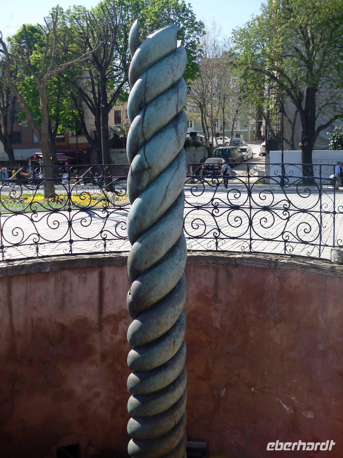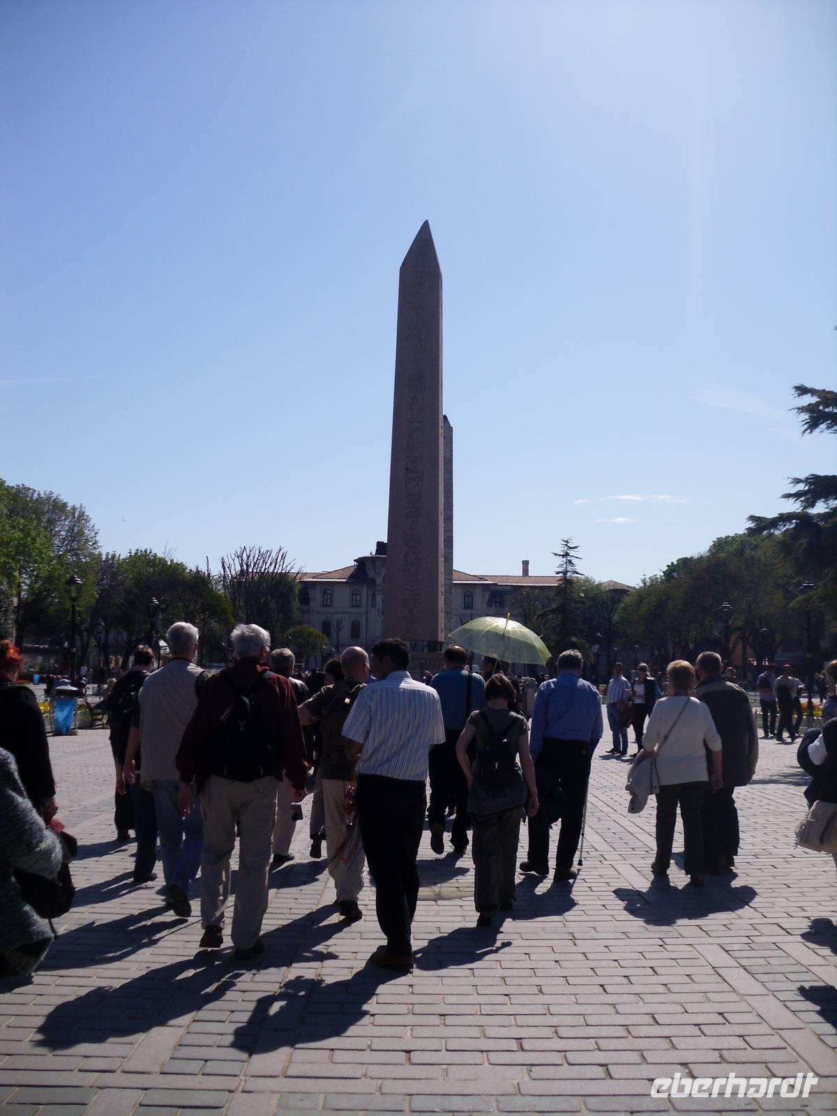 Am Hippodrom, welches im antiken Konstantinopel als Pferderennbahn galt, sollte unser Tagesprogramm enden. Es war das sportliche und soziale Zentrum der einstigen Hauptstadt. Auf dem Hippodrom befindet sich heute ein achteckiger, überdachter Brunnen, welcher Deutscher Brunnen oder auch Kaiser-Wilhelm-Brunnen genannt wird. Doch nicht nur Kaiser Wilhelm besuchte die Stadt auch Theodosius I. statte Istanbul einen Besuch ab und ließ einen Obelisken aus Ägypten in der Mitte der Rennbahn aufrichten. Ein weiteres Highlight ist die bronzene Schlangensäule. Die Säule soll eigentlich mit ihren 3 Schlangen an die Schlacht von Plataiai erinnern, doch leider sind die Schlangenköpfe heute nicht mehr erkennbar.