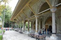 Unser erster Halt war der Topkapi- Palast. Serdar erzählte uns viel über die Geschichte, die bis ins 15. Jahrhundert zurückreicht. Er diente über 400 Jahre lang als Verwaltungssitz und Residenz der Osmanischen Sultane und wurde 1924 als Museum öffentlich zugänglich gemacht. Wir hatten Glück - heute spielte sogar Musik in einem der vier Höfe. Einen unglaublichen Blick über den Bosporus bis zur Asiatischen Seite hatten wir auch - leider war das Wetter ein wenig trüb.