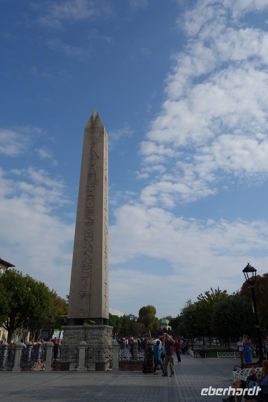 Heute beginnt der erste Tag des Opferfestes. Ein Fest, wo Gläubige je nach Wohlstand Schafe, Rinder oder Kamele opfern. Das machte sich damit bemerkbar, dass in der Stadt viel mehr los war. Vor den meisten Sehenswürdigkeiten standen endlose Schlangen, an denen wir dank Serdar aber oft vorbei gehen konnten. Wir sollten unsere Sightseeing-Tour auf dem Hippodrom beginnen - einem Platz der geschmückt wird von einer Griechischen Schlangensäule und zwei riesigen Obelisken. Früher wurden hier Pferderennen und Versammlungen abgehalten, heute erinnern daran nur noch die äußeren Umrisse des Hippodroms.