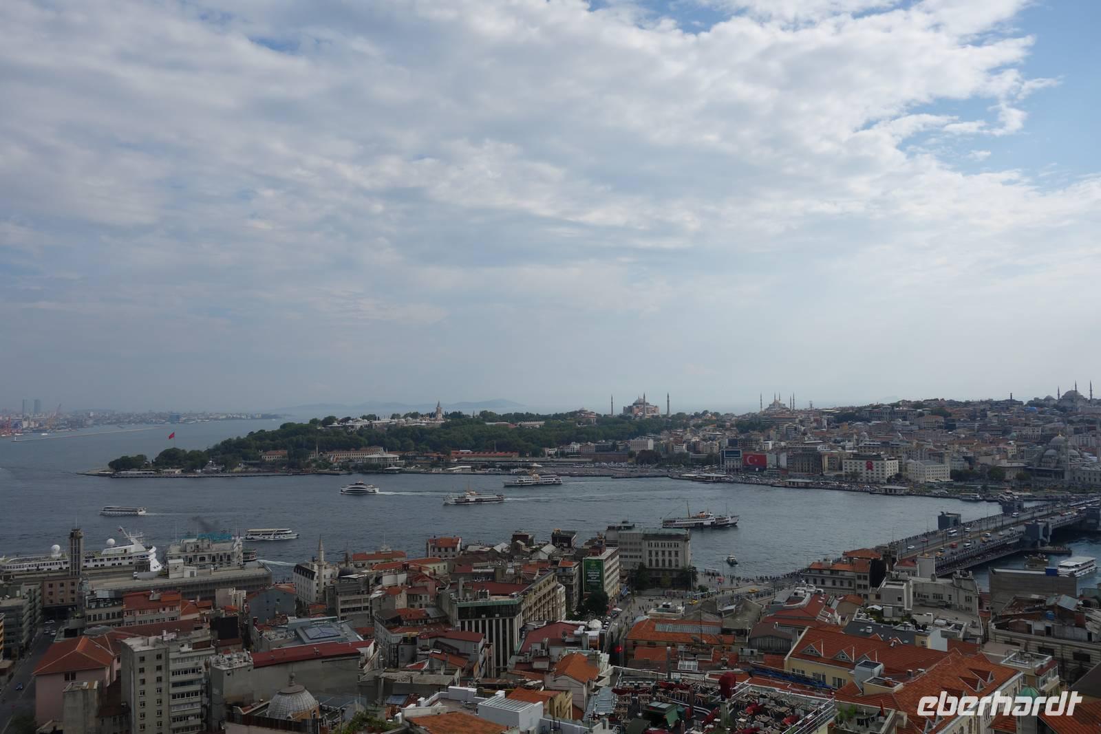 Da der Tag noch so jung war, entschieden wir uns, noch fix am Galataturm vorbei zu schauen. Das Warten vor dem Eingang sollte sich lohnen: von hier oben aus, hatten wir einen perfekten Rundumblick über das goldene Horn, die Europäische und die Asiatische Seite Istanbuls, über den Bosporus und über die unendlich vielen, weißen Häuser und ein paar, der vielen Moscheen.
