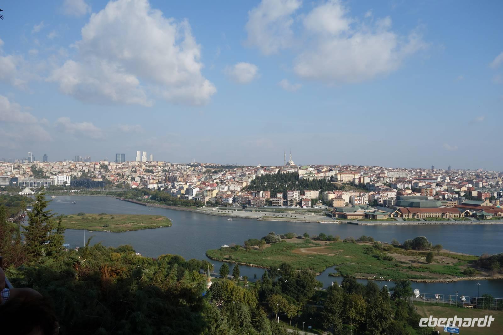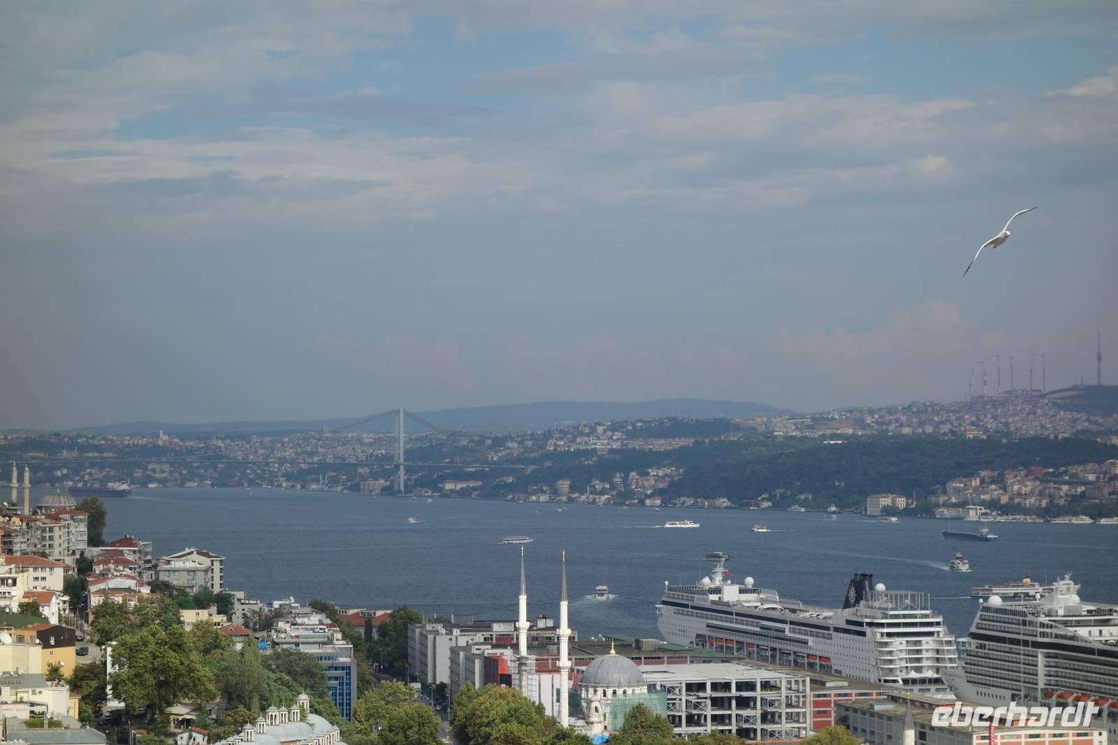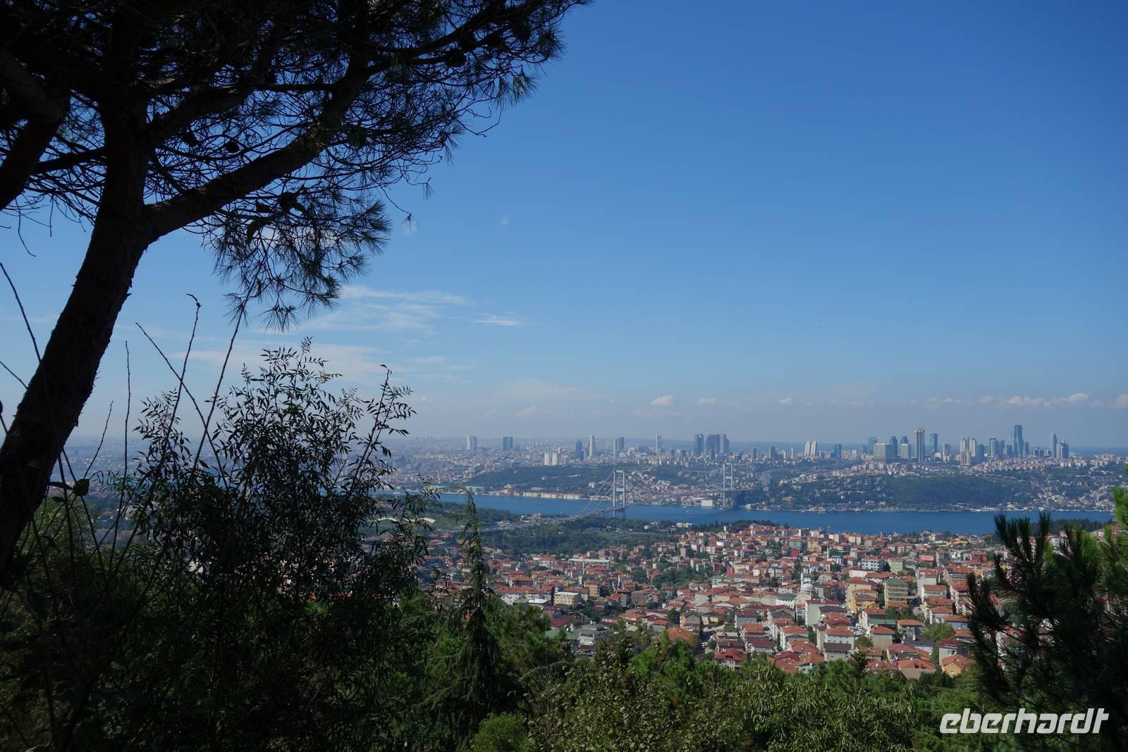Der nächste Höhepunkt des Tages war auch gleichzeitig der höchste Punkt Istanbuls. 204 m hoch ragt der Tannenhügel über die Stadt - der Ausblick: unbeschreiblich. Wir konnten die Mündung des Bosporus sehen, Europa, die riesigen Kreuzfahrtschiffe und die wunderschöne Bosporus Brücke, deren Überfahrt sich später als Herausforderung herausstellen sollte. Aber ich greife vor!