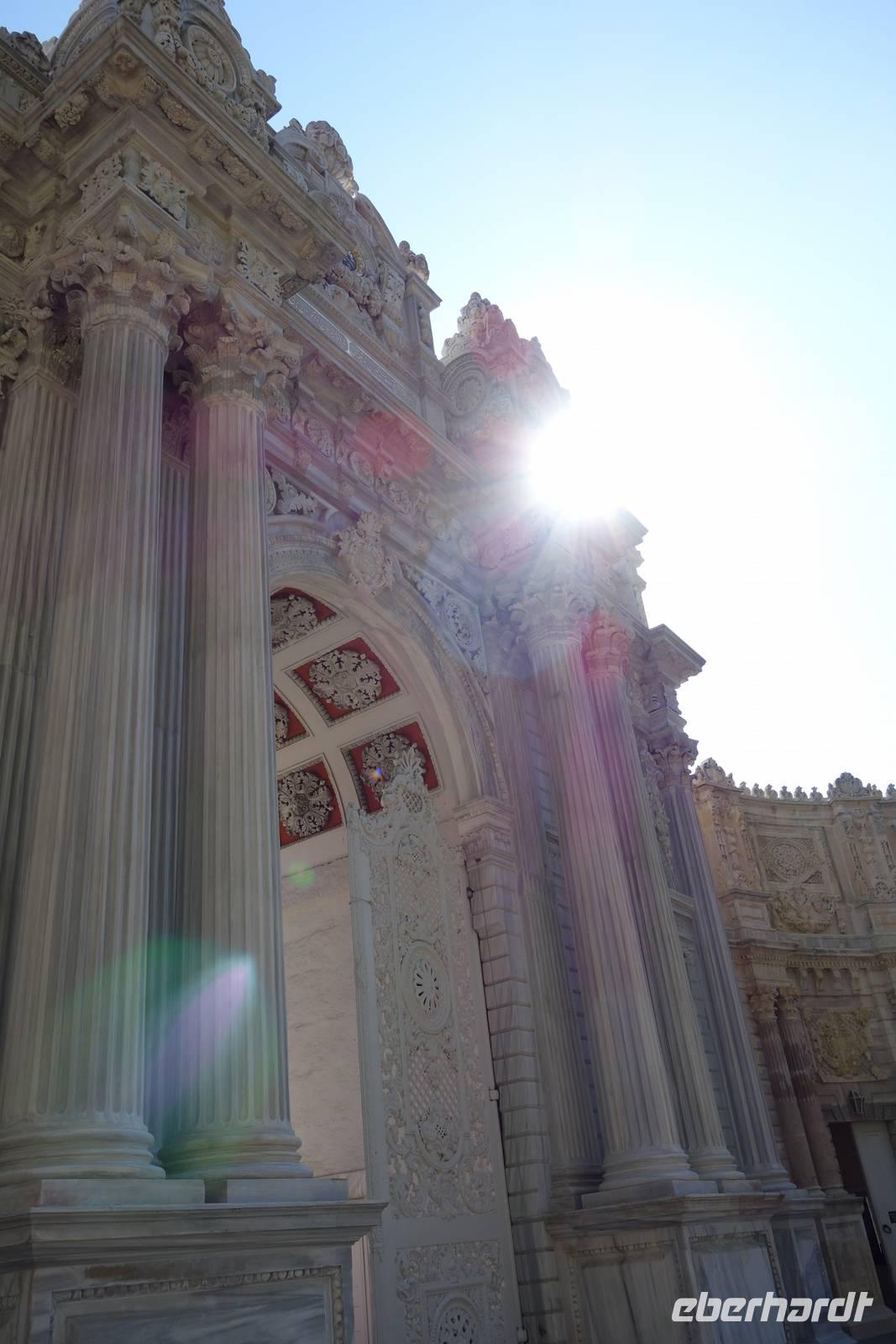 Die Hälfte der Reise ist um- demnach steht heute das Bergfest an! Wir beginnen den Tag ganz Royal- im Dolmabahçe Palast. Die ehemalige Sultansresidenz am Bosporus wurde mit 14 Tonnen Gold und 40 Tonnen Silber verziert. Außerdem mit Marmor aus Ägypten und Möbeln aus Frankreich. Auch der Brunnen im Vorgarten ist ein Foto wert.