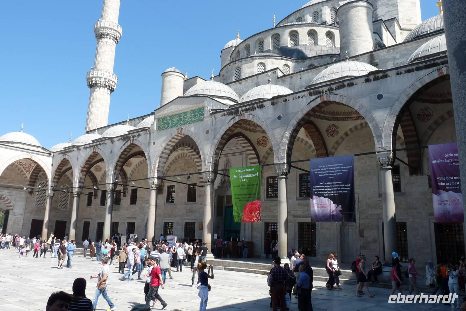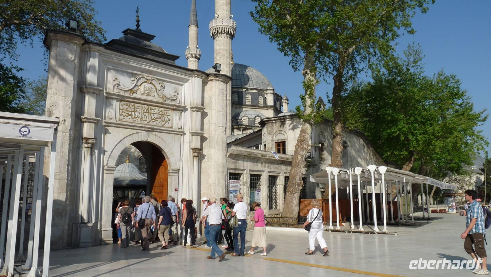 In der Eyüp-Moschee erfahren wir mehr über den gleichnamigen Bannerträger des Propheten, dessen Grab sich neben der Moschee befindet und eine beliebte islamische Pilgerstätte darstellt.