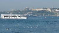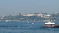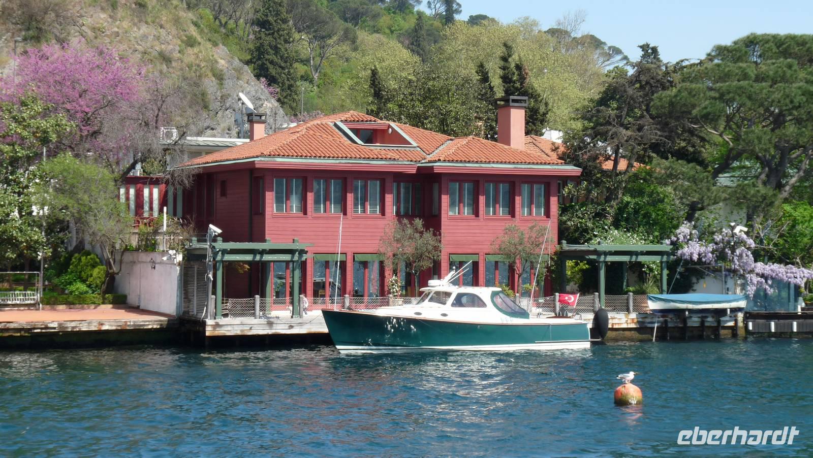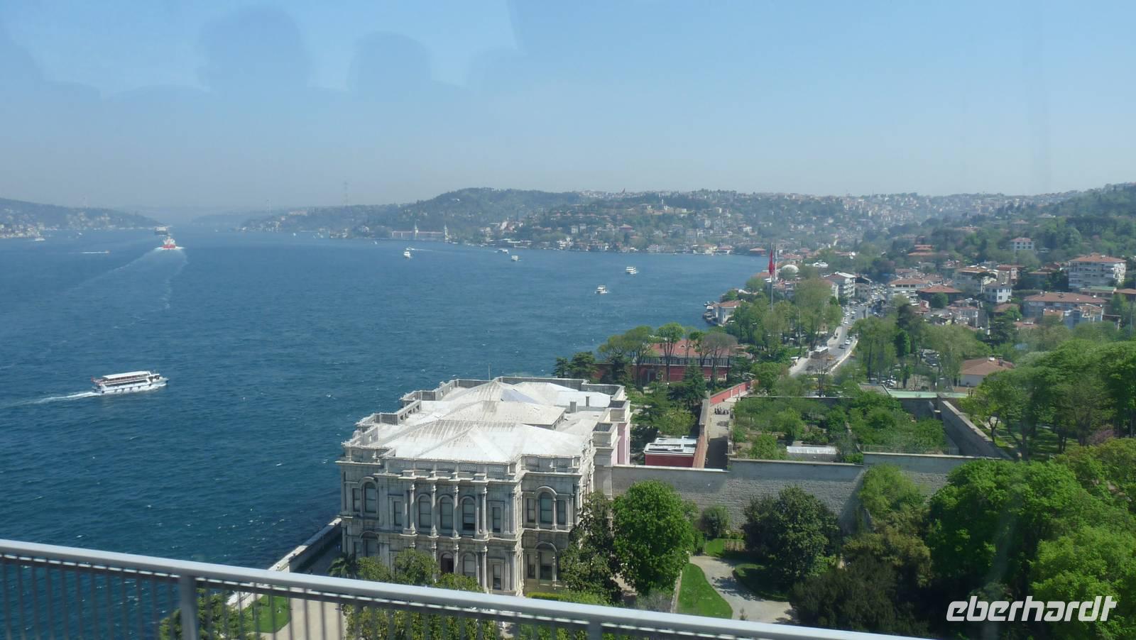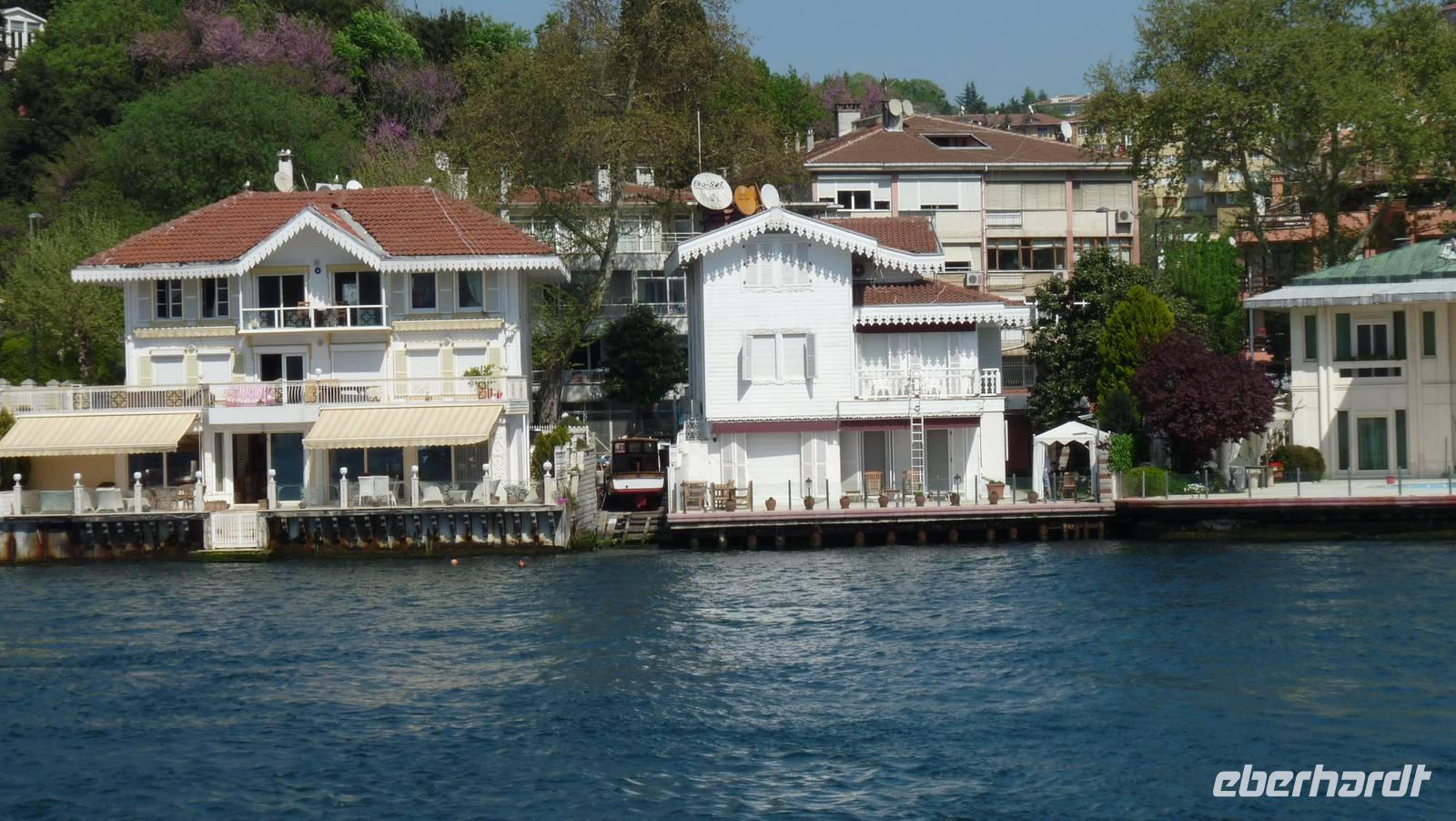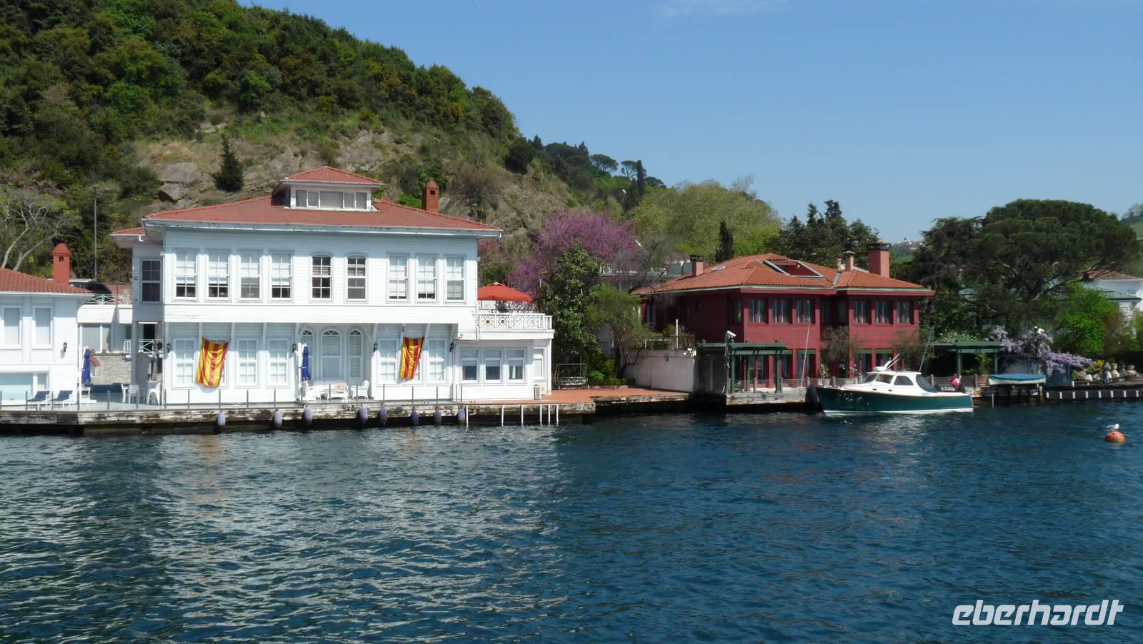 Entlang des Bosporusufers fahren wir vorbei an historischen Holzhäusern und millionenschweren Villen der Stadtteile Skutari und Kalchedon. Am Mädchenturm (auch Leanderturm oder Kiz Kulezi) haben wir einen faszinierenden Blick auf den europäischen Teil beiderseits des Goldenen Horns. Am heutigen Sonntag genießen auch viele Istanbuler den Sonnenschein und die Atmosphäre am Bosporus.