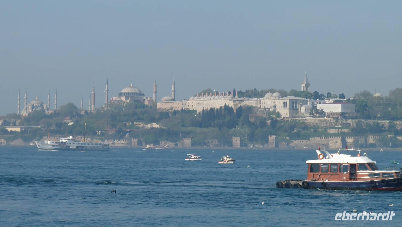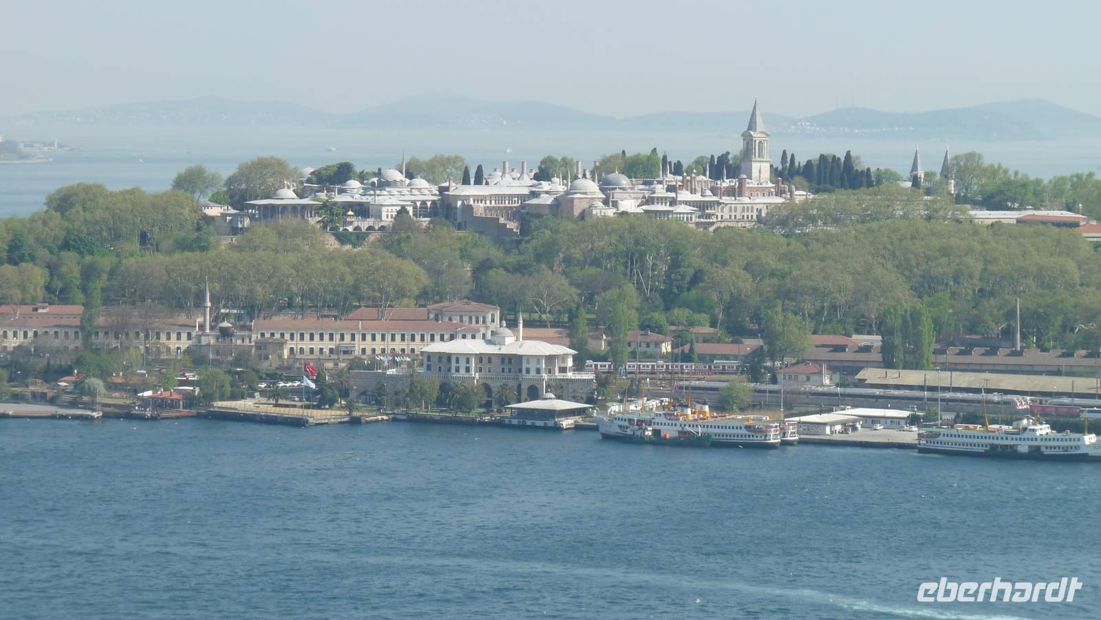 In den Außenanlagen sorgen tausende von Tulpen für Begeisterung. Darüber hinaus haben mir besonders gefallen: die Schatzkammer mit dem berühmten Topkapidolch und dem 86-karätigen Löffler-Diamanten, die Reliquien-Sammlung der Propheten, der Lieblingsspeiseplatz des Sultans mit dem goldenen Baldachin sowie der phantastische Ausblick auf den Bosporus und das Goldene Horn.