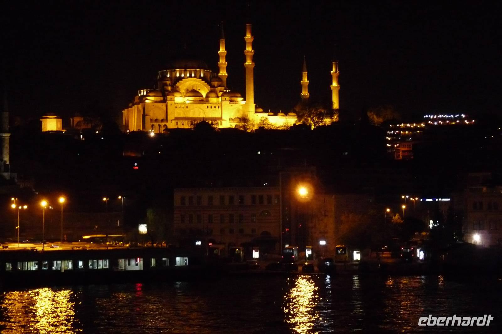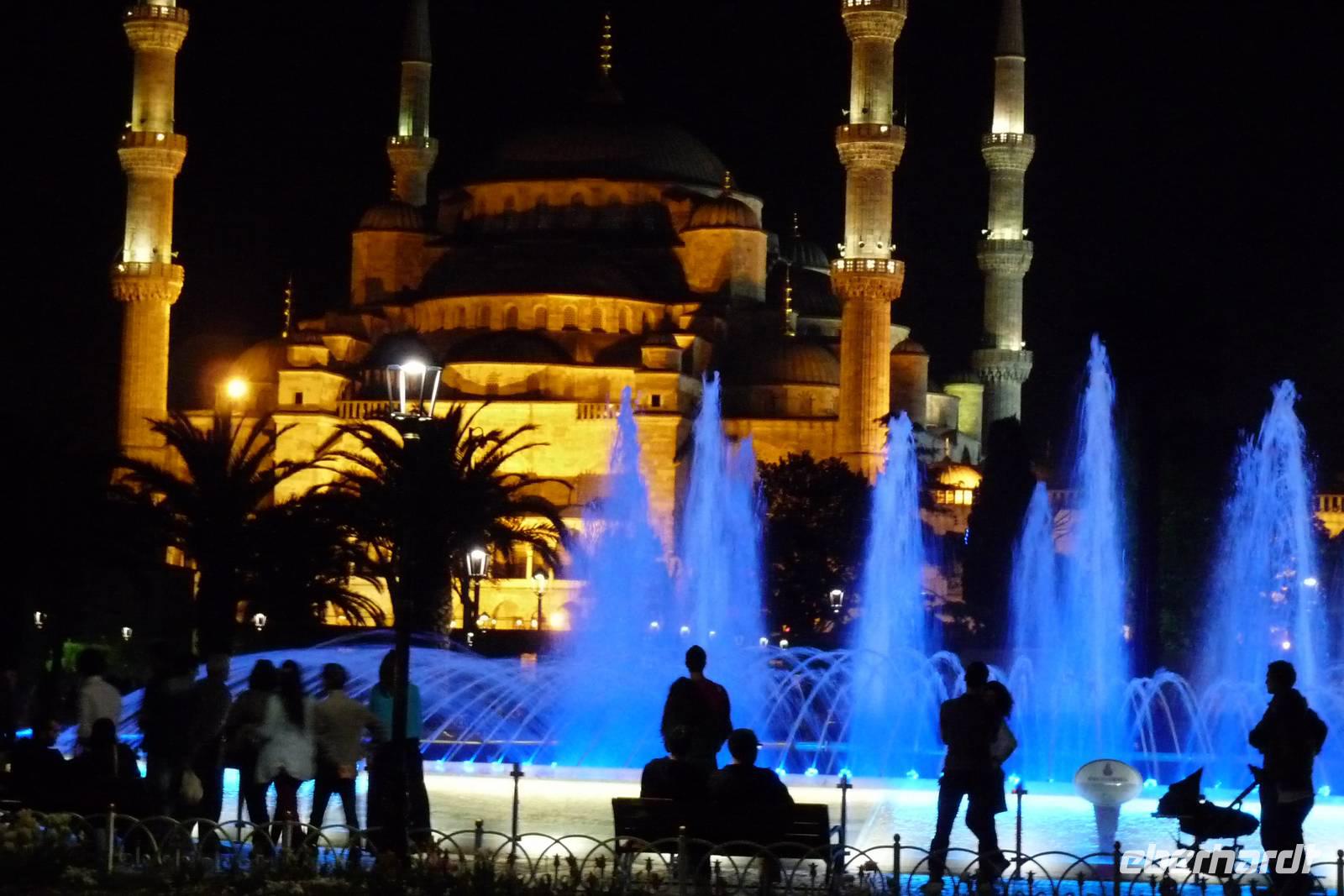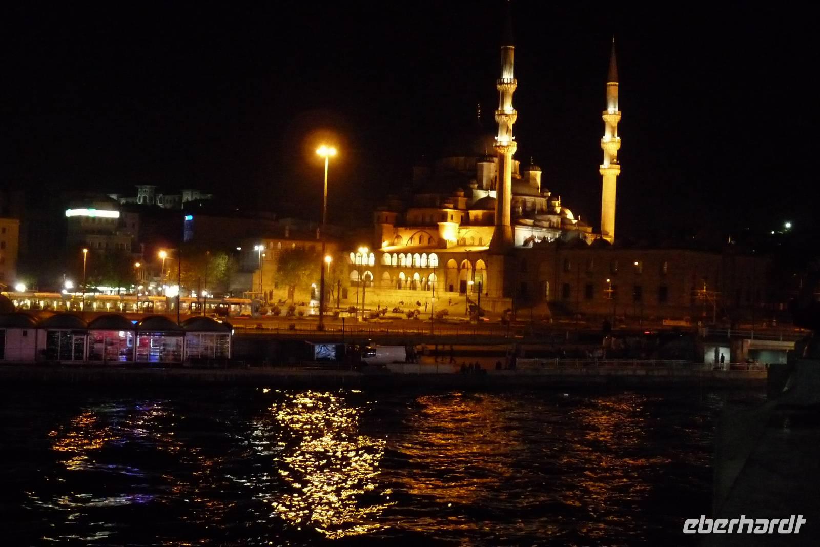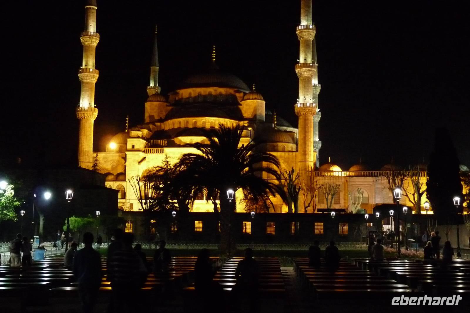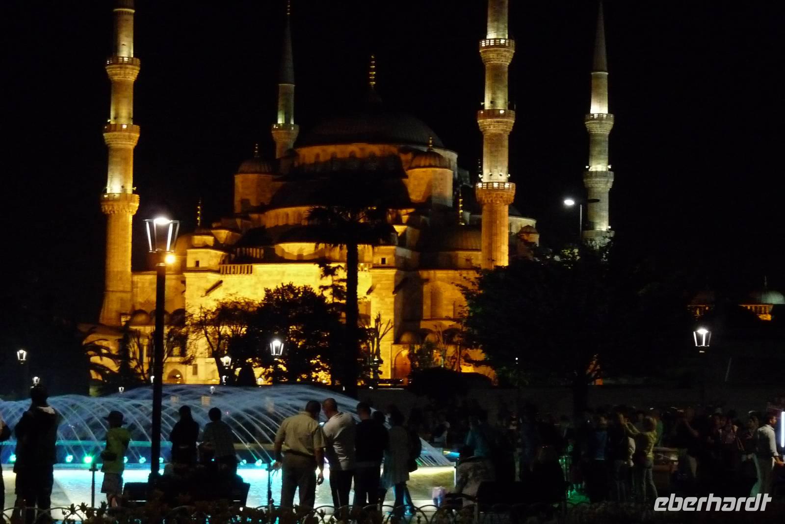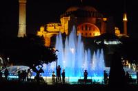 Und es geht noch weiter: zu später Stunde machen wir zuerst halt auf der Galatabrücke und anschließend zwischen Hagia Sophia und Blauer Moschee. Was für eine abendliche Kulisse: vom Springbrunnen mit seinen Farbspielen haben wir einen faszinierenden Blick auf die historischen Bauwerke.