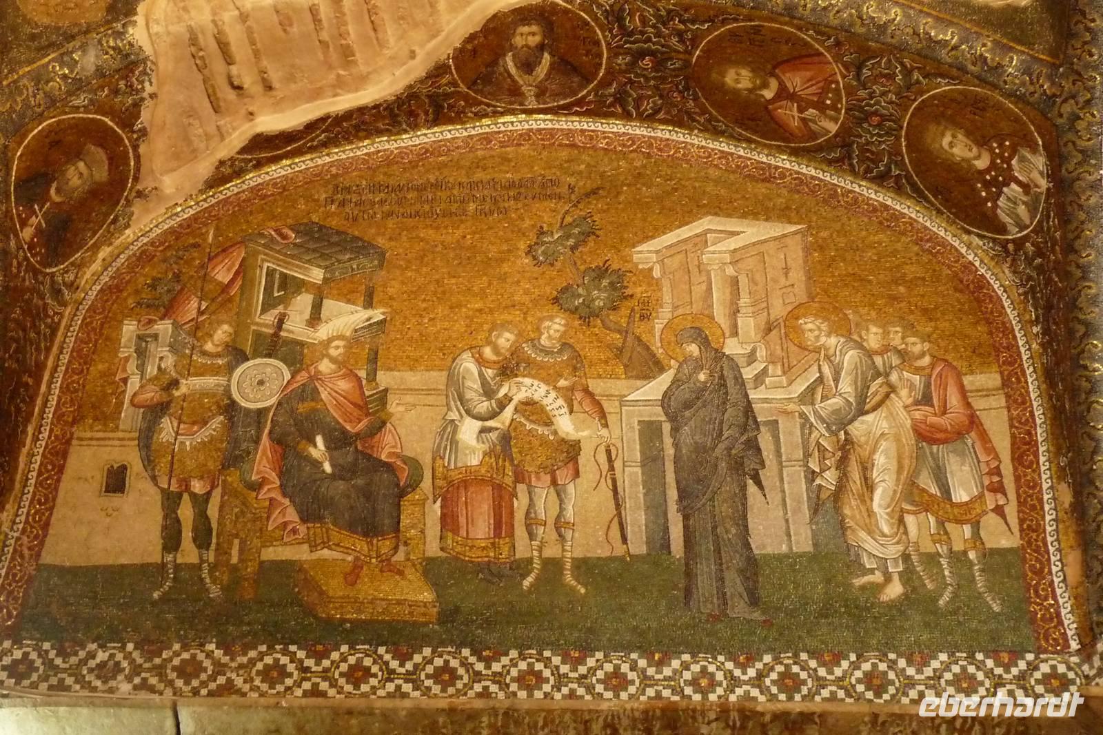 Am Morgen besuchen wir Kariye Camii, die Chora-Kirche. Einst Kirche, dann Moschee ist sie heute Museum. Von außen etwas unscheinbar wirkend, offenbart sie innen wahre Schätze: vielfarbige Mosaiken und Fresken aus dem 14. Jahrhundert, die zu den bedeutendsten und schönsten Sakralzyklien weltweit zählen.