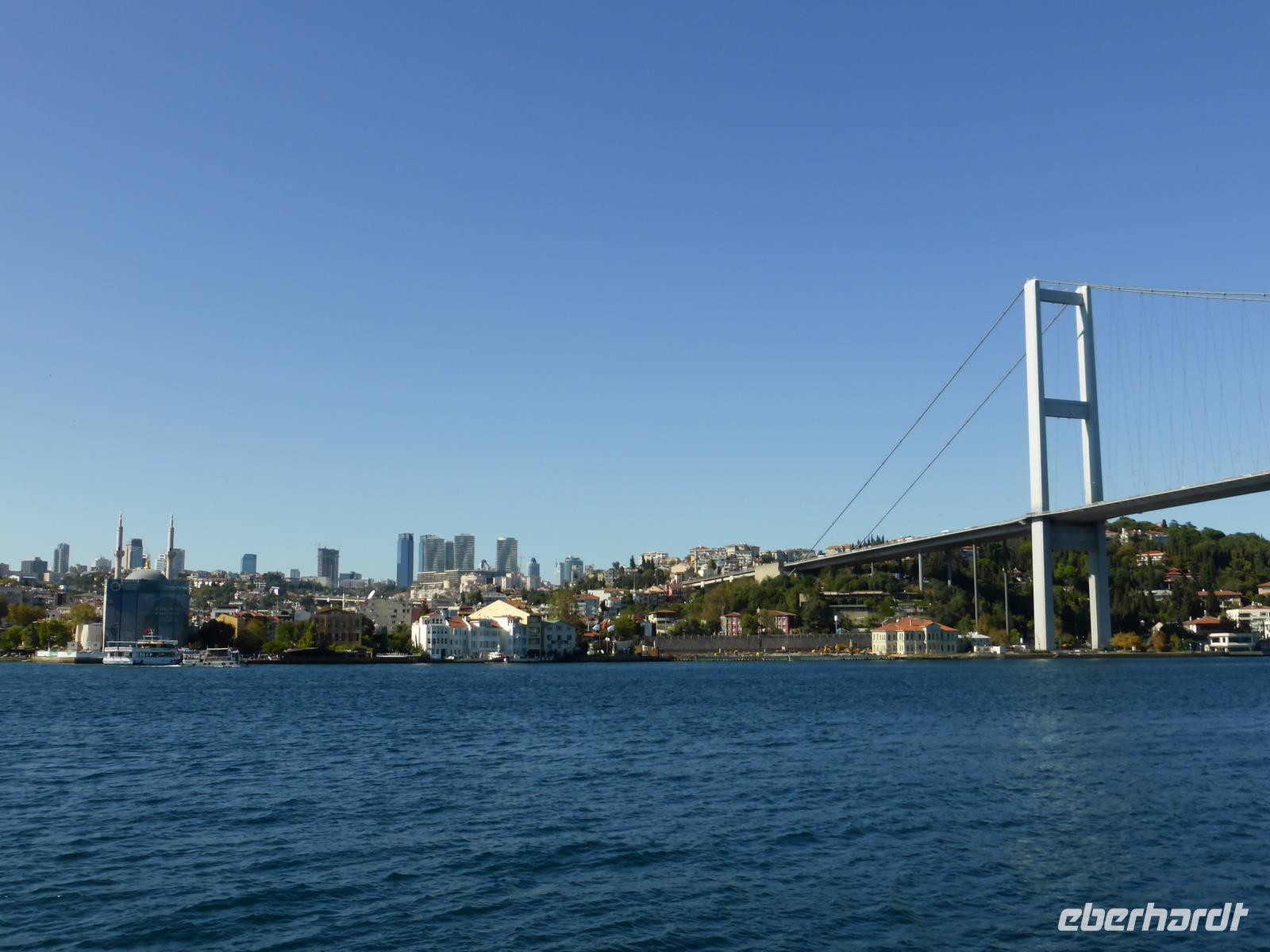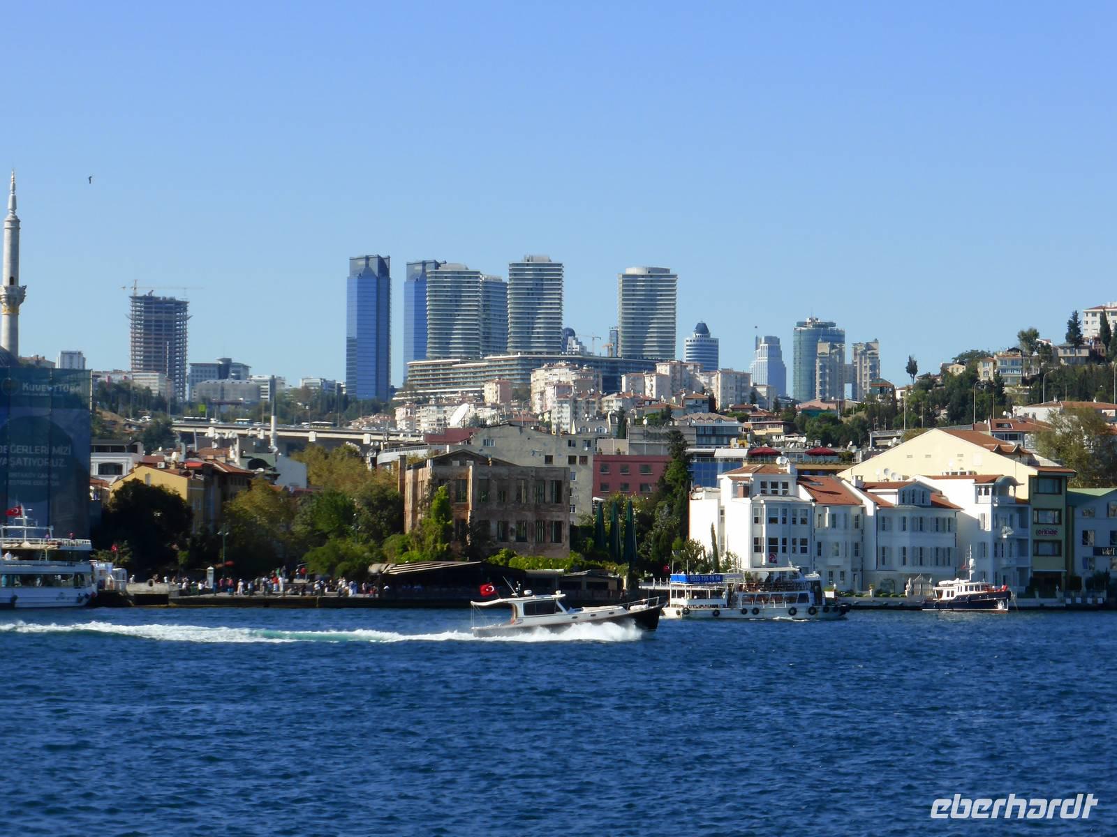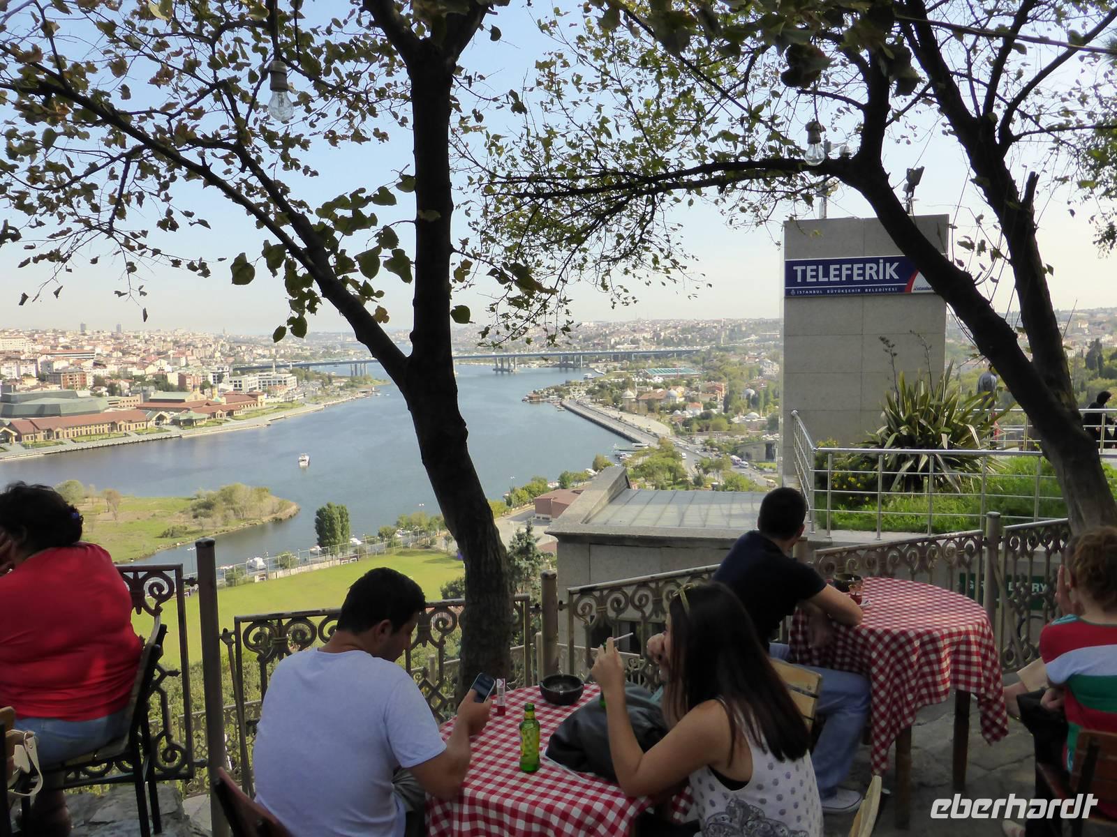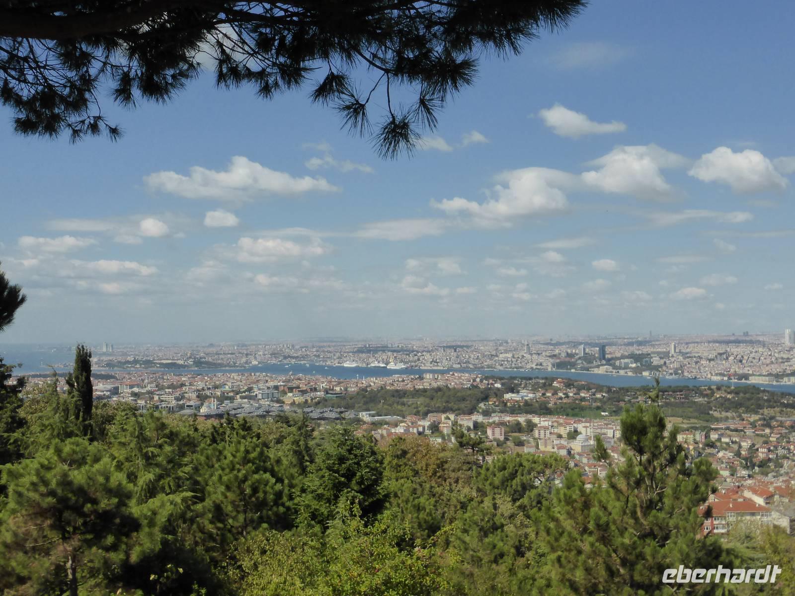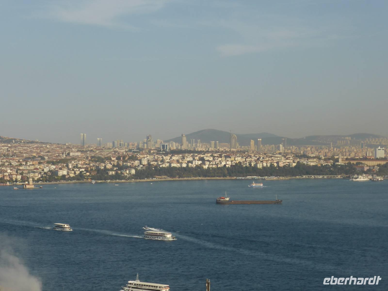Am Morgen fuhren wir über die Bogazici-Brücke (auf die andere Seite des Bosporus, in den asiatischen Stadtteil von Istanbul. Direkt am Flussufer hatten wir ein prächtiges Fotomotiv auf den Mädchenturm und die Altstadt. Der Mädchenturm liegt an der Einfahrt vom Marmarameer in den Bosporus. Hier wurden früher die Gebühren für die Ein- bzw. Ausfahrt in den Bosporus fällig. Im asiatischen Stadtteil von Istanbul leben heute ungefähr 40 % der Einwohner Istanbuls. Wir waren beeindruckt von der modernen Architektur und fuhren entlang der Bagdad-Straße zurück Richtung Fluss. Sie ist mit ihrer Architektur und den vielen exklusiven Geschäften eher europäisch geprägt. Ein unerwarteter Höhepunkt auf der asiatischen Seite war ein Aufenthalt auf dem Tannenhügel, einem Aussichtspunkt mit fantastischem Blick auf den Bosporus und die Neustadt. Das sich uns bietende Panorama war einfach atemberaubend!