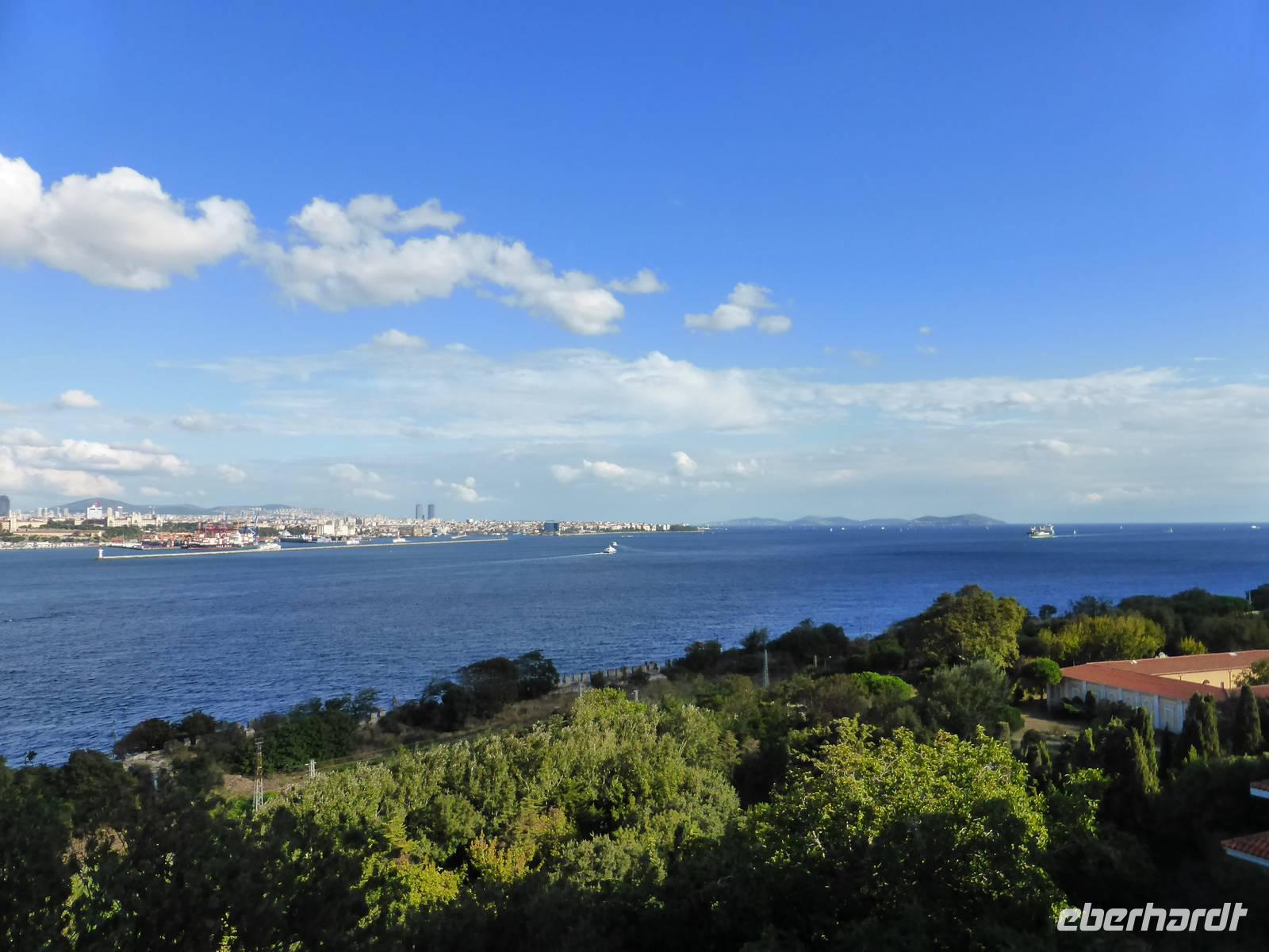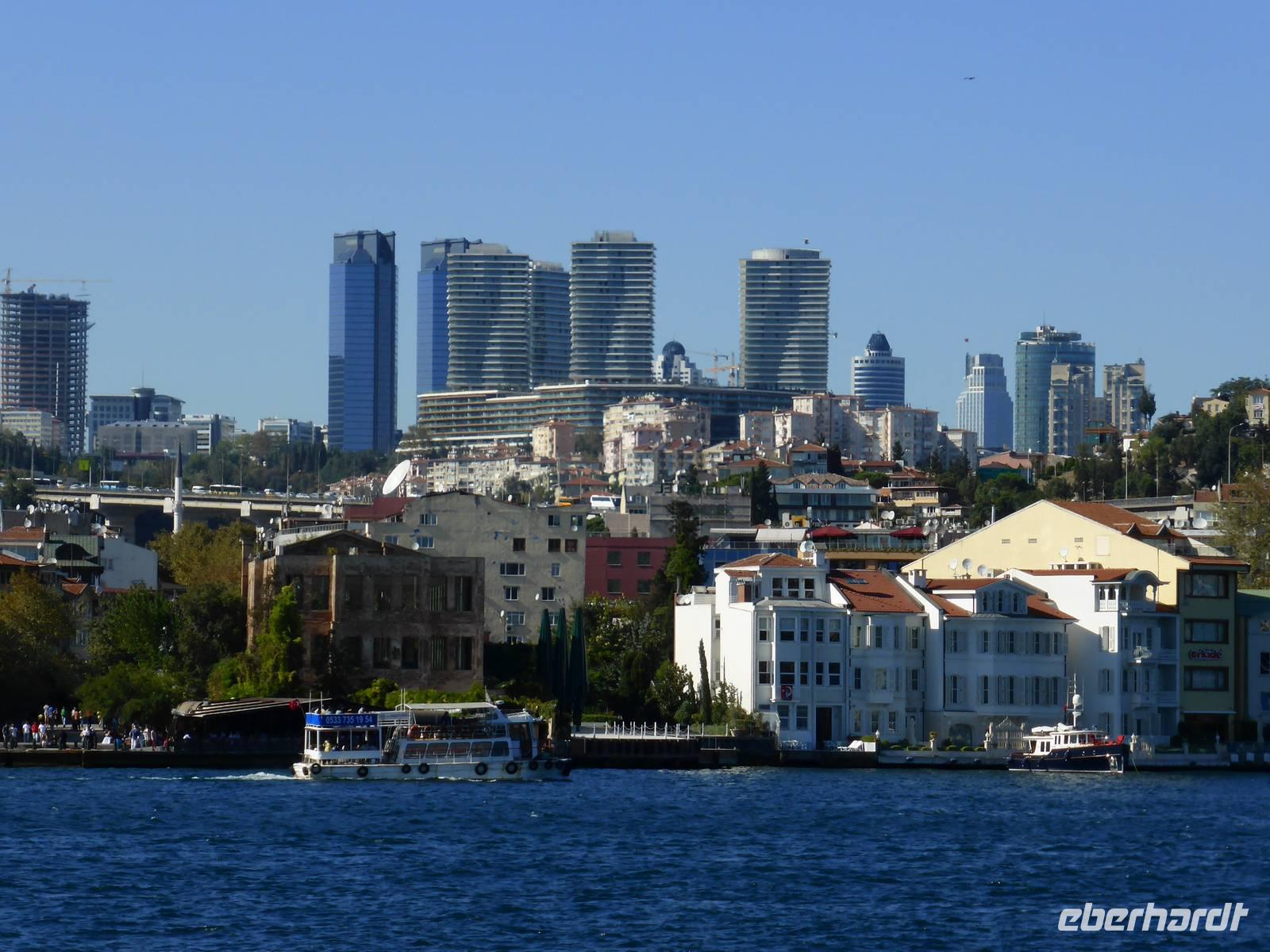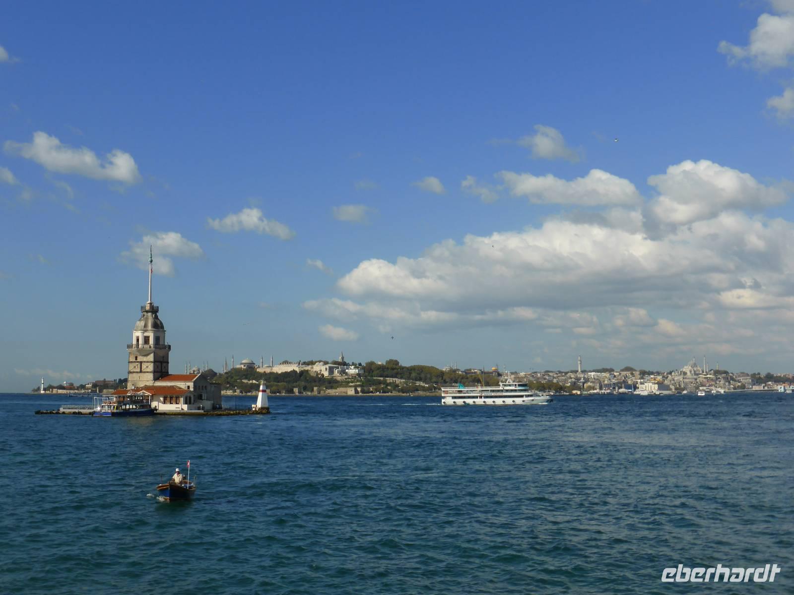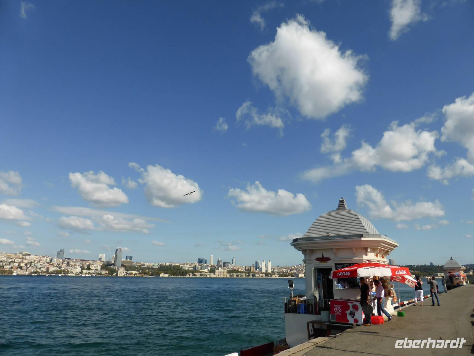 Am Morgen fuhren wir über die Bogazici-Brücke (auf die andere Seite des Bosporus, in den asiatischen Stadtteil von Istanbul. Direkt am Flussufer hatten wir ein prächtiges Fotomotiv auf den Mädchenturm und die Altstadt. Der Mädchenturm liegt an der Einfahrt vom Marmarameer in den Bosporus. Hier wurden früher die Gebühren für die Ein- bzw. Ausfahrt in den Bosporus fällig. Im asiatischen Stadtteil von Istanbul leben heute ungefähr 40 % der Einwohner Istanbuls. Wir waren beeindruckt von der modernen Architektur und fuhren entlang der Bagdad-Straße zurück Richtung Fluss. Sie ist mit ihrer Architektur und den vielen exklusiven Geschäften eher europäisch geprägt. Ein unerwarteter Höhepunkt auf der asiatischen Seite war ein Aufenthalt auf dem Tannenhügel, einem Aussichtspunkt mit fantastischem Blick auf den Bosporus und die Neustadt. Das sich uns bietende Panorama war einfach atemberaubend!