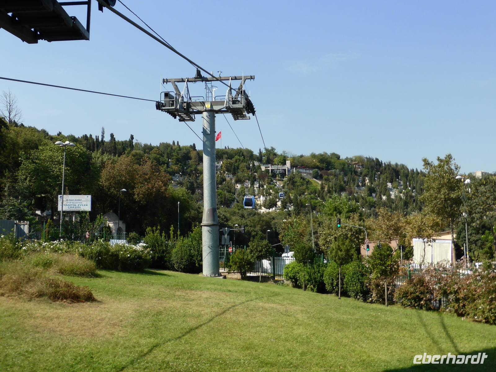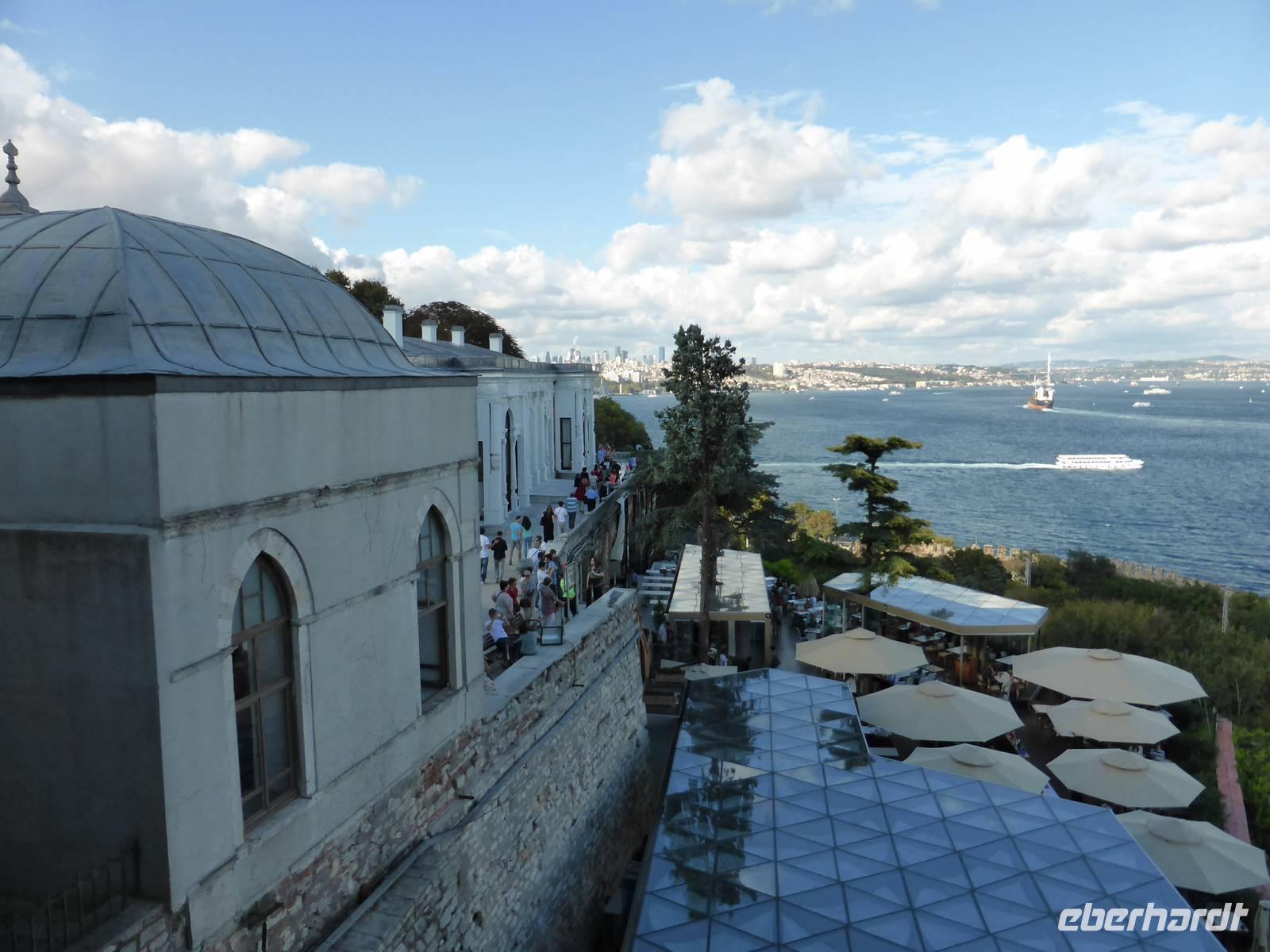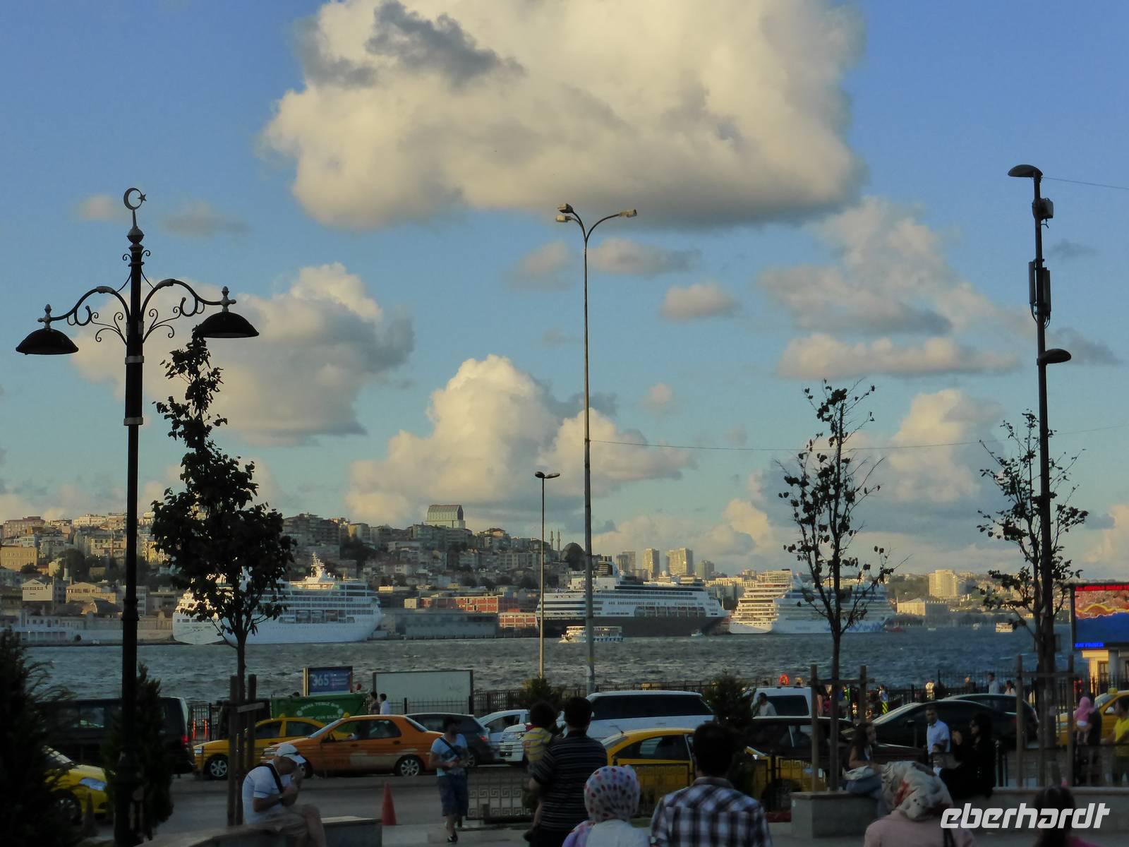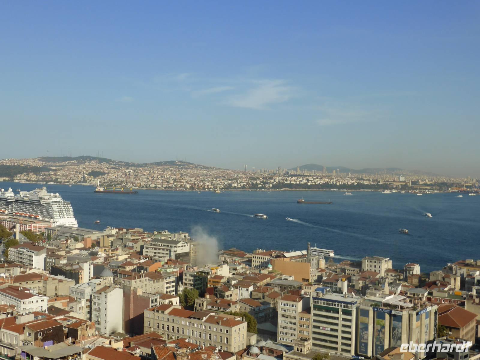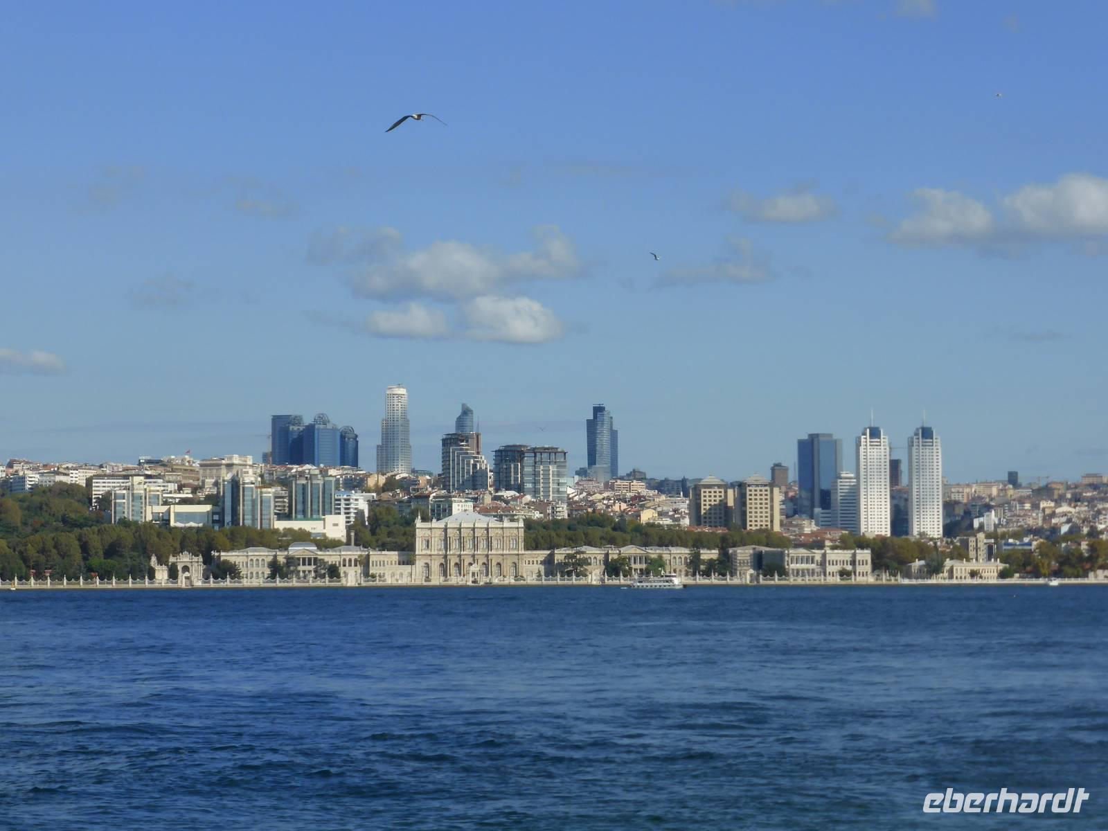 Am Morgen fuhren wir über die Bogazici-Brücke (auf die andere Seite des Bosporus, in den asiatischen Stadtteil von Istanbul. Direkt am Flussufer hatten wir ein prächtiges Fotomotiv auf den Mädchenturm und die Altstadt. Der Mädchenturm liegt an der Einfahrt vom Marmarameer in den Bosporus. Hier wurden früher die Gebühren für die Ein- bzw. Ausfahrt in den Bosporus fällig. Im asiatischen Stadtteil von Istanbul leben heute ungefähr 40 % der Einwohner Istanbuls. Wir waren beeindruckt von der modernen Architektur und fuhren entlang der Bagdad-Straße zurück Richtung Fluss. Sie ist mit ihrer Architektur und den vielen exklusiven Geschäften eher europäisch geprägt. Ein unerwarteter Höhepunkt auf der asiatischen Seite war ein Aufenthalt auf dem Tannenhügel, einem Aussichtspunkt mit fantastischem Blick auf den Bosporus und die Neustadt. Das sich uns bietende Panorama war einfach atemberaubend!