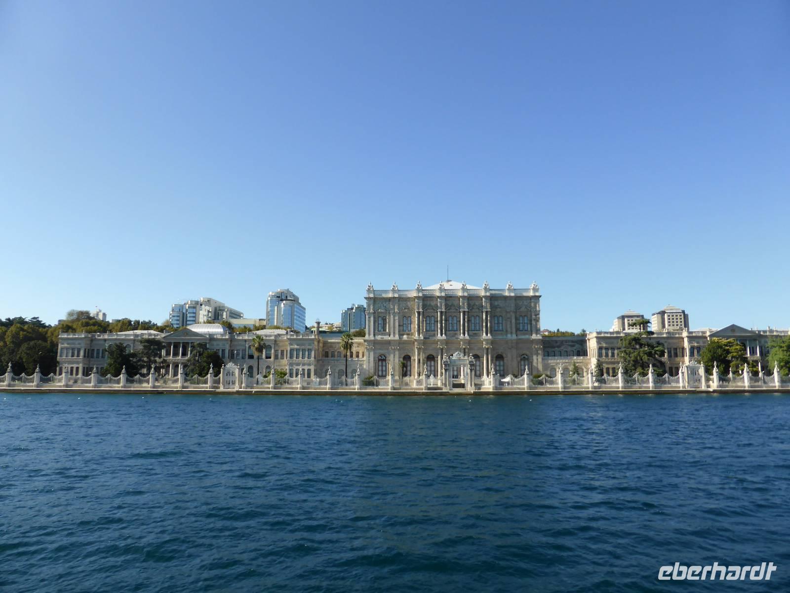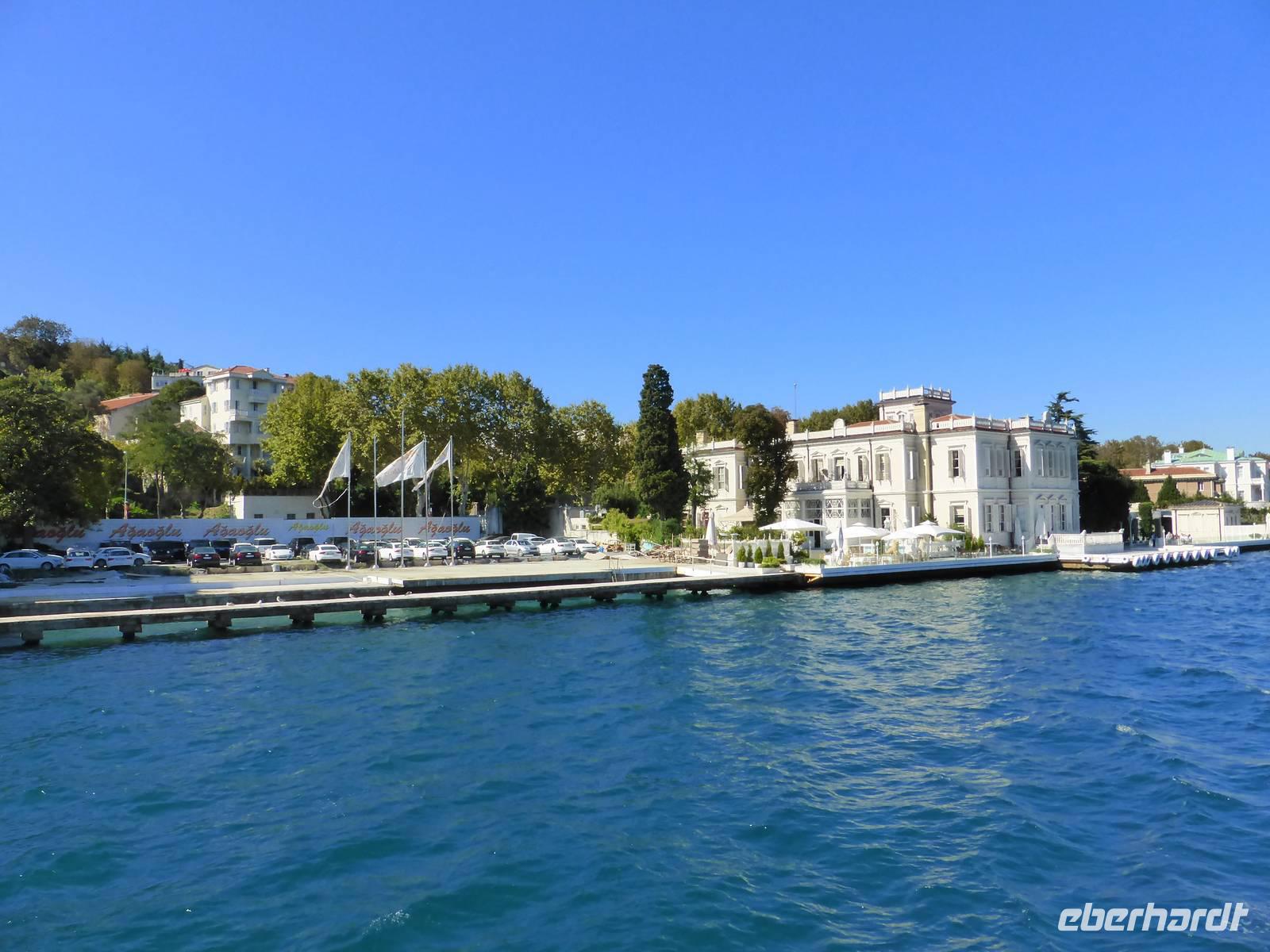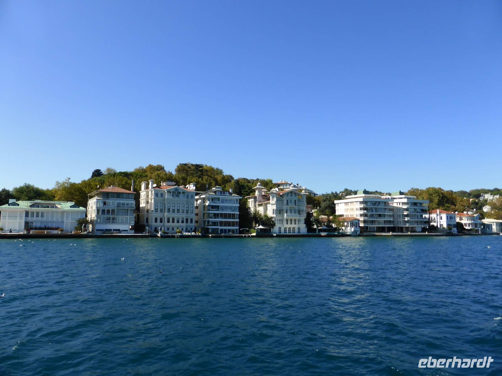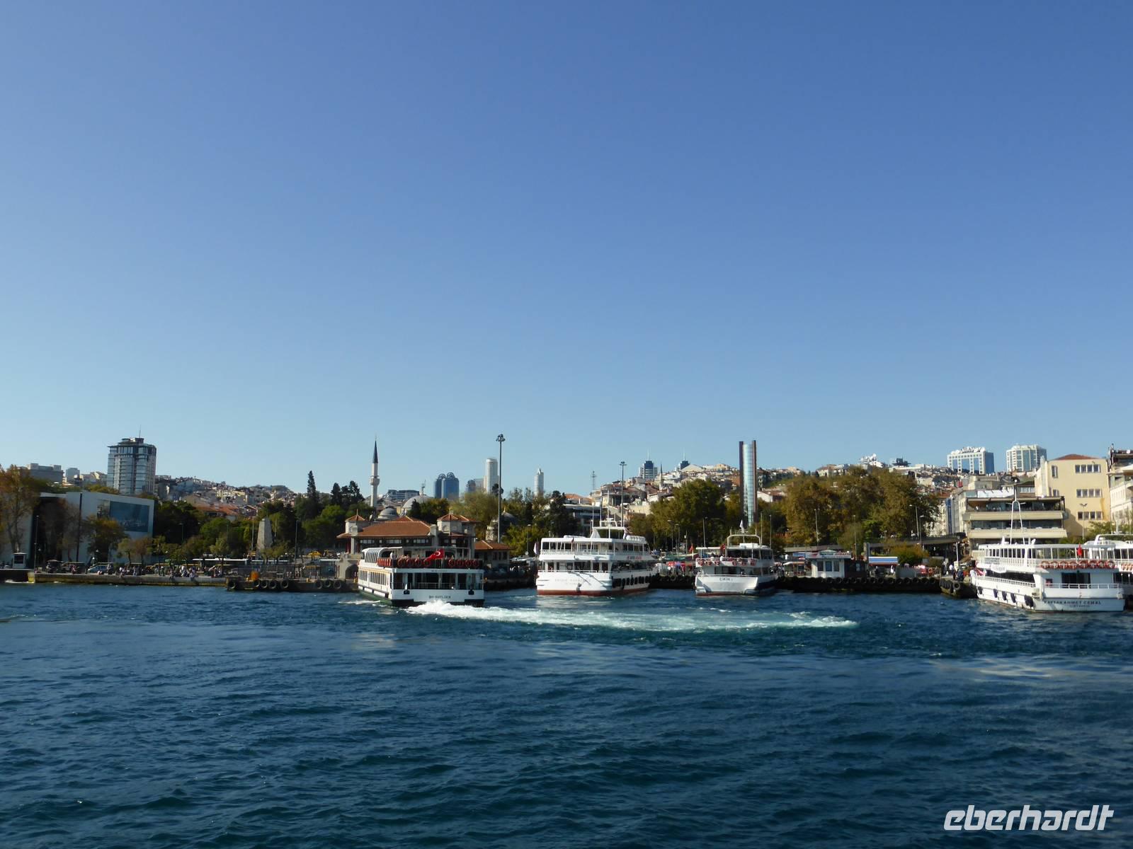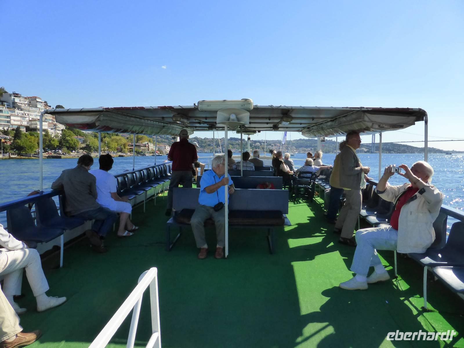 Vom Tannenhügel aus fuhren wir wieder über den Bosporus in den europäischen Teil Istanbuls zurück und von dort Richtung Osten zur Mündung in das Schwarze Meer. Direkt am Fluss mit Blick auf die Mündung lag das Restaurant Saphir, in welchem wir unser Mittagessen einnahmen. Anschließend war noch etwas Zeit bis zur Abfahrt unseres Schiffes. Die folgende Fahrt auf dem Bosporus von der Mündung ins Schwarze Meer bis zum Goldenen Horn war einer der ganz großen Höhepunkte unserer Reise! Die ganze Strecke zu beiden Seiten des Bosporus ist bebautes Istanbuler Stadtgebiet. Wir waren von den gepflegten und luxuriösen Anwesen beeindruckt. Das Wetter war fantastisch und unser Kapitän wechselte während der Fahrt vom europäischen Ufer zum asiatischen und wieder zurück zum europäischen, was uns einen sehr guten Überblick verschaffte. In der Bucht „Goldenes Horn" angekommen, erzählte uns Serdar etwas über den Ägyptischen Basar und anschließend hatten wir Freizeit, diesen zu besuchen und Souvenirs zu kaufen. Mit dem Bus fuhren wir dann zum Hotel zurück. Nach einer Pause trafen sich dann 19 Gäste zur Fahrt ins Restaurant „Orient Express". Hier nahmen wir in entsprechendem Ambiente unser Abendessen ein. Serdal erzählte uns anschließend, was vor sich geht, wenn der Orientexpress hier eintrifft. Nach dem Empfang auf dem roten Teppich und dem üppigen Buffet werden die Orientexpress-Gäste in einem Oldtimer-Konvoi vom Bahnhof abgeholt und in ihr nostalgisches Hotel gefahren. Wir mussten uns mit unserem Isuzu-Bus für die Fahrt ins Hotel begnügen, wo dieser schöne und erlebnisreiche Tag sein Ende fand.