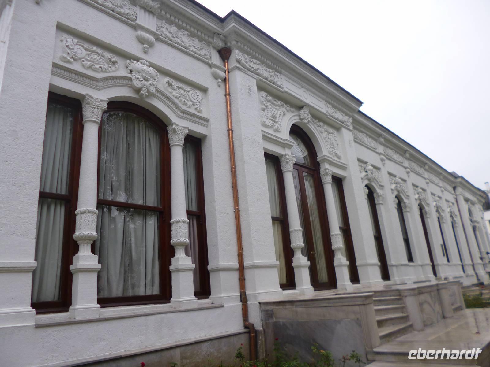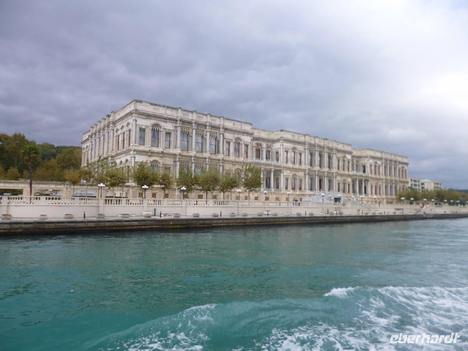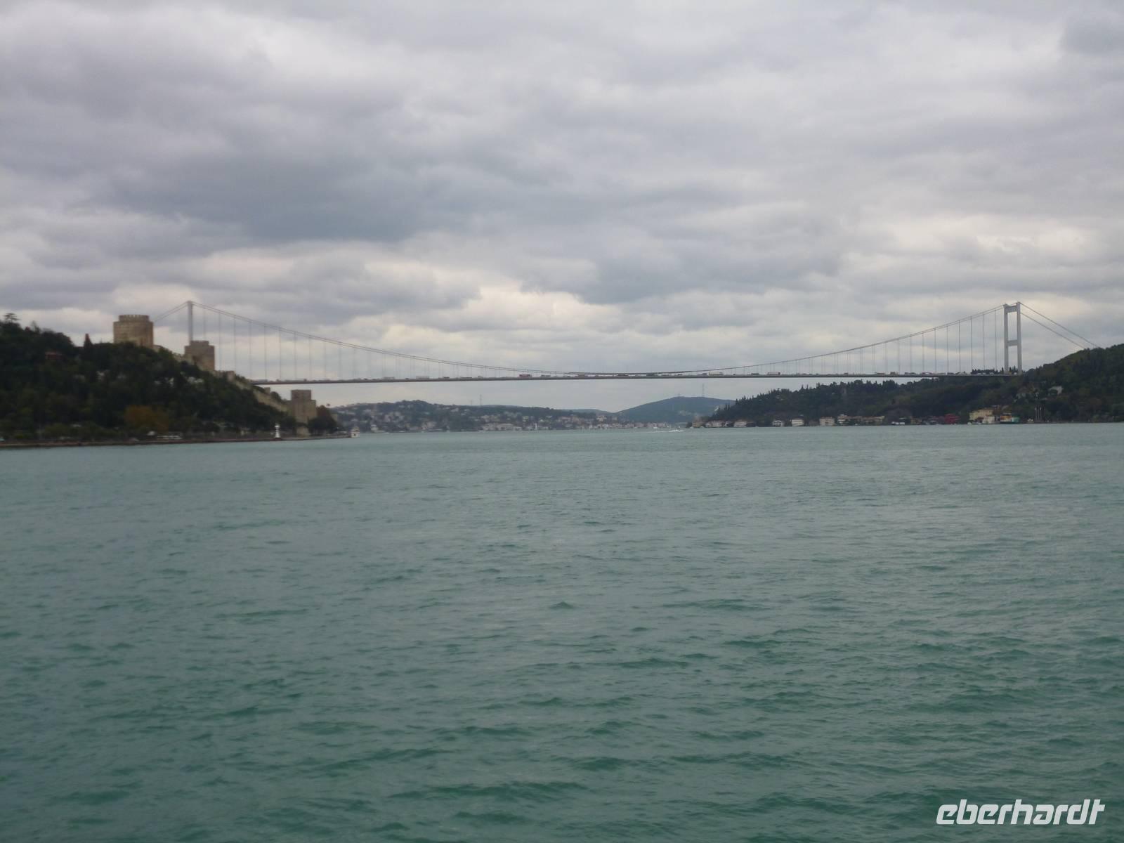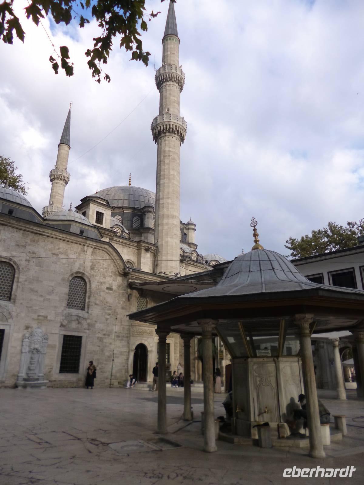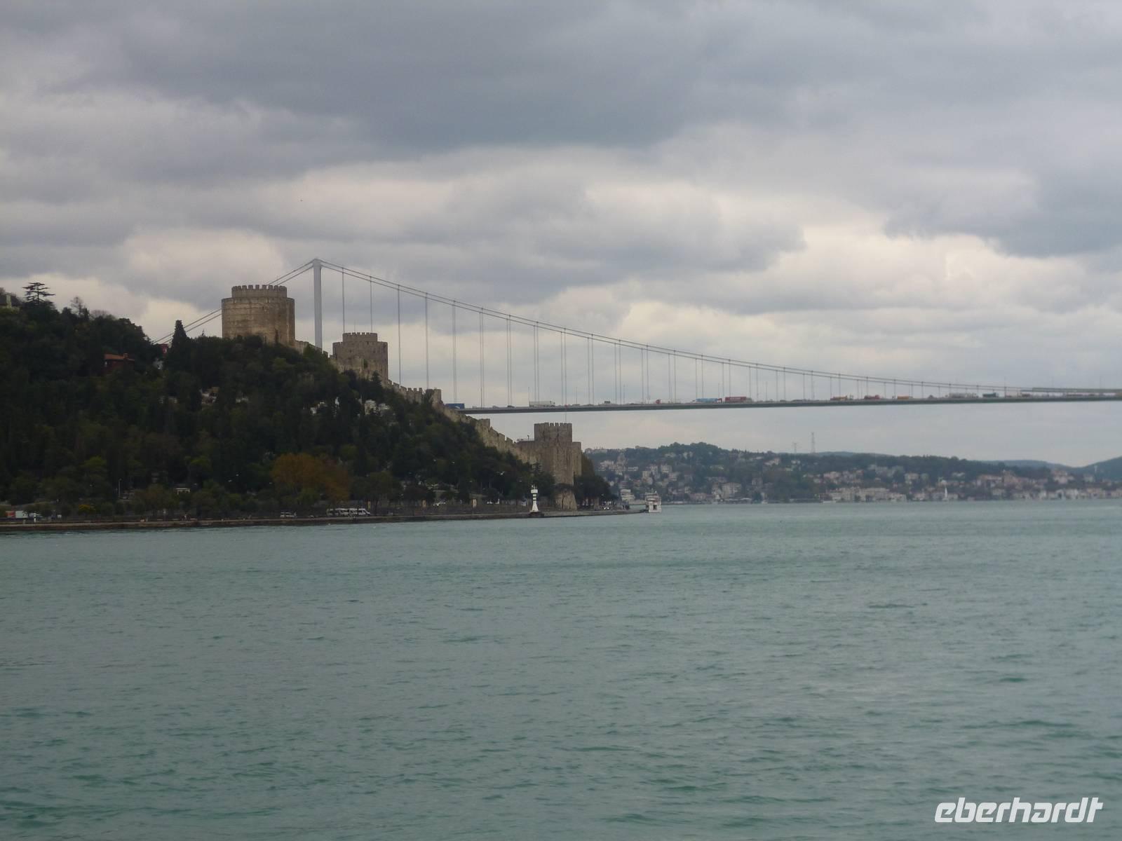 Heute zeigt sich sogar die Sonne, was noch einmal ein anderes Licht auf die Stadt wirft. Am Vormittag besuchen wir die Chora-Kirche, die um 1320 erbaut wurde und ursprünglich Teil eines im 6. Jh. gegründeten Klosters war. Heute ist sie ein Museum, in dem prächtige byzantinische Kirchenmosaiken zu bestaunen sind. Entlang der Stadtmauer fahren wir zum Schmuckgeschäft Storcks. Das Angebot reicht von Kettenanhänger, und Kettchen über Broschen, Armreifen, Ringe und Ohrringe. Wir schauen uns kurz um und lassen uns gleich im Anschluss von Ahmed zum Schiffsanleger bringen. Wir sind nämlich für eine Bootsfahrt auf dem Bosporus verabredet. Die Meerenge zwischen Europa und Kleinasien, die das Schwarze Meer mit dem Marmarameer verbindet, gilt als eine der weltweit wichtigsten Wasserstraßen. Bisher gibt es zwei Hängebrücken, die Europa und Asien verbinden. An der engsten Stelle befindet sich mittlerweile eine dritte Brücke trotz heftiger Proteste vieler Umweltschützer im Bau. Wir lassen die Neu- und Altstadt hinter uns. Serdar kommentiert die Bootsfahrt. Wir erhalten ein ganz anderes Bild der Metropole. Prächtige Villen und kleine Ferienhäuser mit Swimmingpool im Garten säumen die Ufer. Die Festungsanlage Rumeli Hisari, die in nur 4 Monaten gebaut wurde, den Dolmabahce-Palast und Çiragan-Palast sehen wir vom Schiff aus. Nach 90 Minuten haben wir wieder festen Boden unter den Füßen. Mit Blick auf den Bosporus lassen wir uns das Mittagessen schmecken. Zur Verdauung gibt es Raki. Natürlich nur einen Schluck, denn noch haben wir unser Programm für heute nicht geschafft. Zurück in der Stadt geht's mit der Seilbahn hinauf auf den Pierre-Loti-Hügel, benannt nach dem französischen Marineoffizier und Schriftsteller Pierre Loti, der hier oft zu Gast war. Und wieder liegt uns die Stadt zu Füßen, wieder ein beeindruckender Ausblick. Nach ein wenig Zeit, um die Aussicht zu genießen, spazieren wir gemeinsam zurück über den Friedhof ins Tal. Am Fuße des Hügels befindet sich die Eyüp Camii oder auch Eyüp-Sultan-Moschee, die heiligste Moschee Istanbuls. Hier befinden sich die Reliquien des Fahnenträgers von Mohammed. Nachdem wir die Hagia Sophia und Blaue Moschee als eher touristische Sehenswürdigkeiten kennengelernt haben, werden wir in dieser Moschee von der ganz besonderen Atmosphäre eingenommen. Auch hier müssen wir uns an die Kleiderordnung halten. Zum Abschluss lächeln wir vor der Eyüp-Sultan-Moschee für unser Gruppenfoto, denn dieses war unser letzter „offizieller" Programmpunkt. Für diejenigen, die das heutige Abendessen dazu gebucht haben, geht die „Show" weiter, bzw. erst so richtig los. Im Nachtlokal „Kervansaray" werden wir während eines köstlichen 5-Gang-Menus von attraktiven Bauchtänzerinnen, Folkloregruppen und einem internationalen Sänger abwechslungsreich unterhalten. Stimmungsvoll lassen wir den Abend und Aufenthalt in der Metropole Istanbul ausklingen.