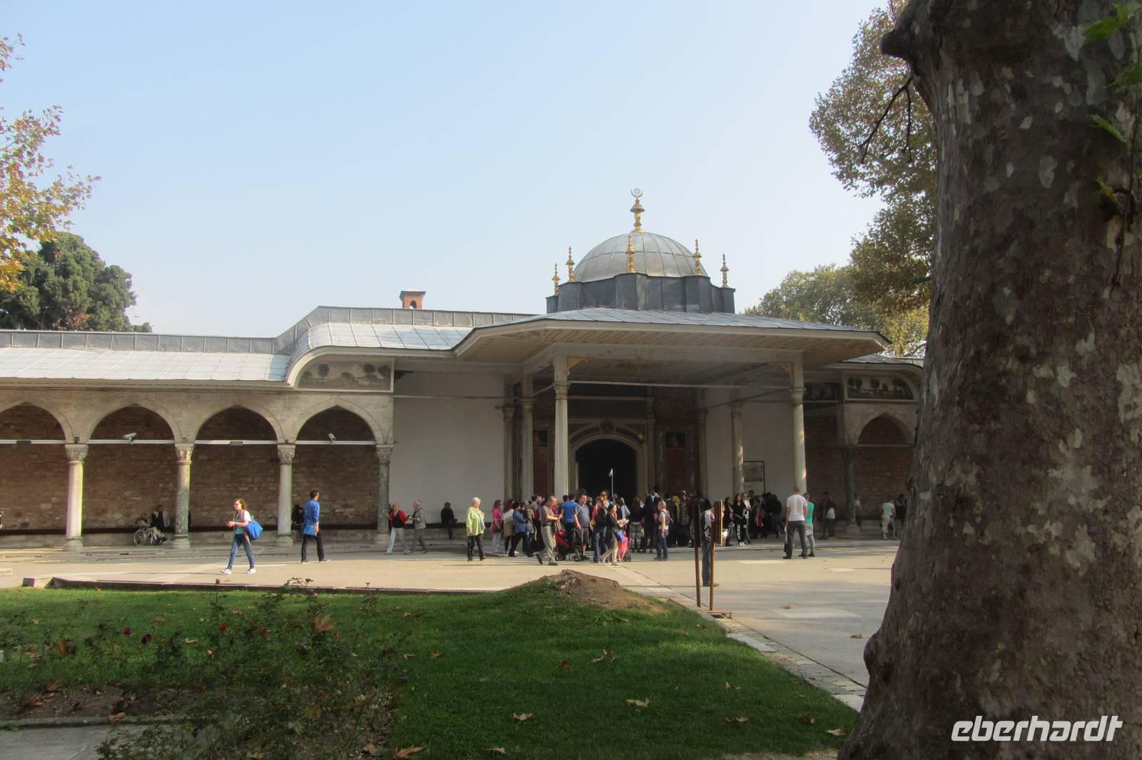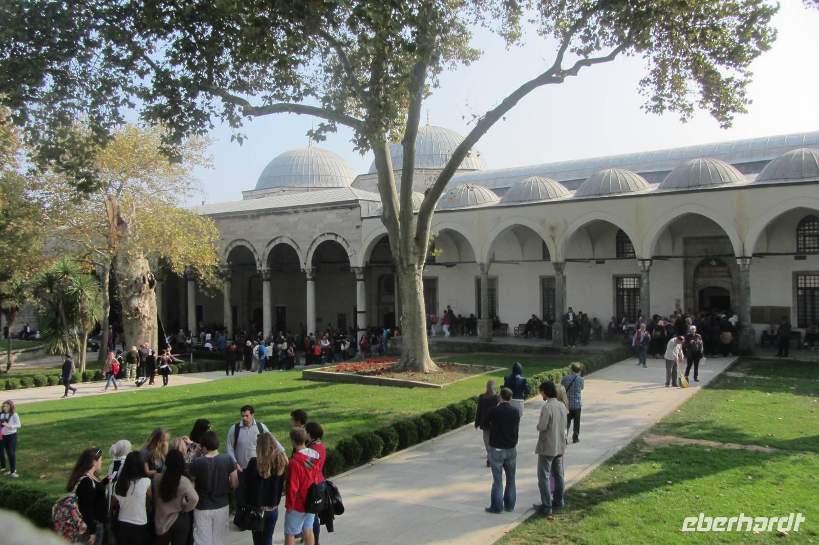 Unsere erste Sehenswürdigkeit an diesem Tag ist der Topkapi-Palast, die ehemalige Residenz der Sultane bis 1853, die sich in der Altstadt Istanbuls befindet. Des Sultans Palast umfasst eine Fläche von über 69 Hektar. Wir besichtigen die Waffensammlung, die Ausstellung der Gewänder und Kaftane, verschiedene Pavillons und auch die Schatzkammer werfen. Umfassende Informationen und Zeit zur individuellen Erkundung geben einen kleinen Eindruck über das Leben des Sultans. Und obwohl unser Besuch den ganzen Vormittag in Anspruch nimmt, haben wir längst noch nicht alles vom Palast gesehen.