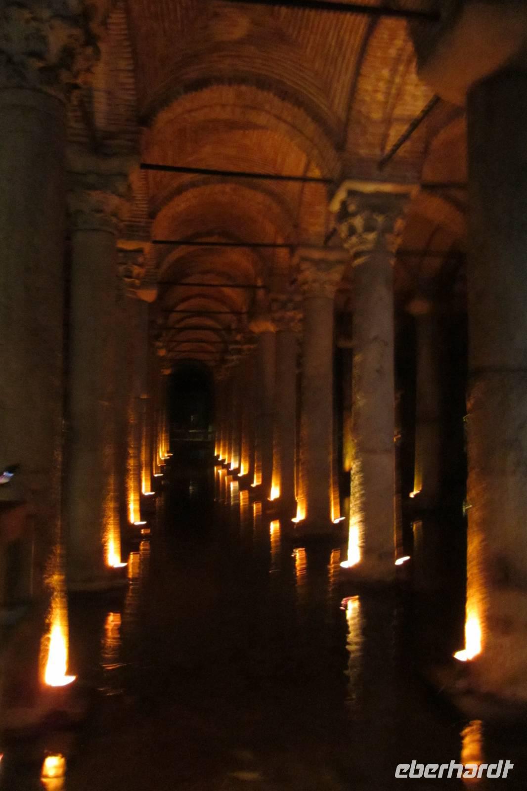 Am späten Nachmittag statten wir der türkischen Unterwelt einen Besuch ab. Nur wenige Meter unter der Stadt befindet sich der die Cisterna Basilica. Der „Versunkene Palast" diente zwischen dem 4. Und 6. Jahrhundert als Wasserspeicher für den kaiserlichen Haushalt und wurde erst später wieder entdeckt. Eine mystische Stimmung entsteht beim Anblick des beeindruckenden Gewölbes, der aus dem Wasser aufragenden Säulen und der sanften Musik im Hintergrund.