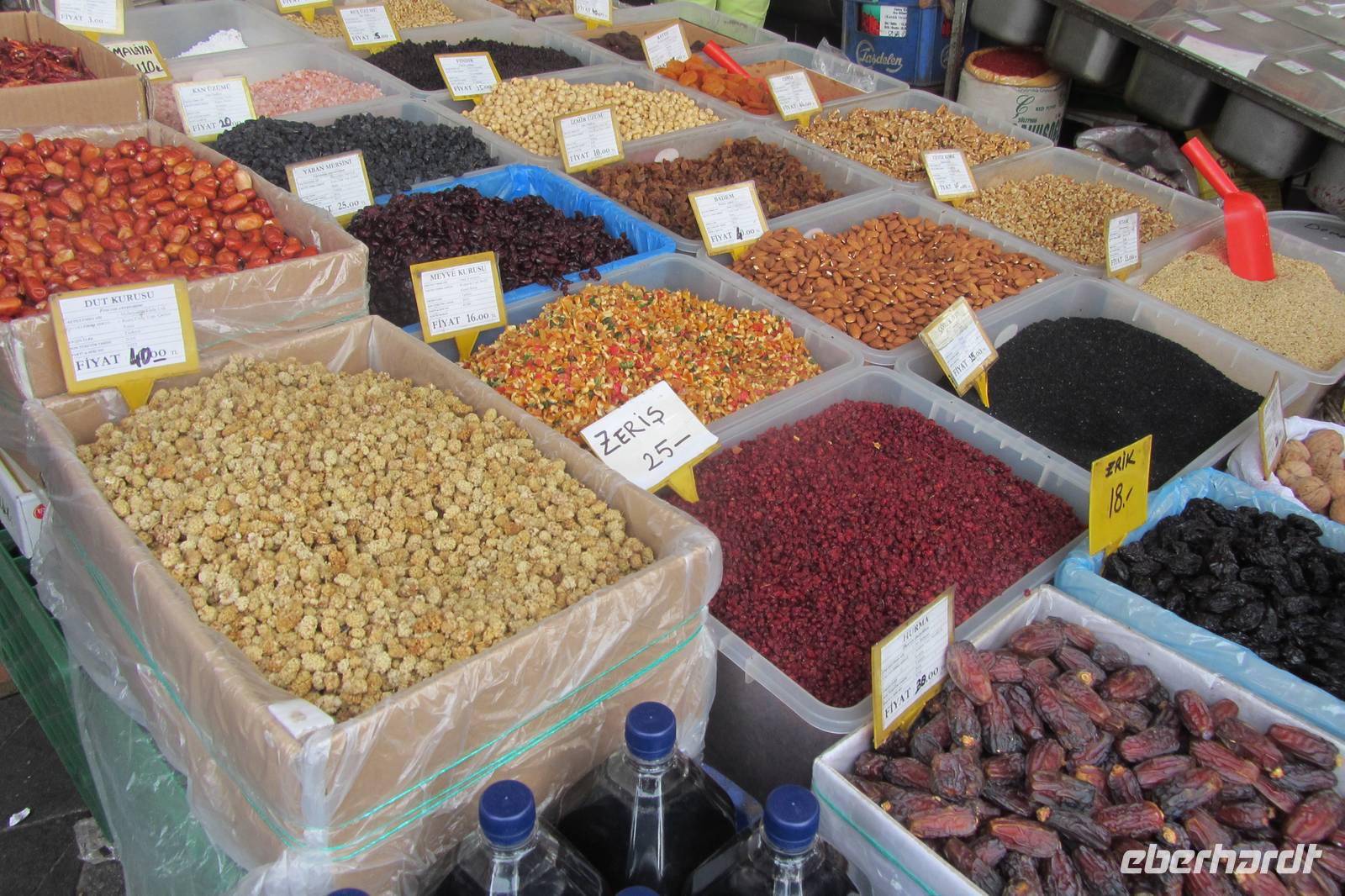 Anschließend geht es nun zum Ägyptischen Bazar. Obwohl er auch Gewürzbazar genannt wird, gibt es weitaus mehr als nur Gewürze. Türkische Schinken und Käse, typische Süßwaren, Souvenirs, Schuhe, Schmuck, Teekannen, Kaffee, Kleidung. Die Mischung aus verschiedensten Gerüchen und internationalen Sprachen machen das wilde Treiben komplett. Froh, dass alle Gäste zurück zum Bus gefunden haben, fahren wir nun zum Hotel.