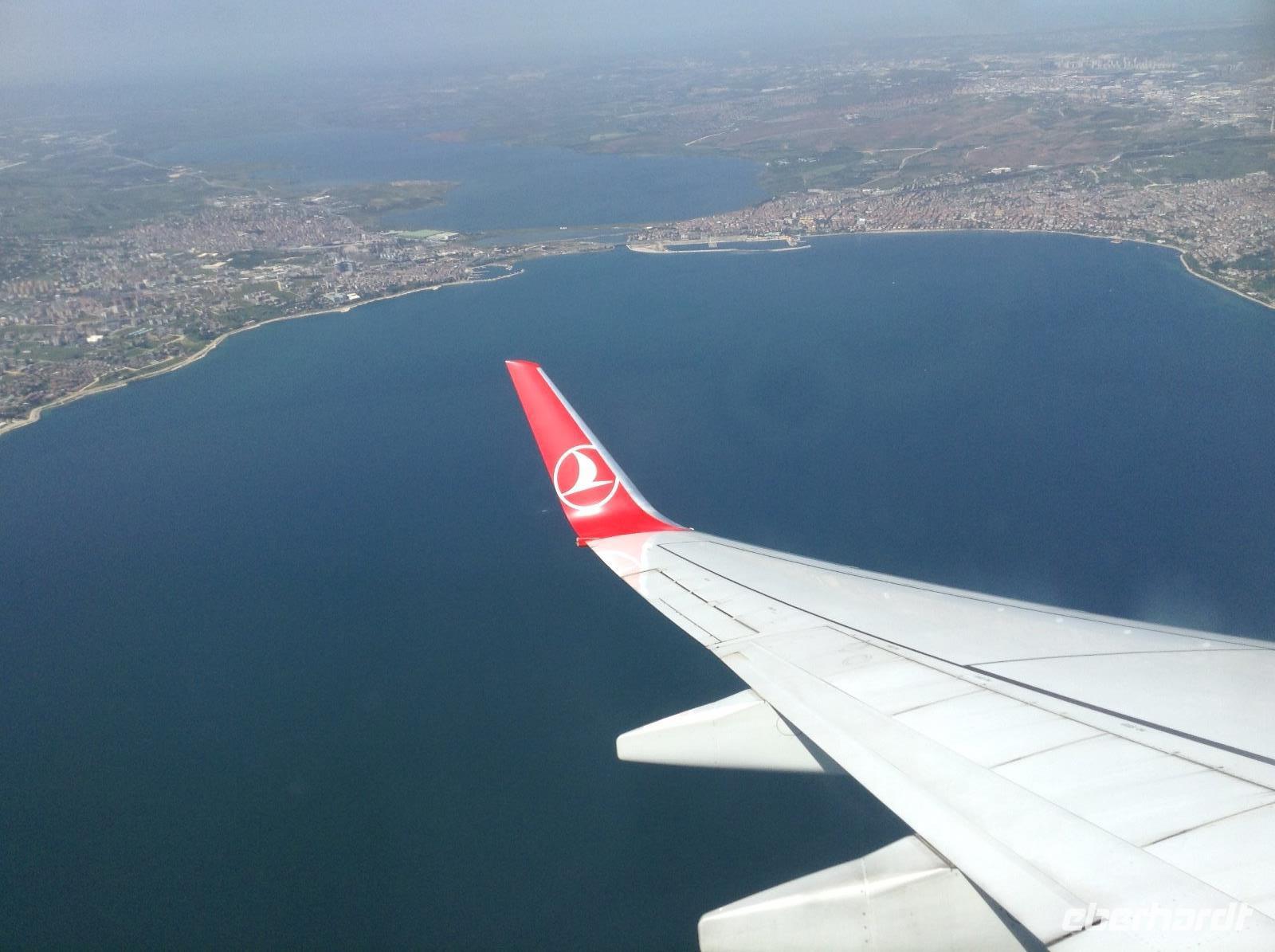 Dort trafen wir am verabredeten Treffpunkt auf einen großen Teil der Gruppe. Gemeinsam gingen wir zum Check In für den Flug mit Türkisch Airlines, der dann auch ganz pünktlich begann. An Bord bekamen wir Essen und Trinken, die fast 3 Stunden Flugzeit vergingen schnell.