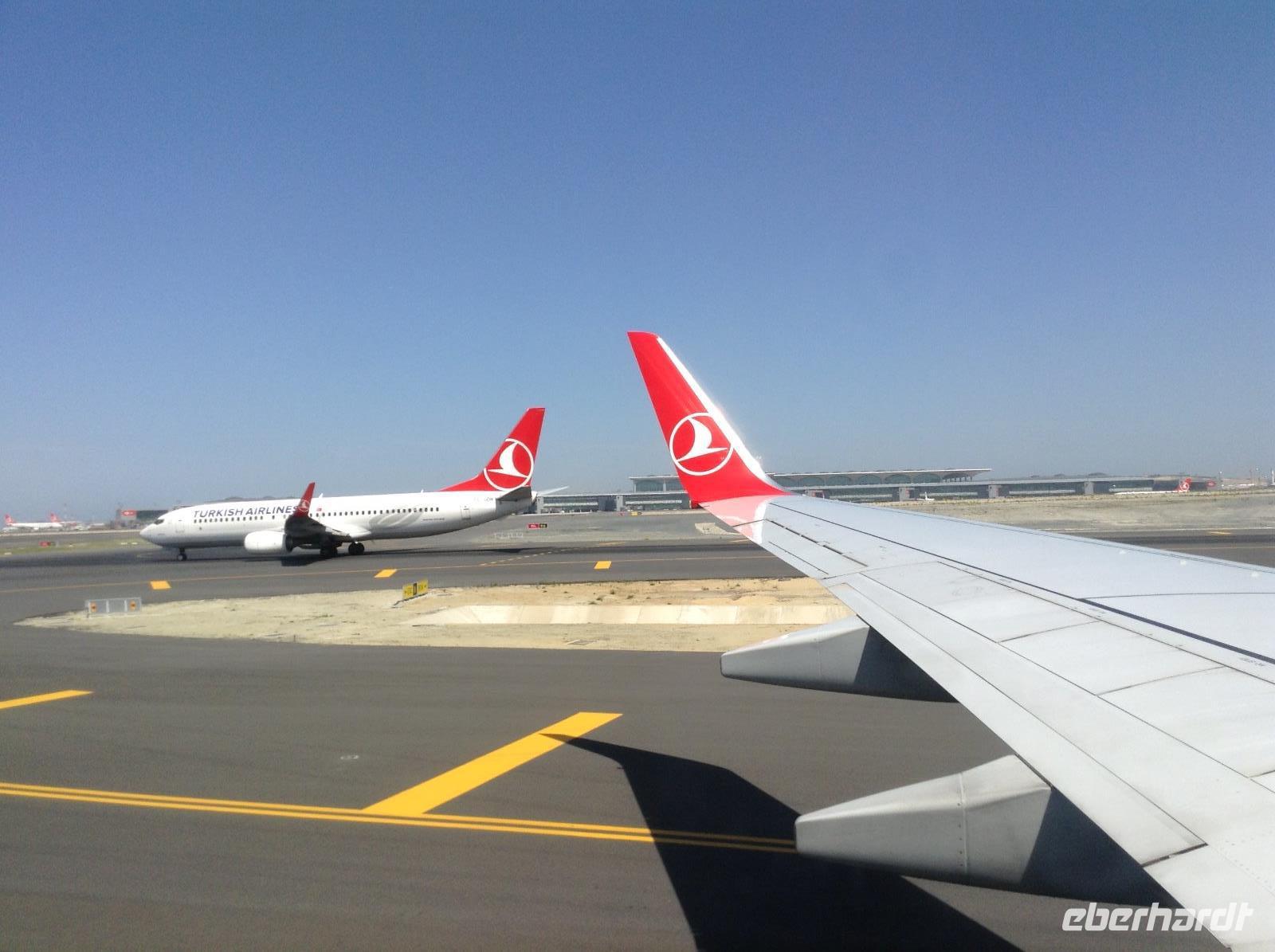 Bald hieß es, das Flugzeug landet gleich und aus der Luft hatten wir erste tolle Eindrücke von der riesigen Stadt am Bosporus und dem ganz neuen Flughafen von Istanbul. Dieser neue, weltweit größte, Flughafen ist ein riesiges Bauprojekt, was noch nicht fertig ist. Wir waren beeindruckt.